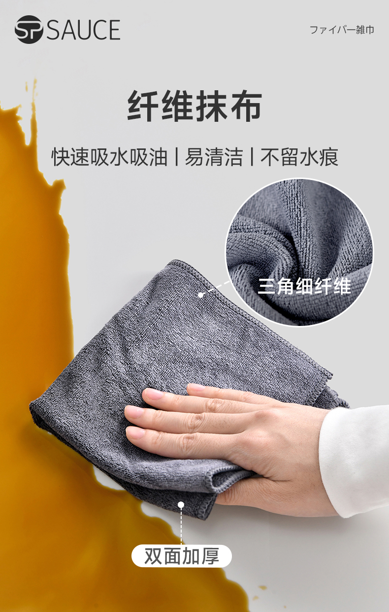 纤维抹布(3条入) 纤维抹布厨房灶台水槽多功能清洁抹布家用吸水吸油桌面清洁布