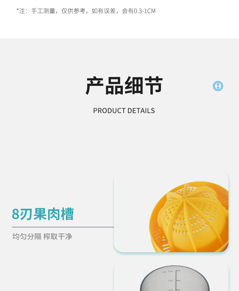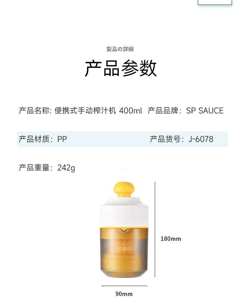 便携式手动榨汁机 400ML 简易手动榨汁机小型便携式橙汁杯家用压榨器水果橙子柠檬榨汁器
