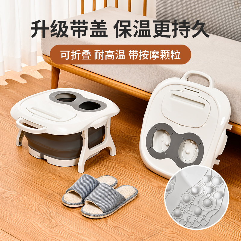 可折叠足浴盆 (加保温盖) 折叠泡脚盆保温带盖养生家用洗脚盆便携收纳塑料足浴盆