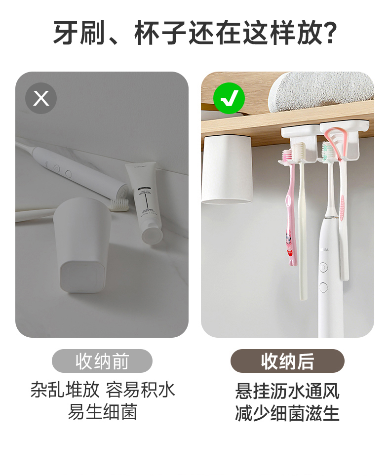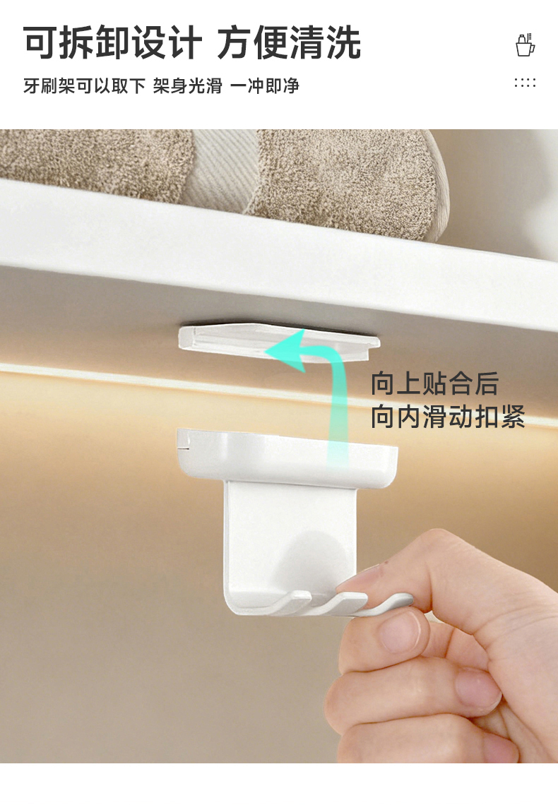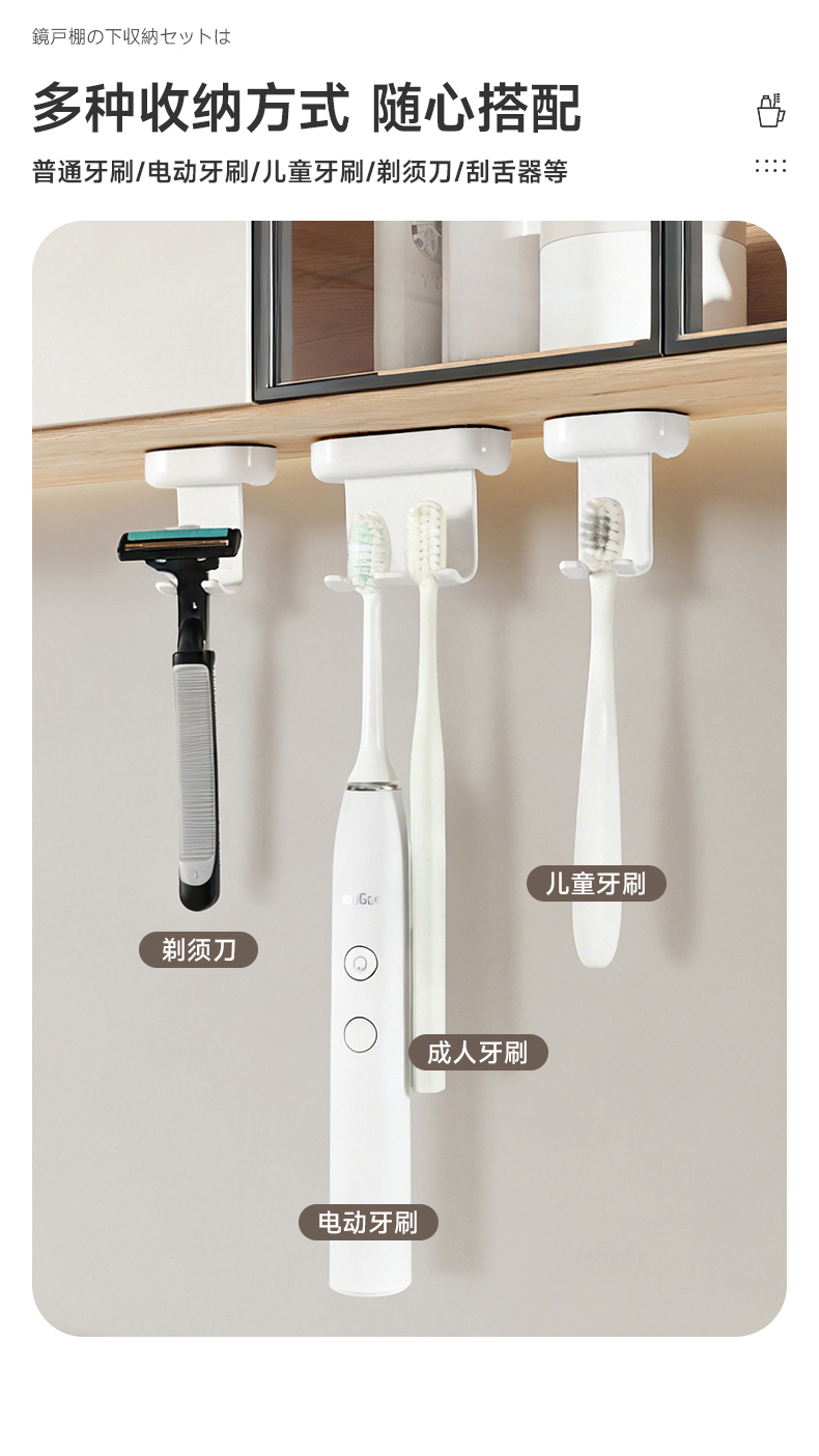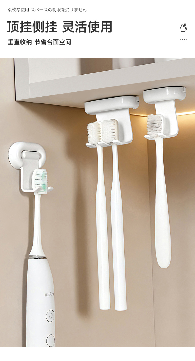 翻转牙刷架(单钩) 镜柜下牙刷置物架壁挂式免打孔电动牙刷牙具收纳架