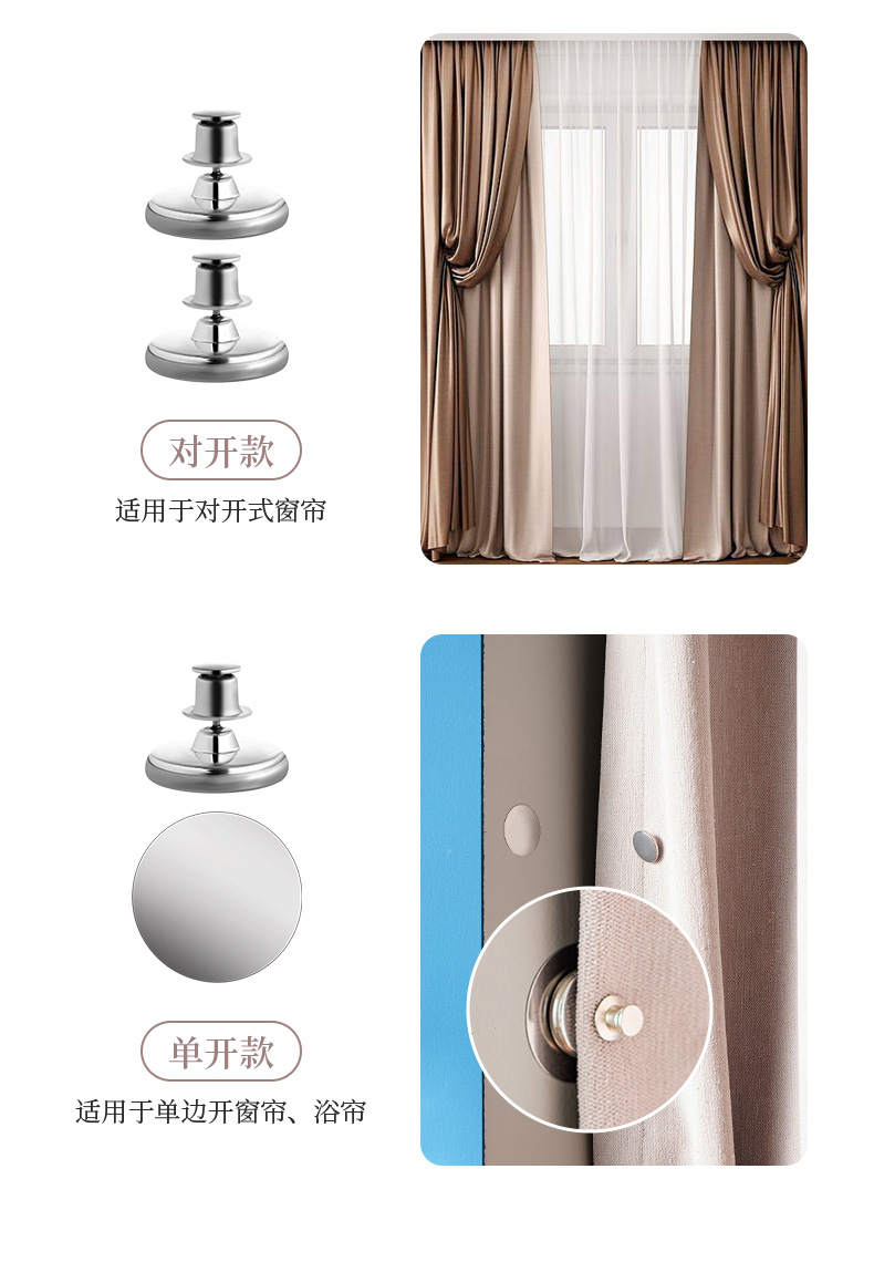 窗帘闭合磁吸扣(对开款)两对装 窗帘浴帘缝隙闭合合拢不透光神器强力磁吸扣免绑隐私扣环