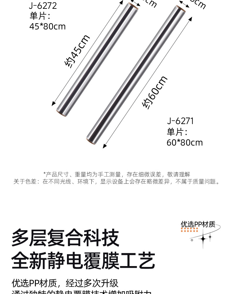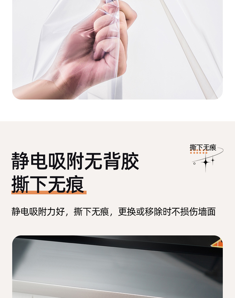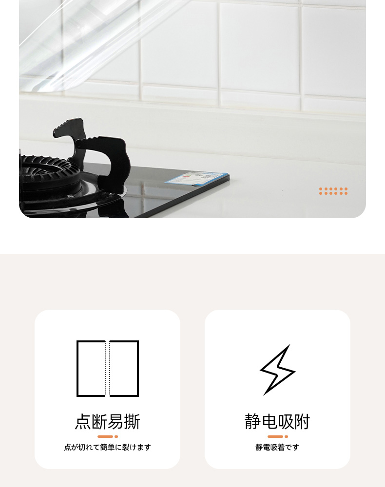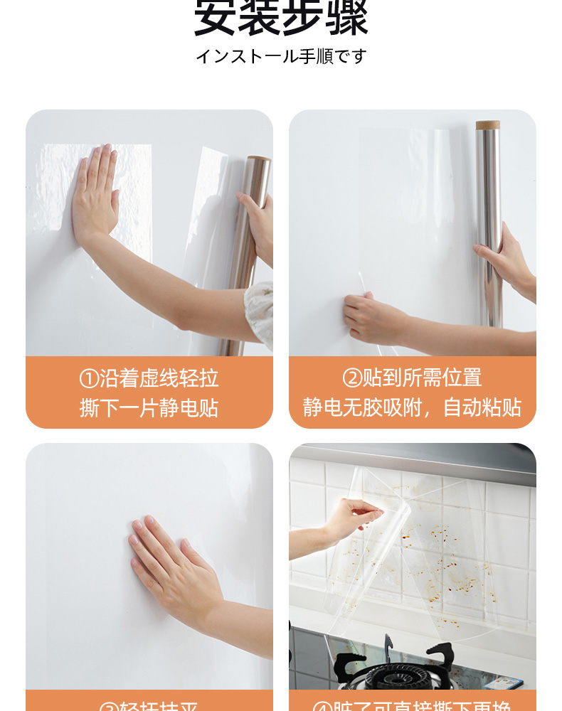 点断静电防油贴 5撕(60*80cm) 厨房防油贴纸透明静电橱柜防水防油耐高温灶台贴膜防油烟自粘墙纸