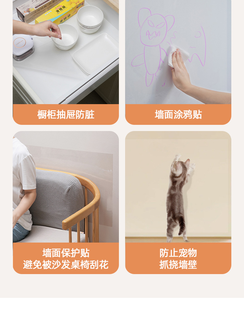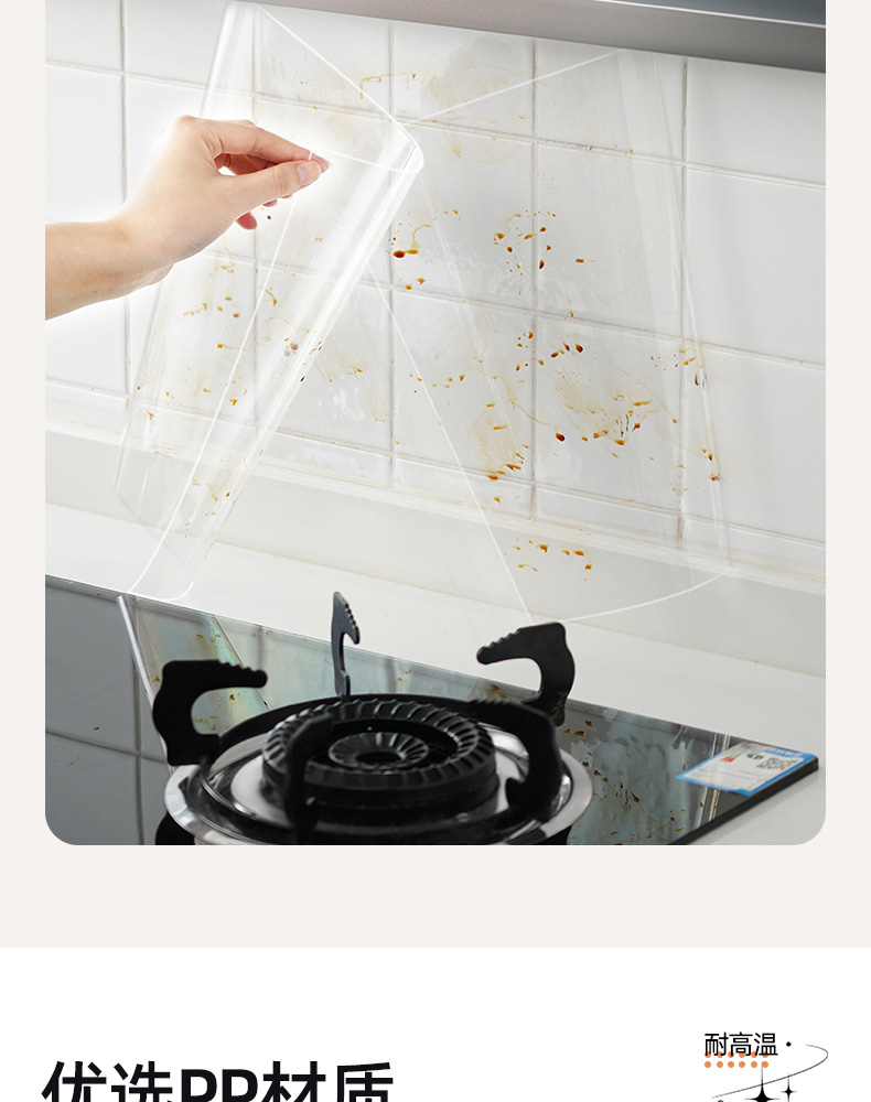 点断静电防油贴 5撕(45*80cm) 厨房防油贴纸透明静电橱柜防水防油耐高温灶台贴膜防油烟自粘墙纸