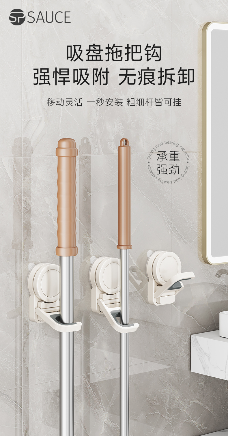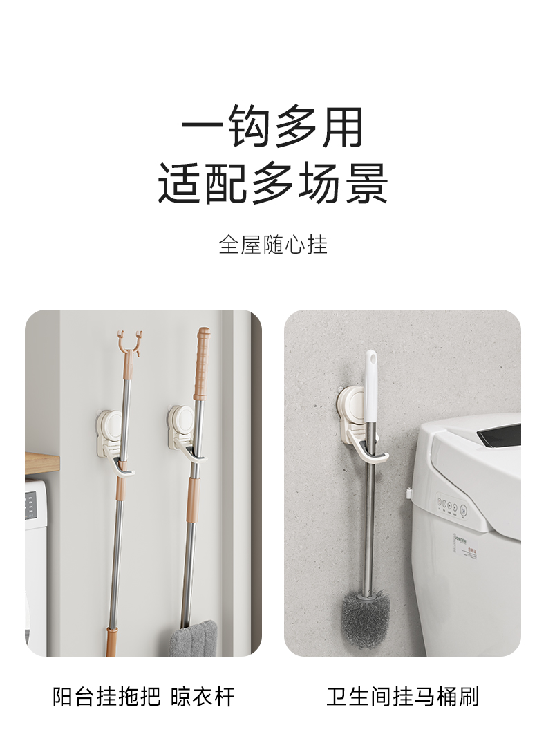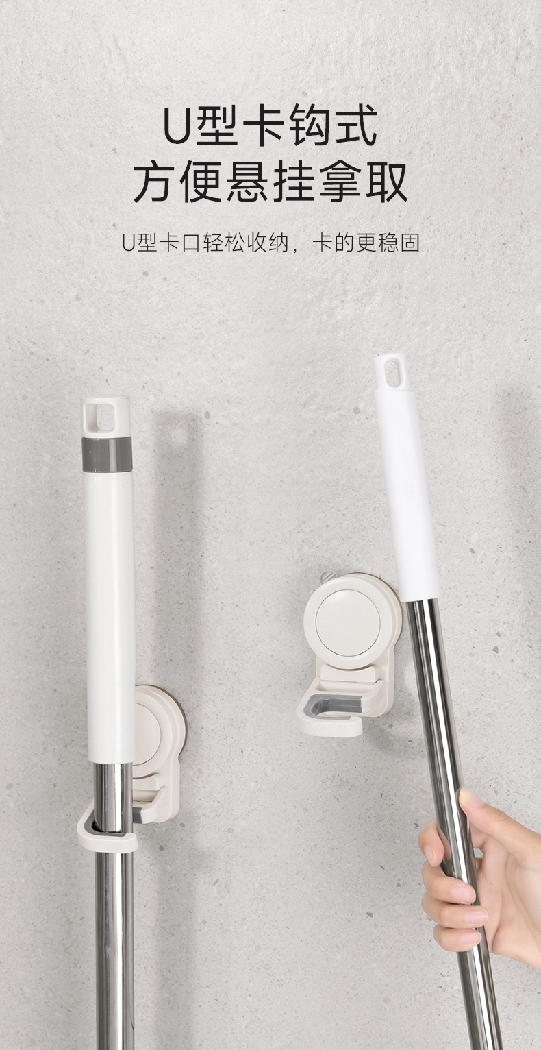吸盘拖把钩 吸盘拖把挂钩高颜值家居U型卡钩式拖把钩强力承重真空无痕