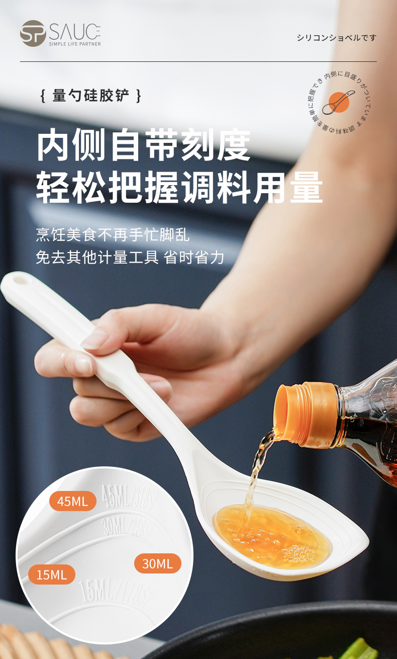 量勺硅胶铲 家用带刻度量勺辅食铲勺多功能炒菜铲子食品级不粘锅专用硅胶锅铲