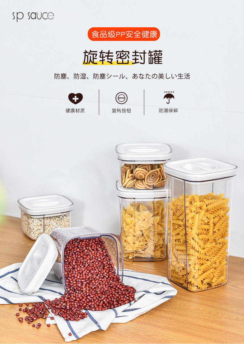 旋转密封储物罐 2000ml 塑料密封罐食品储物罐子奶粉储存罐五谷杂粮收纳盒子