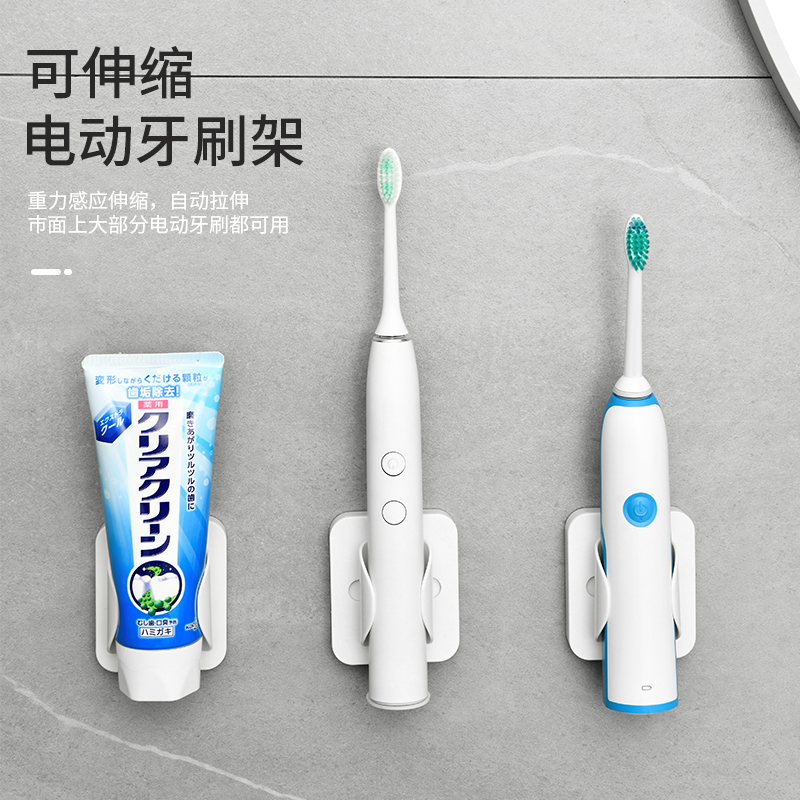 可伸缩电动牙刷架 电动牙刷架免打孔壁挂式牙刷架子置物架吸壁挂墙式牙刷支架挂架带底座