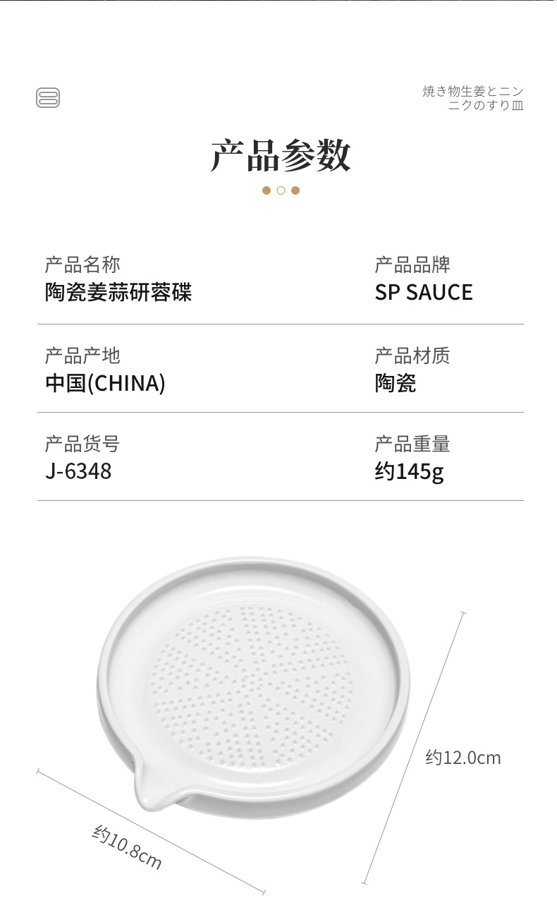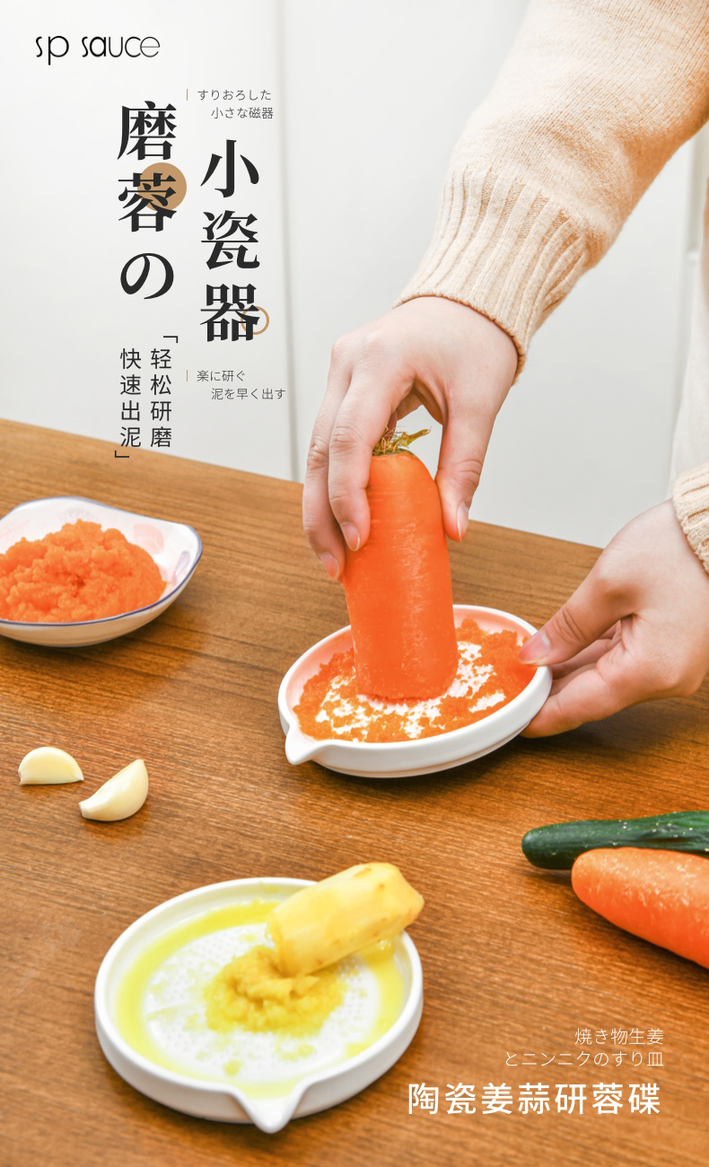 陶瓷姜蒜研蓉碟 手动磨姜器碎蒜泥土豆泥研磨果泥姜汁刨压细腻蒜蓉姜末姜蓉陶瓷磨蒜器