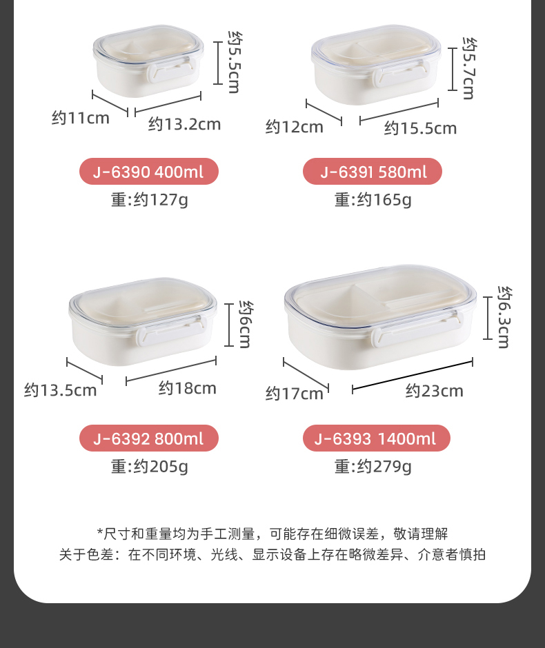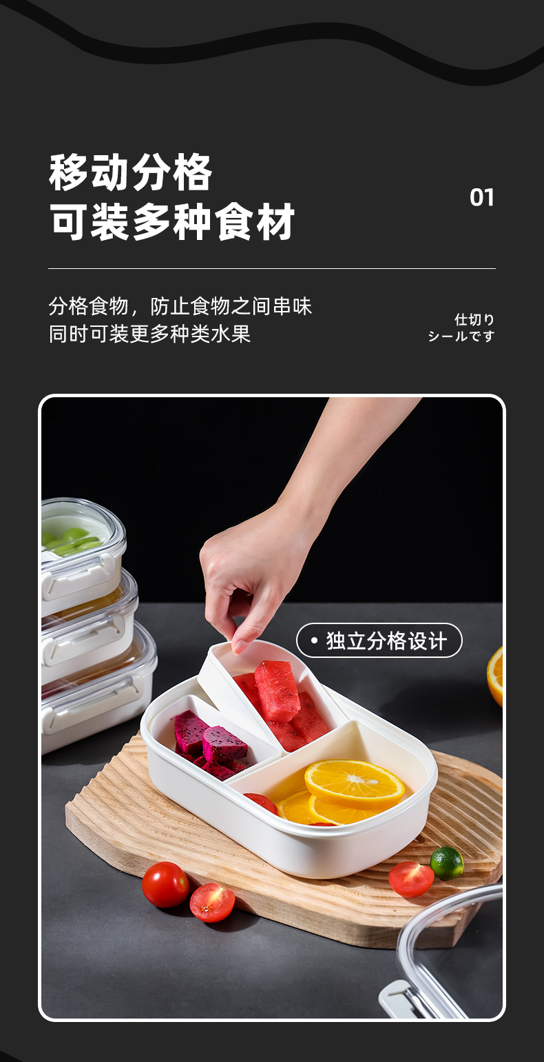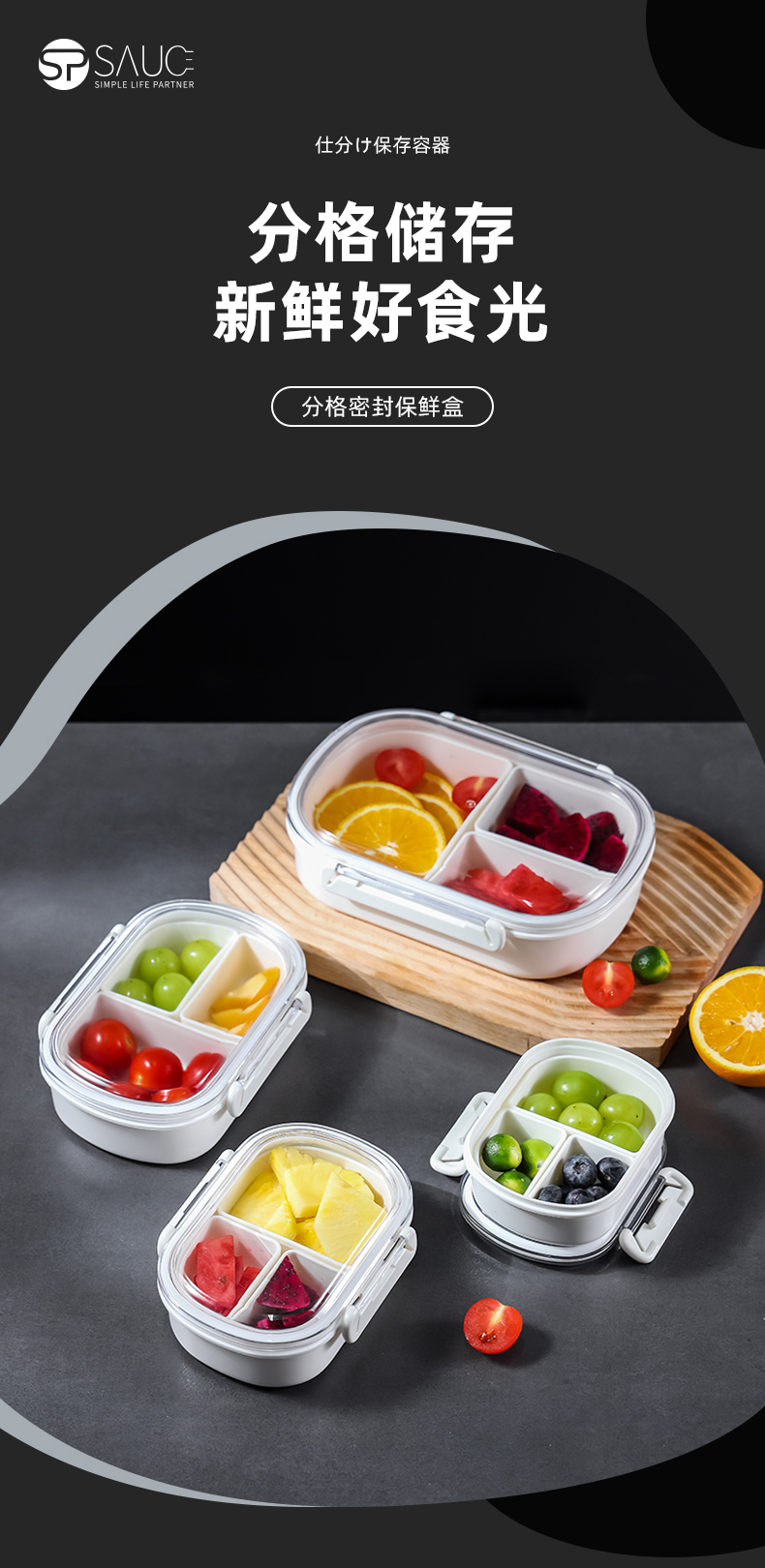 分格密封保鲜盒400ml 水果便当盒小学生专用食品分隔保鲜盒儿童外出便携野餐盒