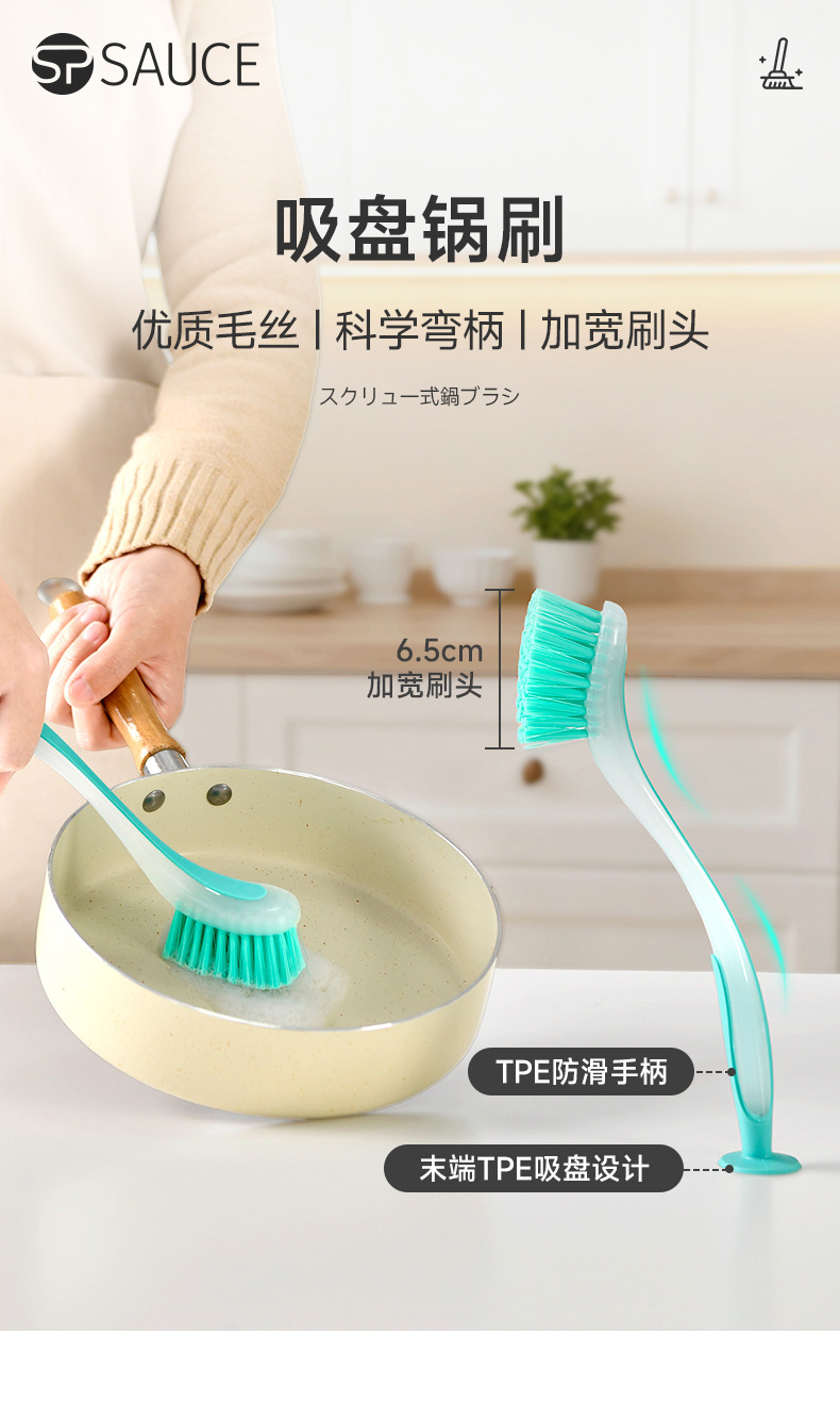 吸盘锅刷 带吸盘洗锅刷子长柄厨房专用不伤锅清洁刷多功能家用洗碗刷锅神器