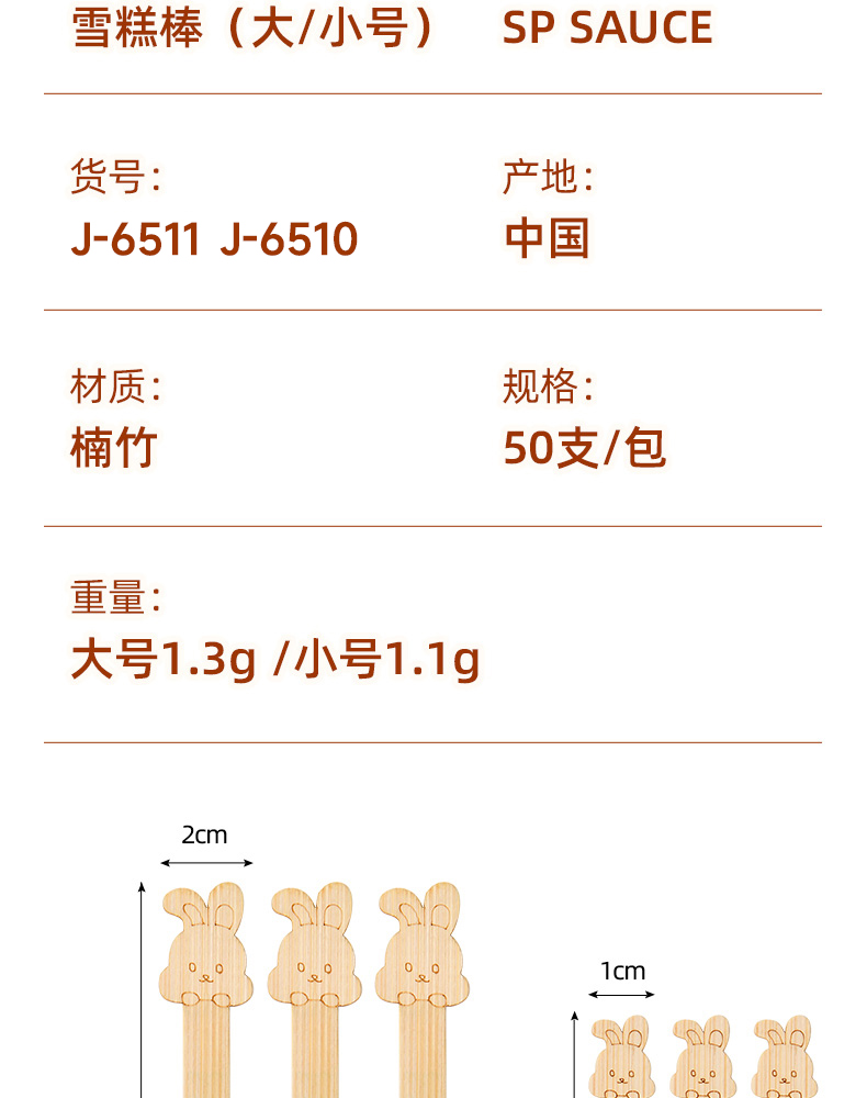 雪糕棒(50支装)小号 雪糕棒冰棍棒家用雪糕棍一次性自制冰淇淋食品级