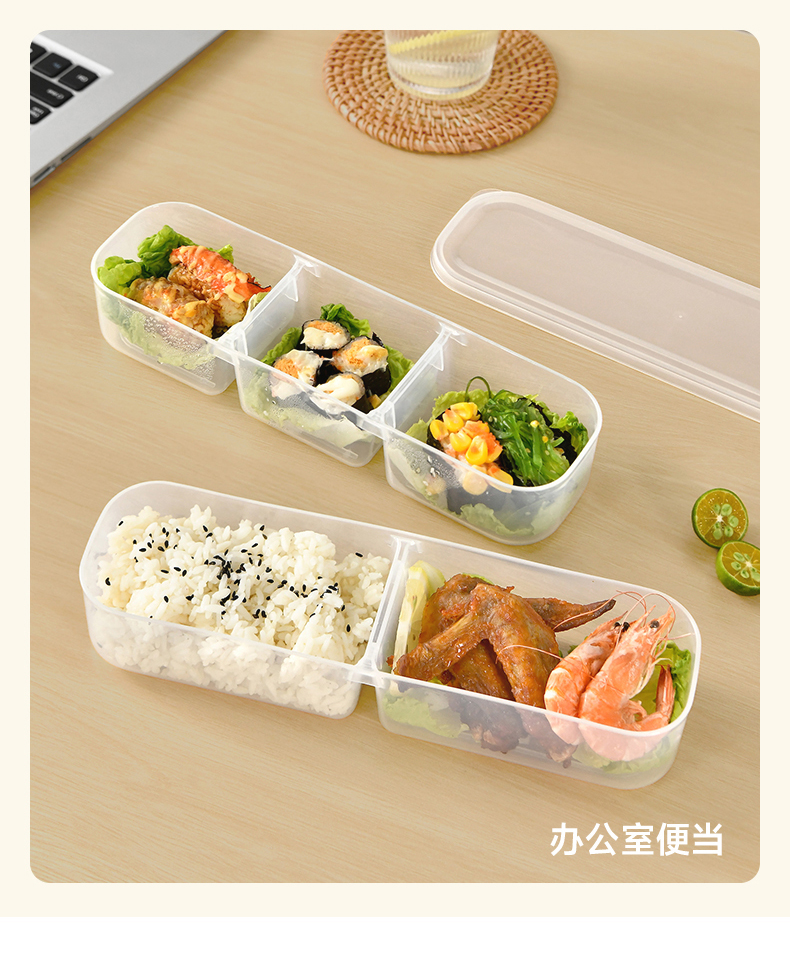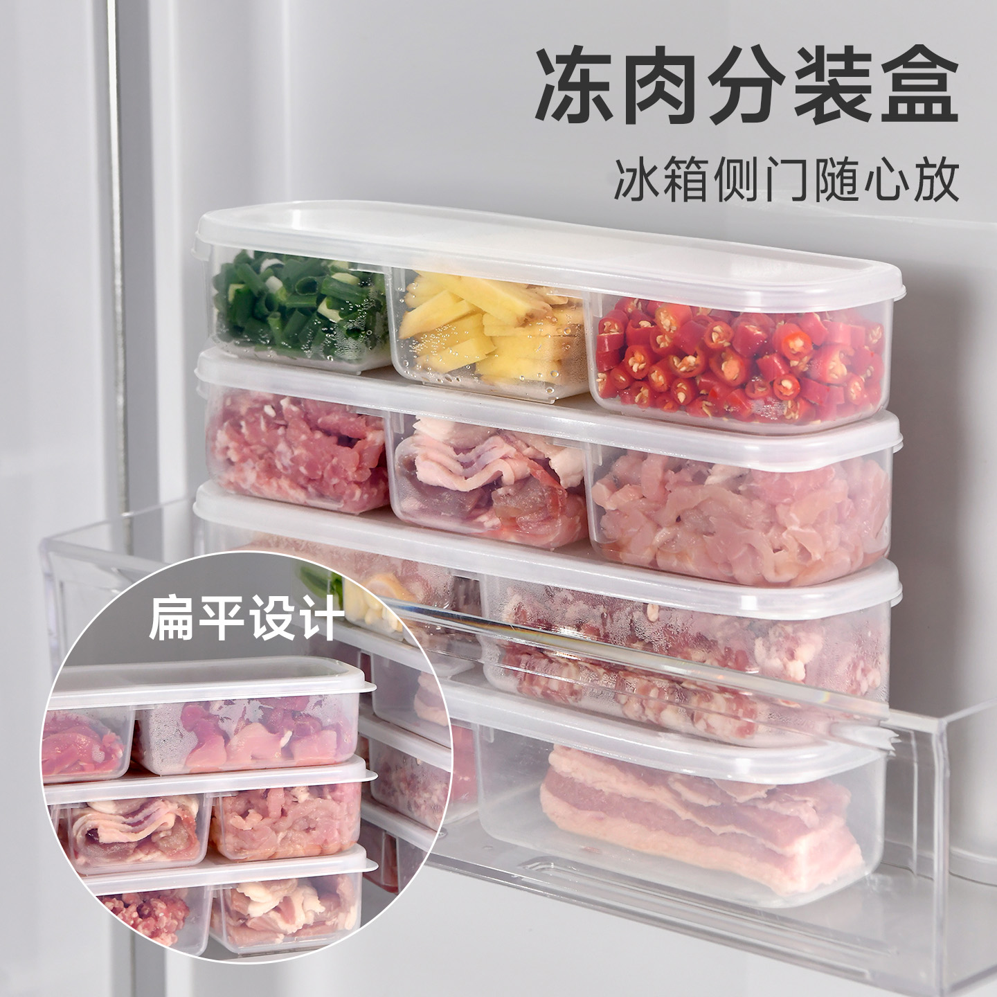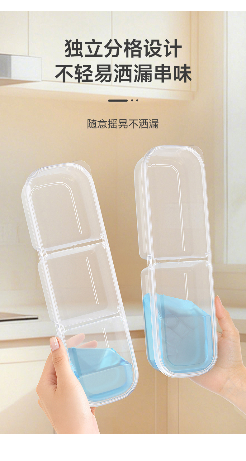 抗菌窄缝分格保鲜盒(两分格) 窄缝冰箱分格保鲜盒分装冰箱冻肉家用冷冻食品级二三分隔收纳盒子