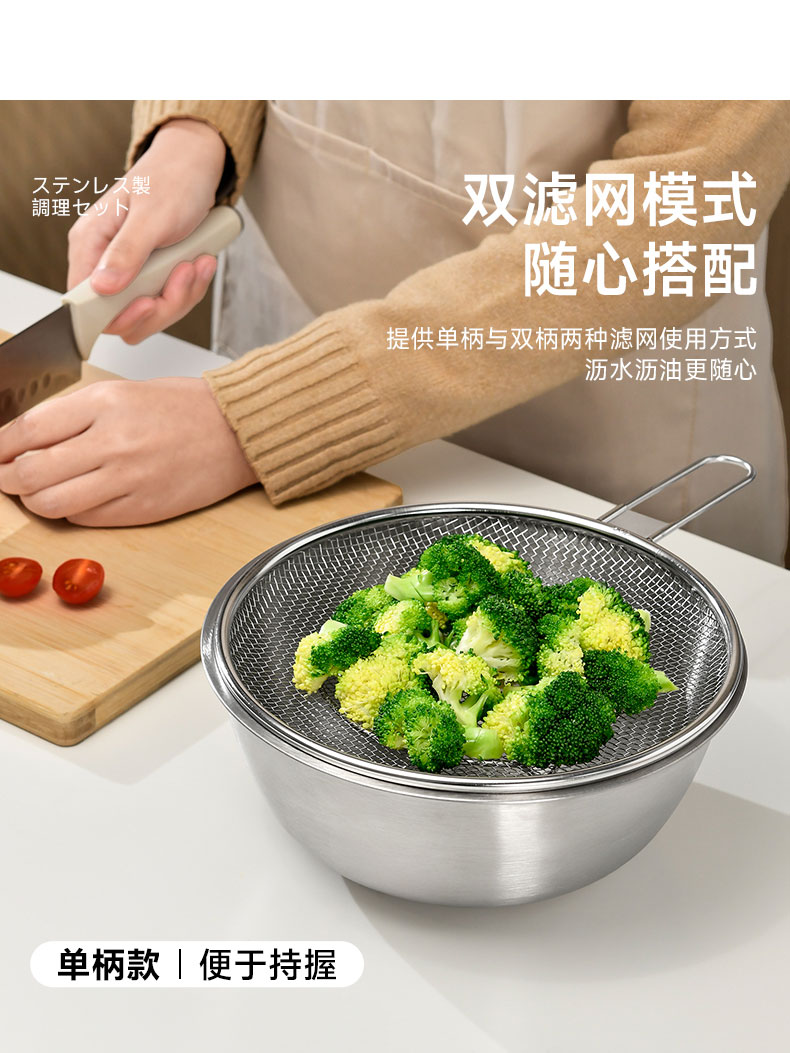 不锈钢加密网篮 304不锈钢厨房备菜沥水篮洗菜沥水盆五件套滤网沙拉碗