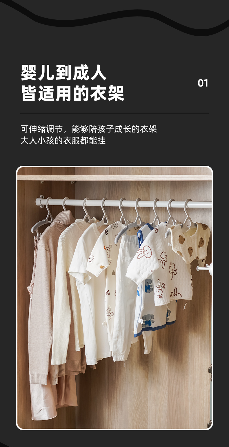 可伸缩儿童衣架(7个装) 儿童衣架婴儿宝宝新生儿小孩专用小衣架家用晾挂伸缩挂衣撑