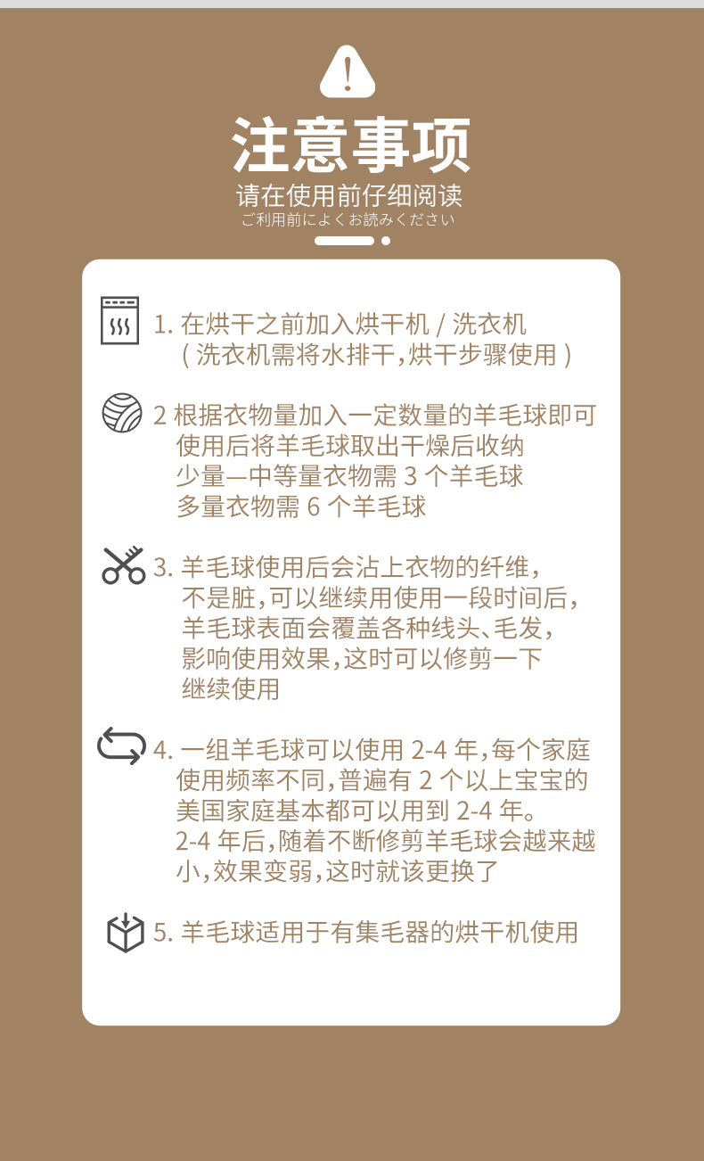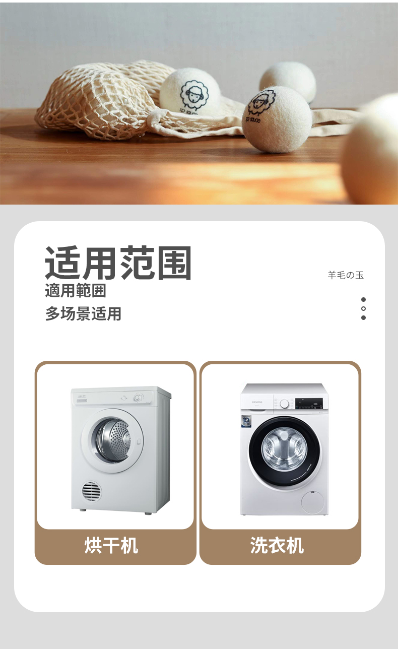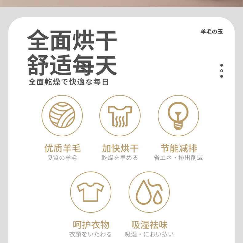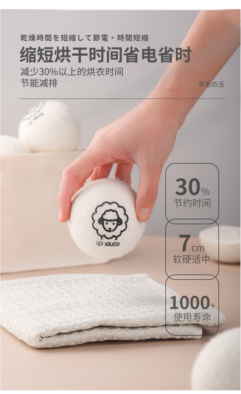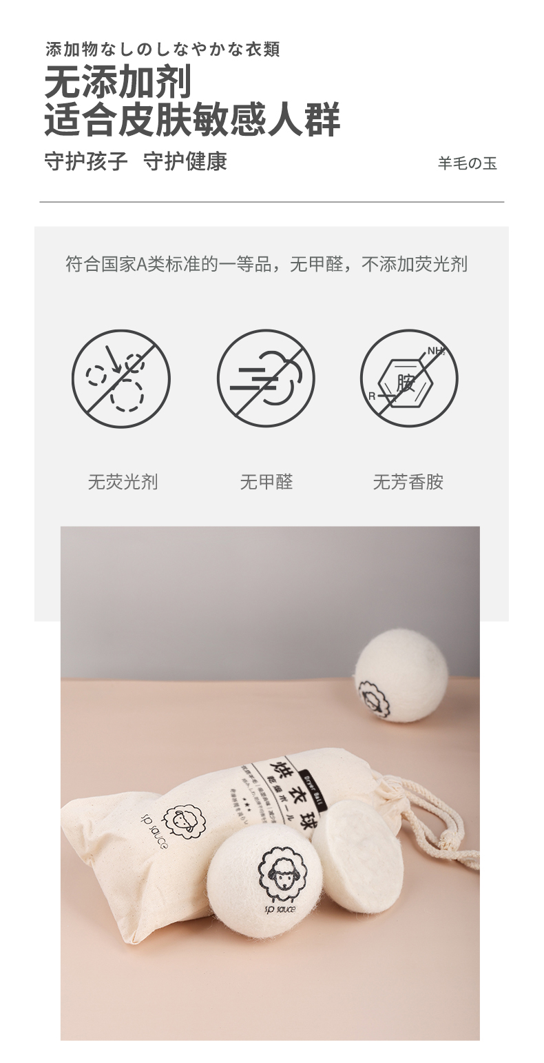 烘衣球 3枚入 防缠绕烘干羊毛球家用干衣洗衣烘干机防缠绕适烘干球