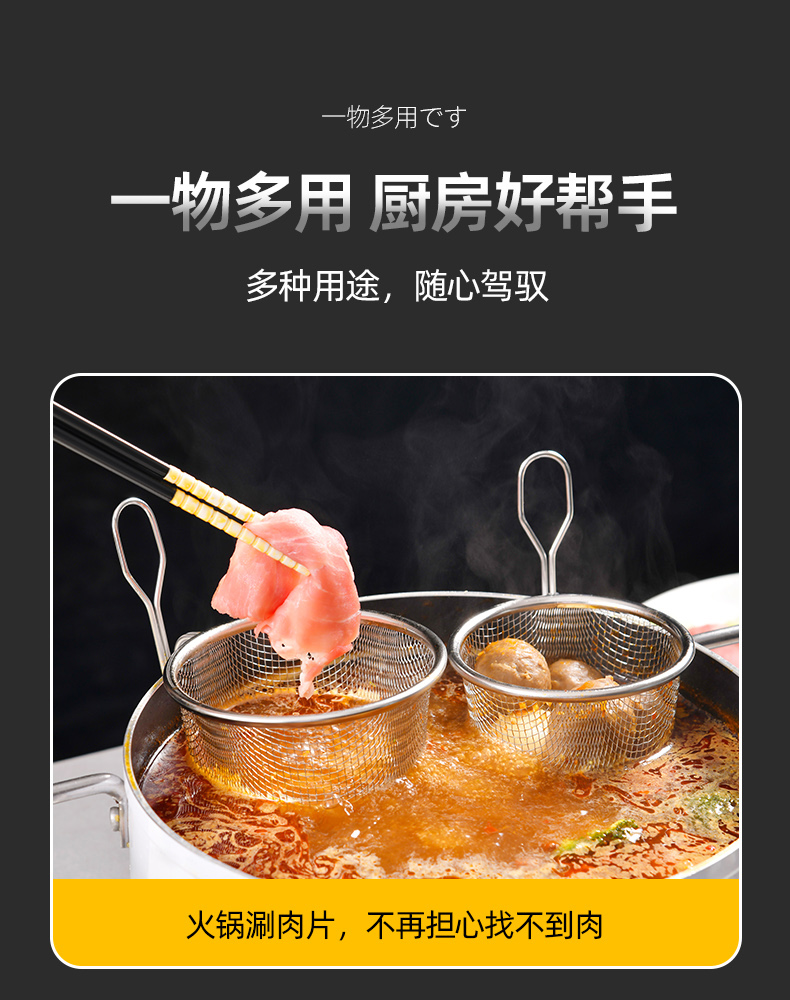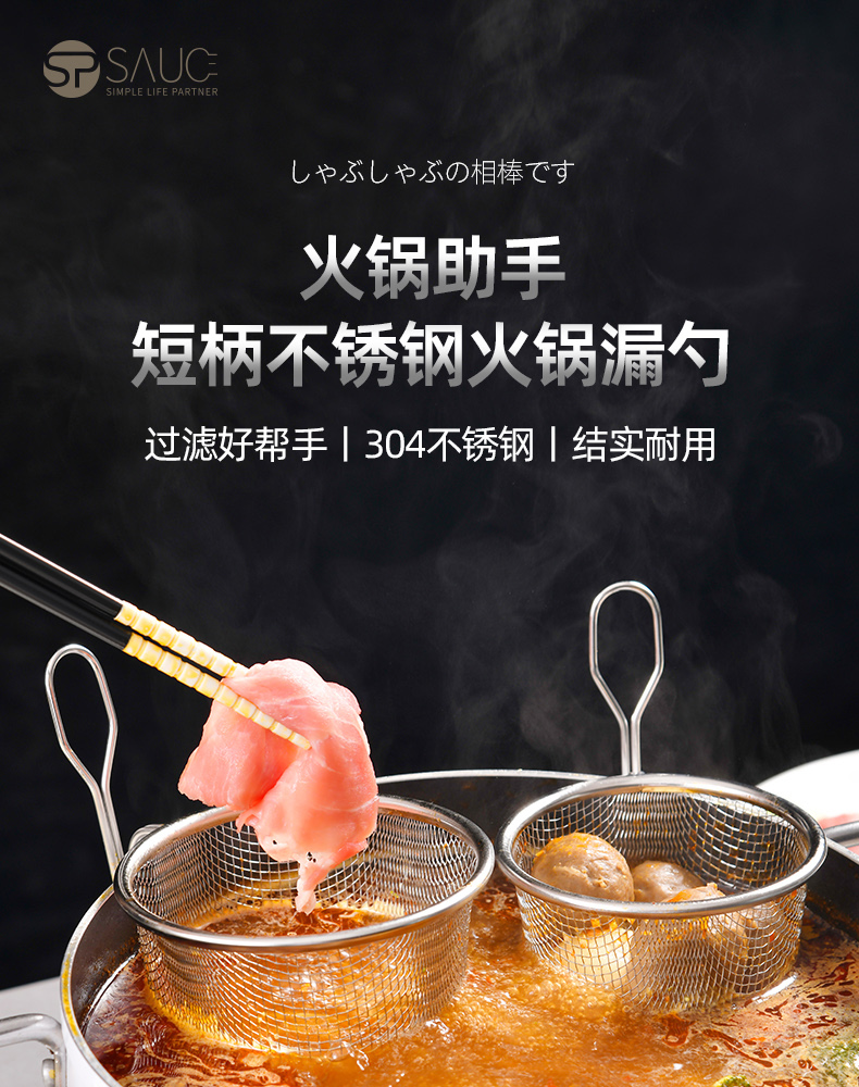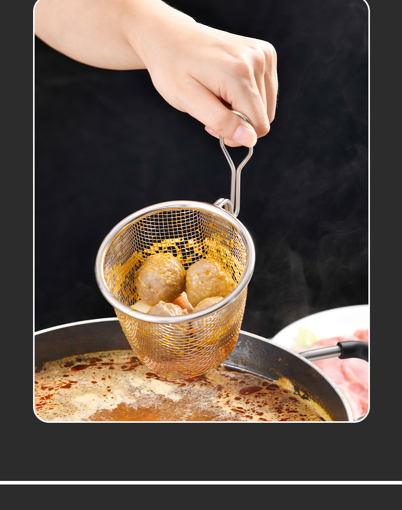 短柄火锅漏勺(小号) 304火锅专用漏勺细网家用捞面勺漏网油炸网篮漏勺子网漏密漏细密