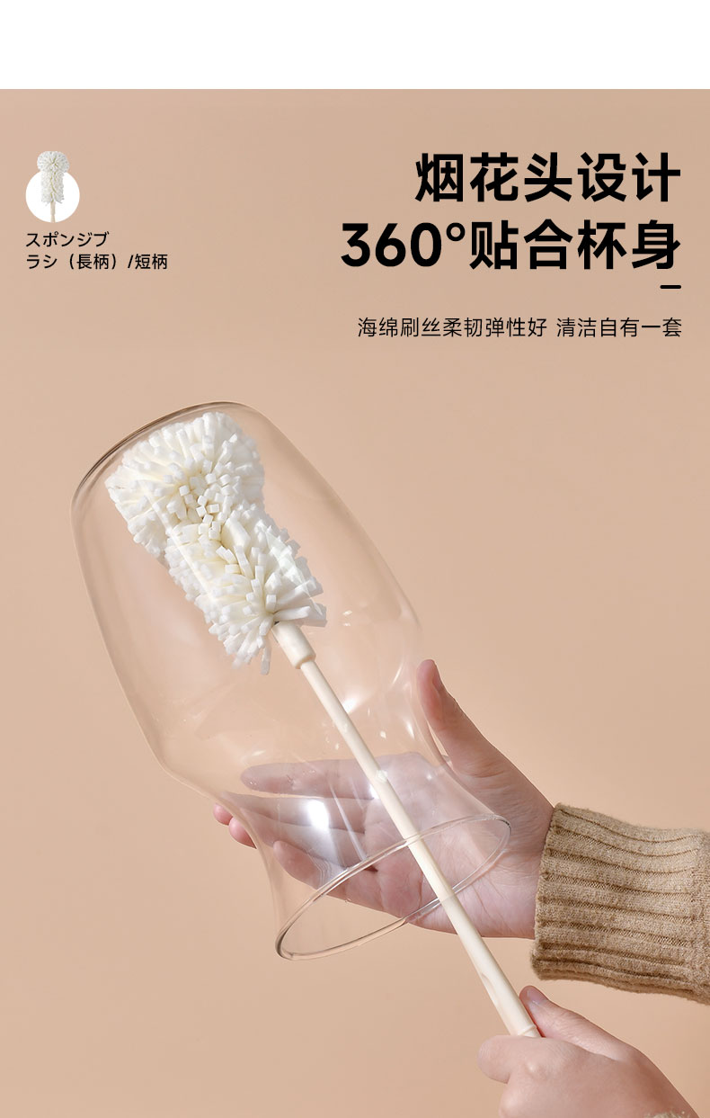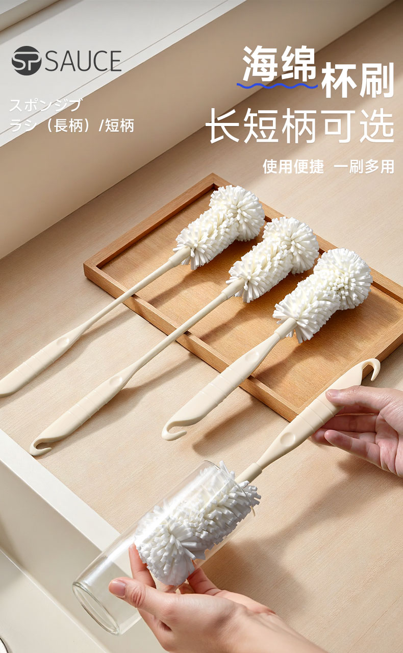 海绵杯刷(长柄) 洗杯子神器刷水杯清洁长柄洗奶瓶刷无死角去茶渍海绵小刷子