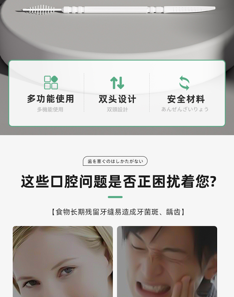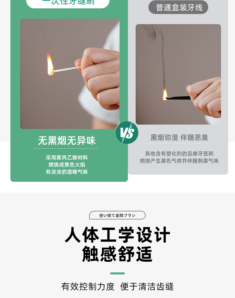 一次性牙缝刷(300支装) 一次性牙缝刷鱼骨便携式家用剔牙签牙间刷两用牙线牙签刷