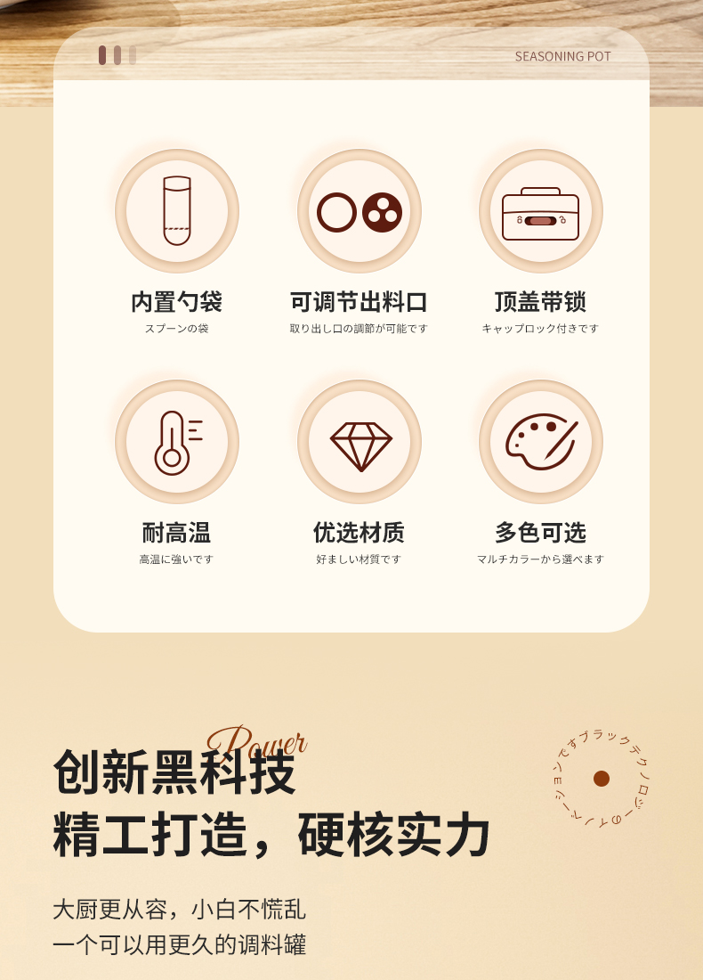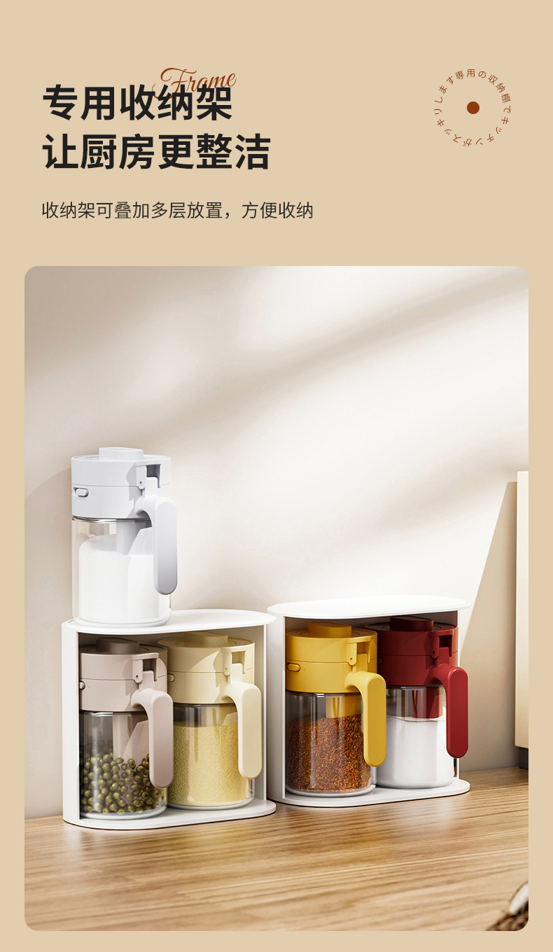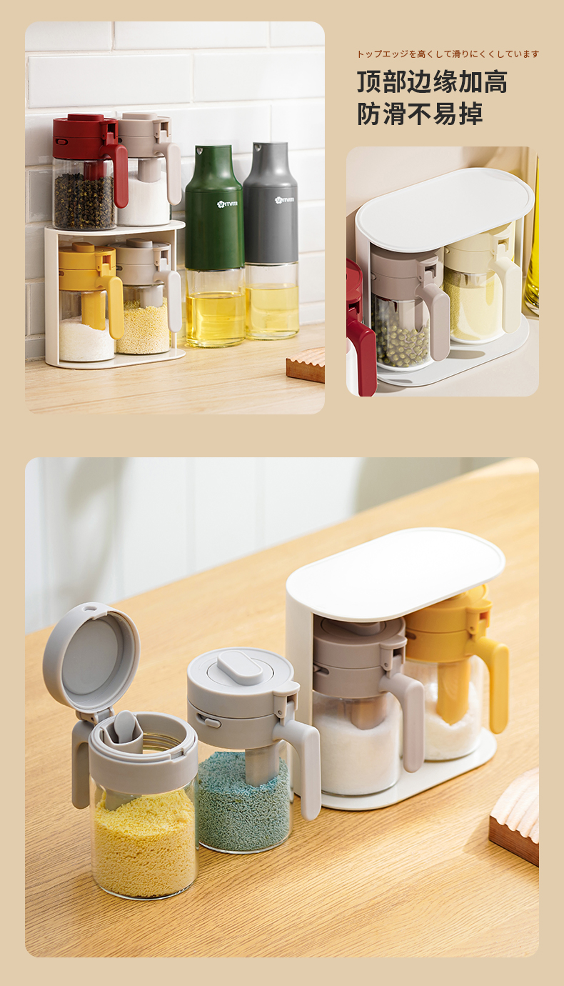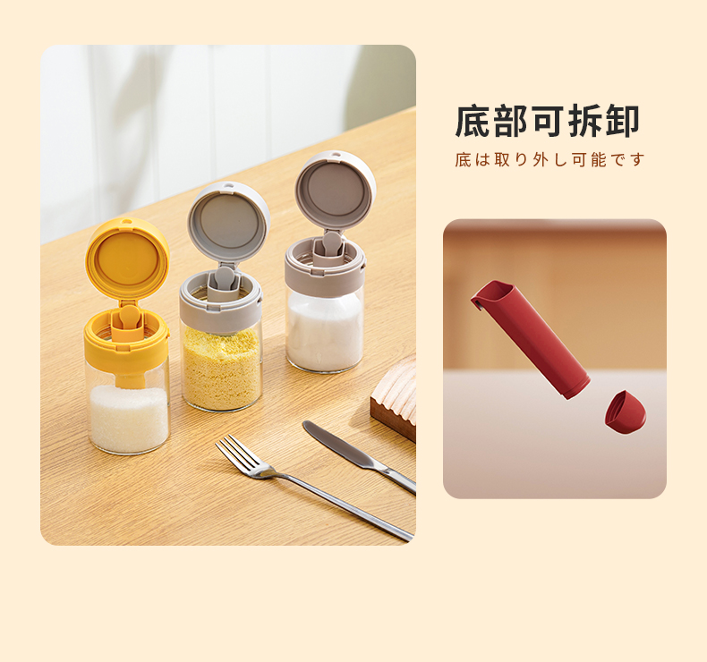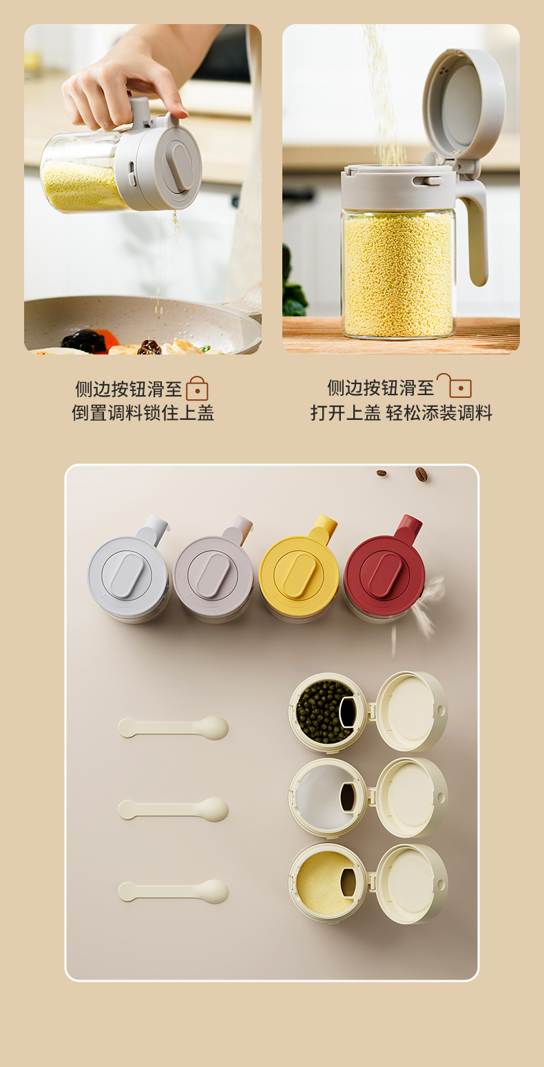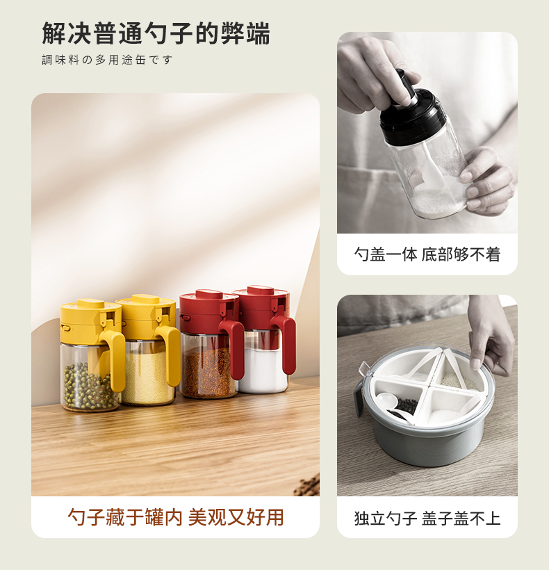 多功能调料罐 料勺分离调料盒厨房家用调味料罐盐罐佐料收纳盒二合一设计倒挖两用厨房神器