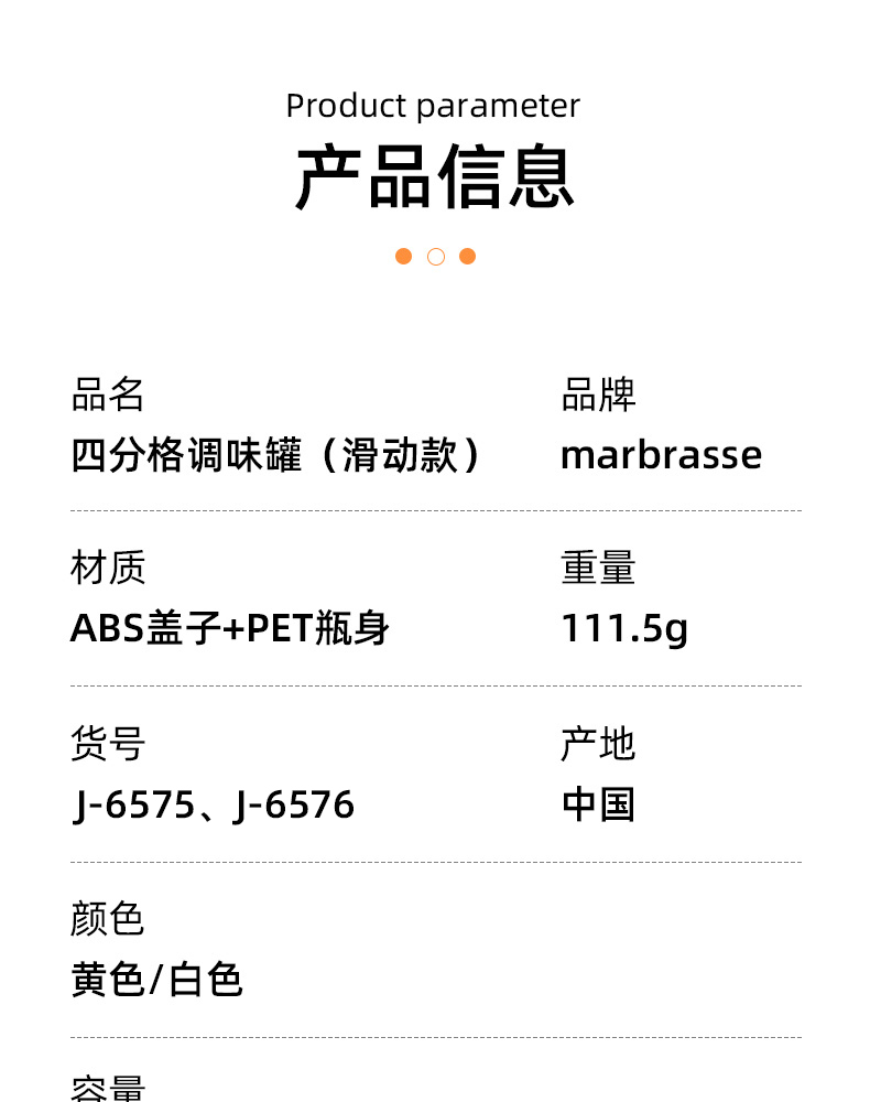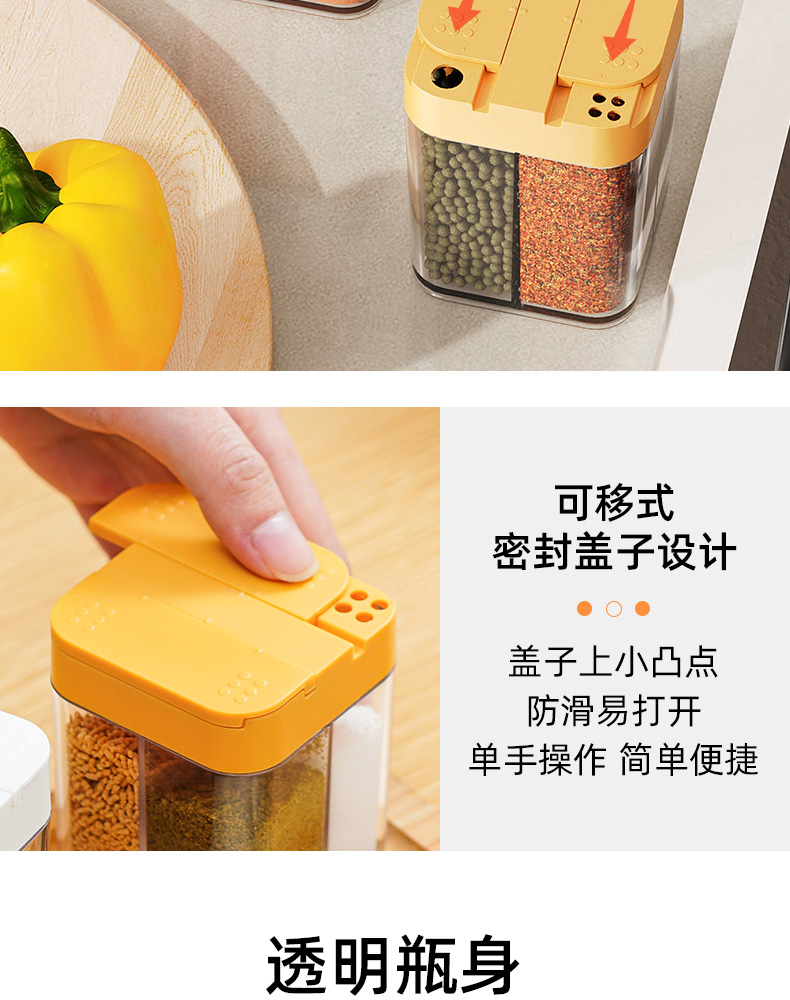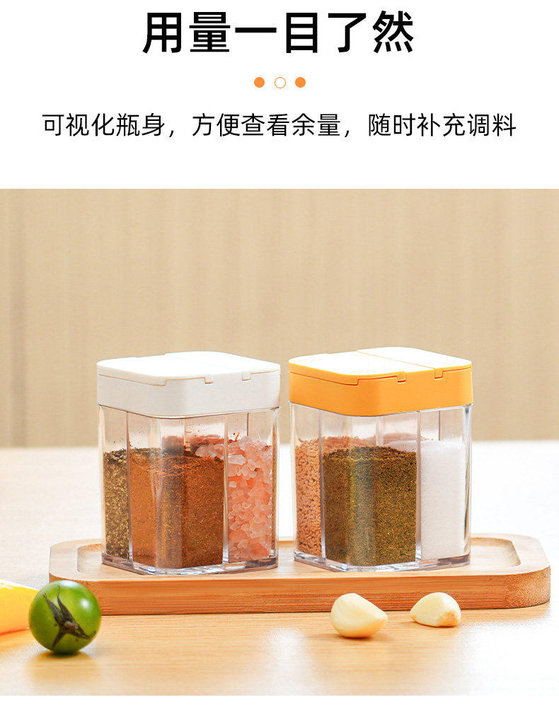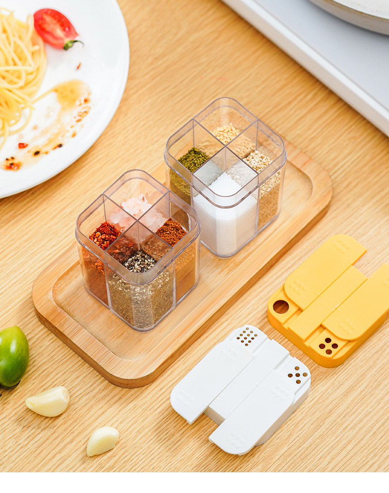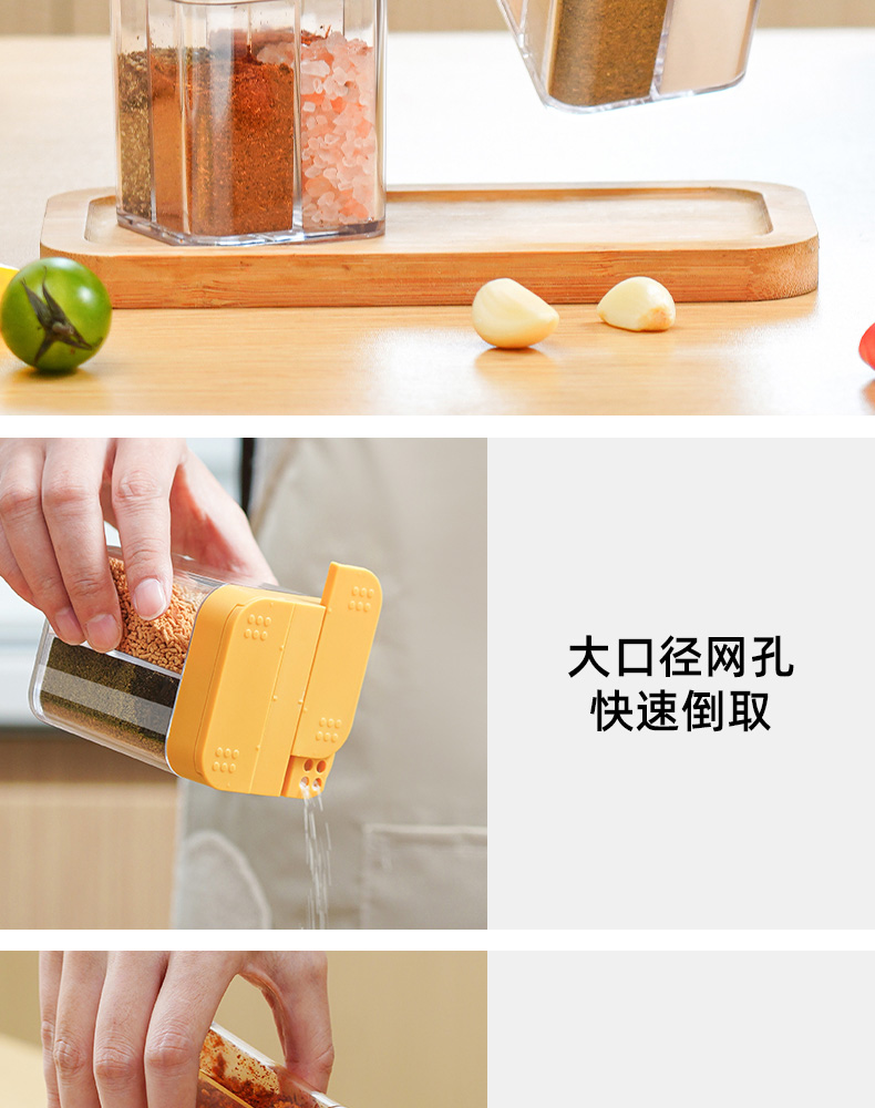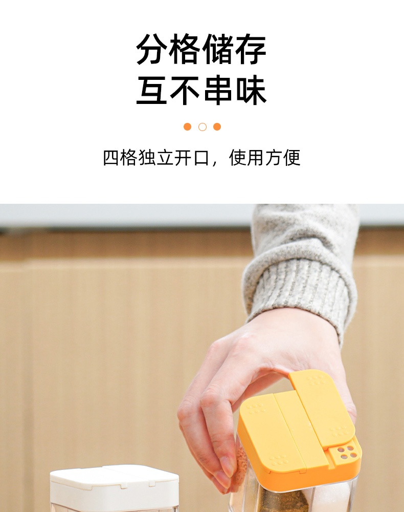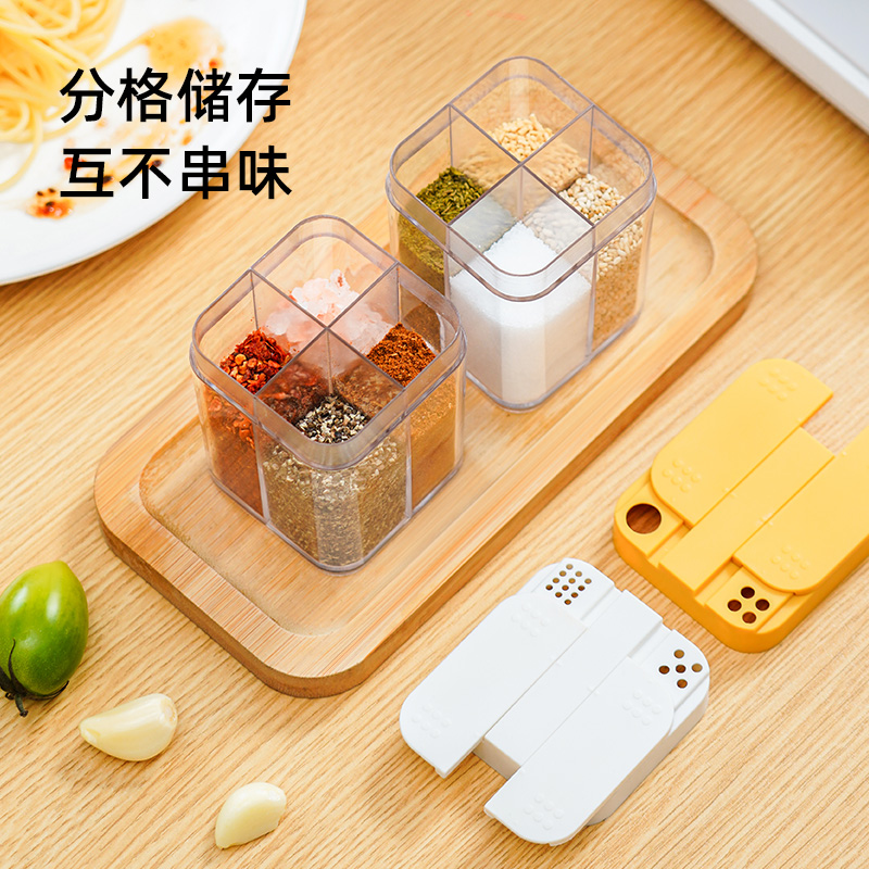 四分格调味罐(滑动款) 调料盒厨房调料瓶调味罐四分格调料罐防潮盐罐盖子可滑动