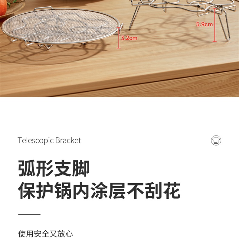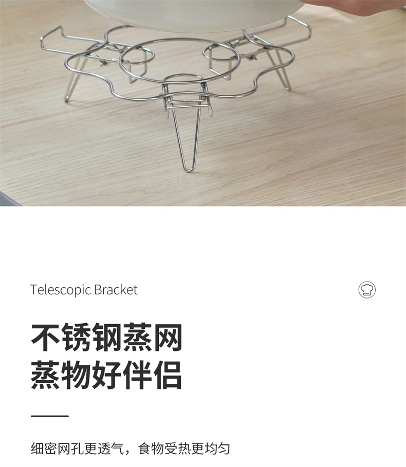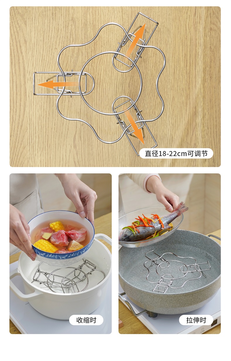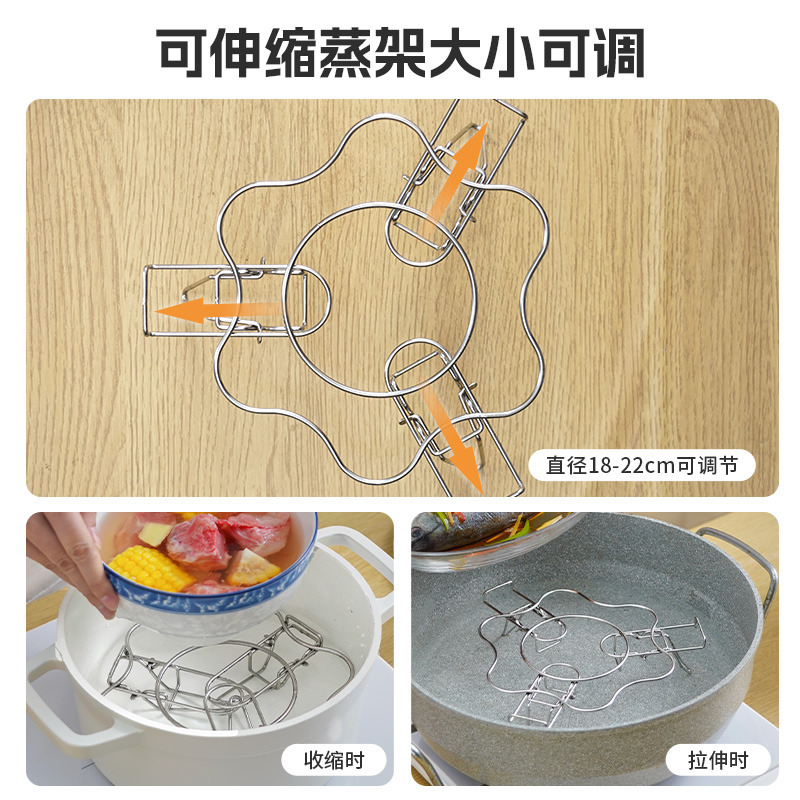 不锈钢伸缩蒸架 304不锈钢可伸缩蒸架折叠多功能隔水高脚蒸笼支架加高蒸菜锅架子