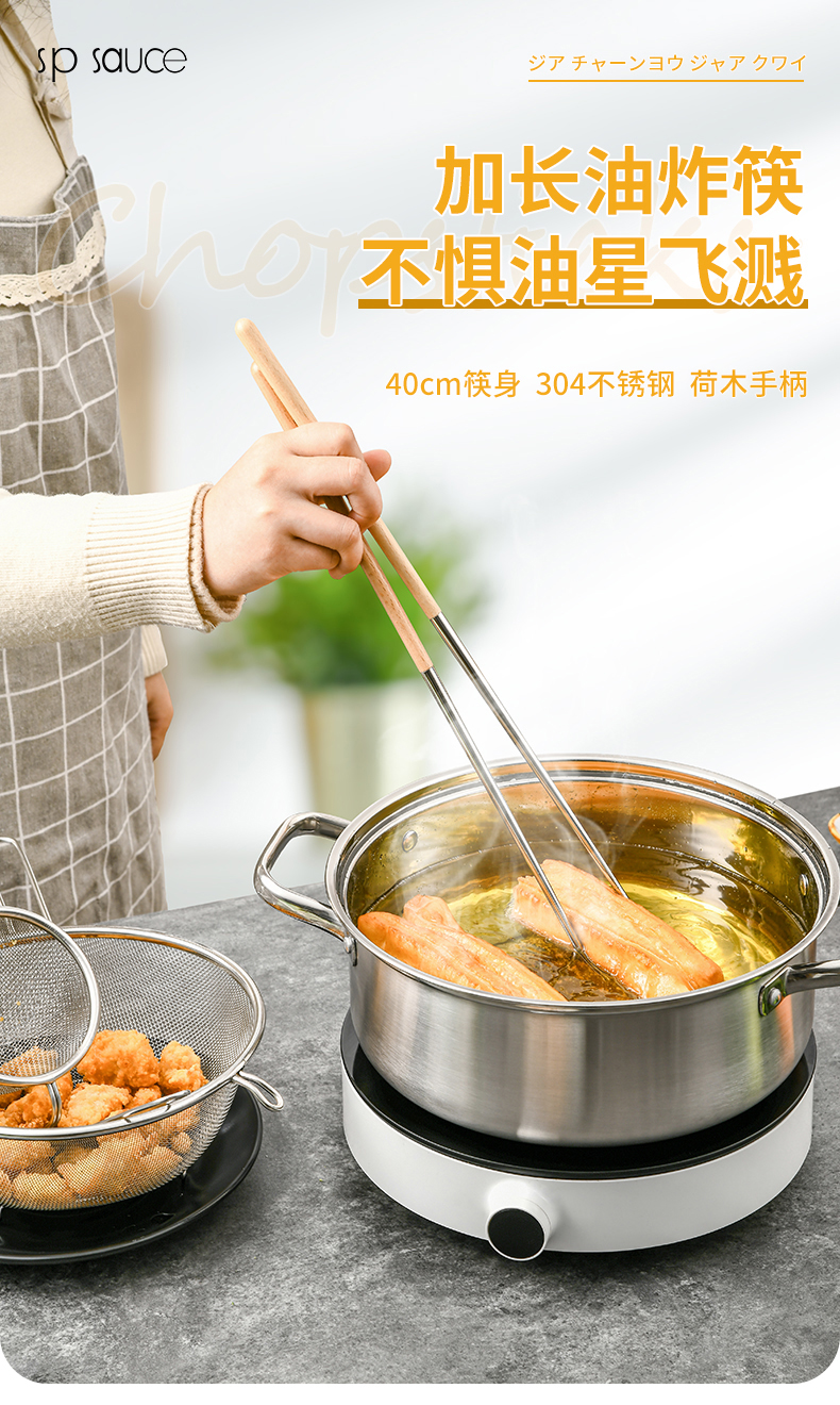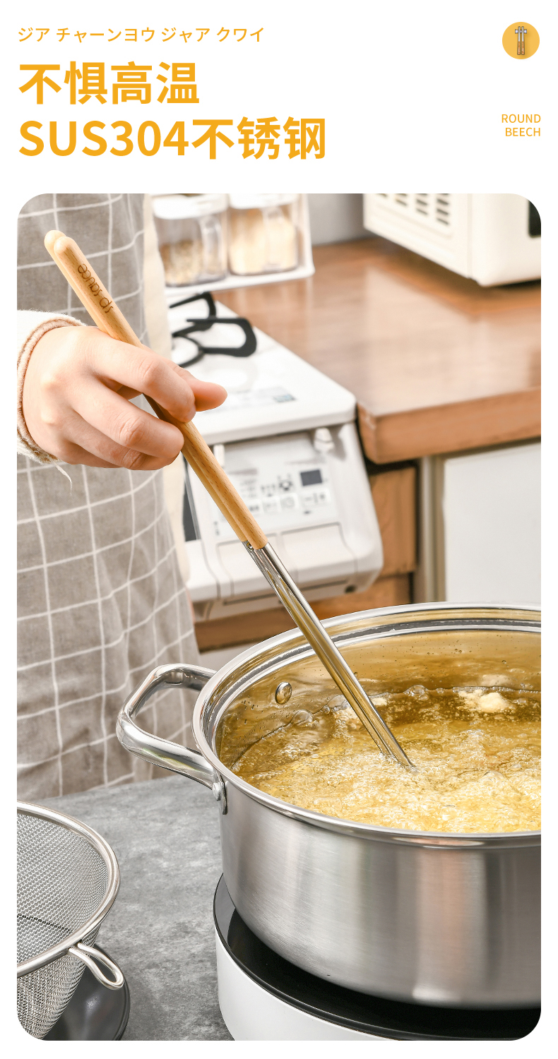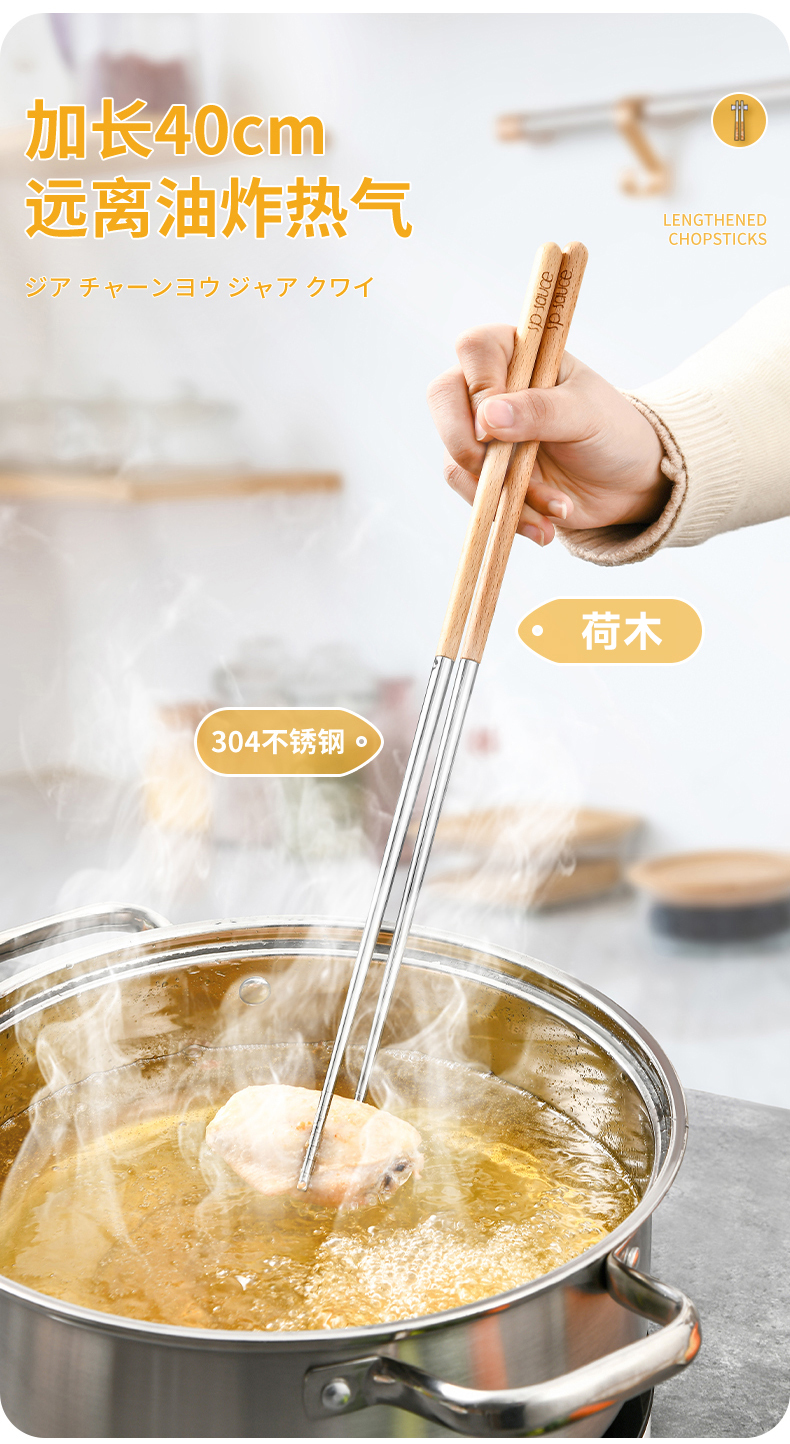 厨房用油炸筷 304不锈钢荷木木加长款火锅油炸筷子家用捞面厨房油条筷子