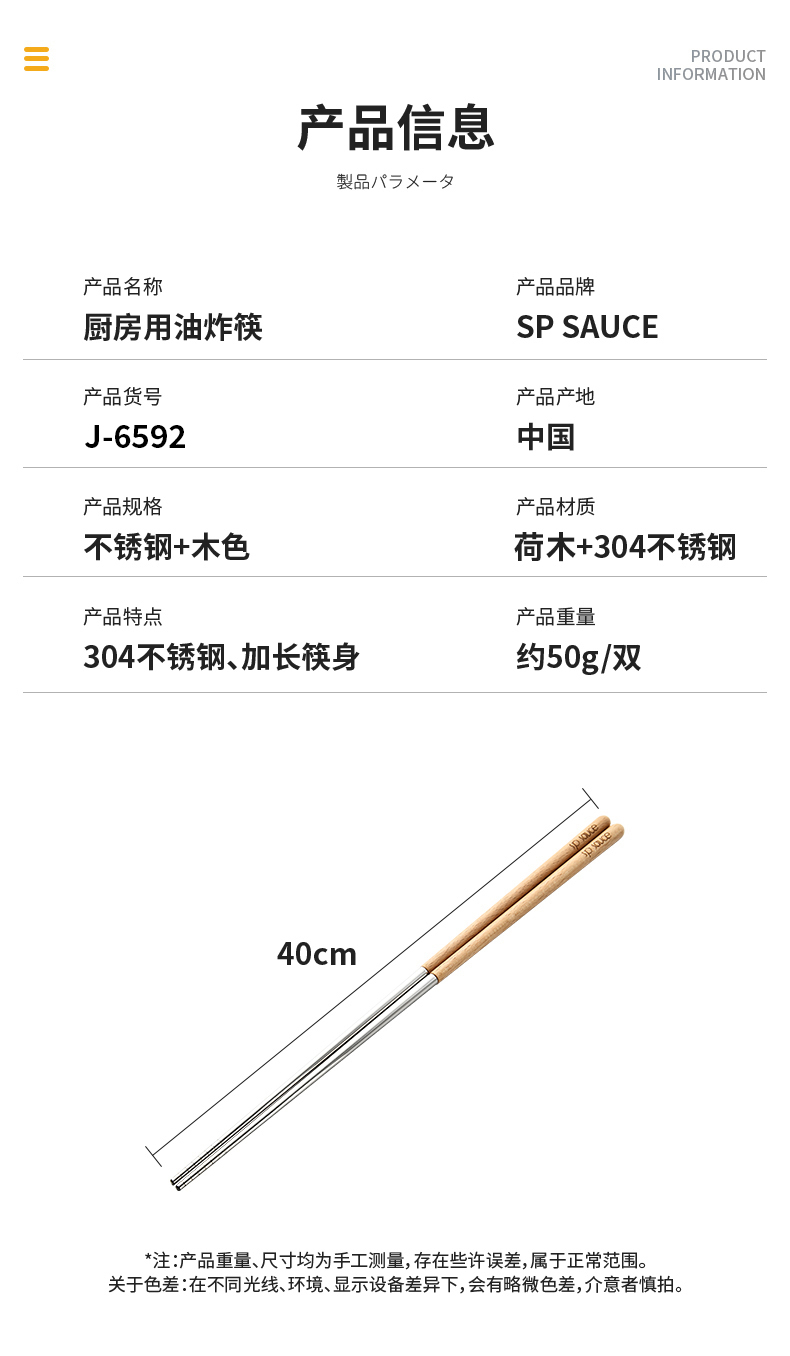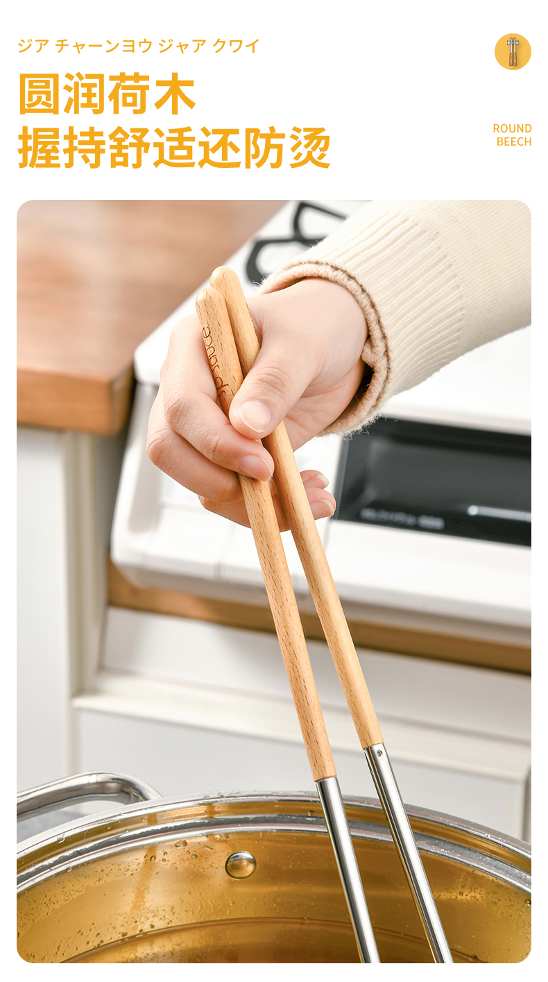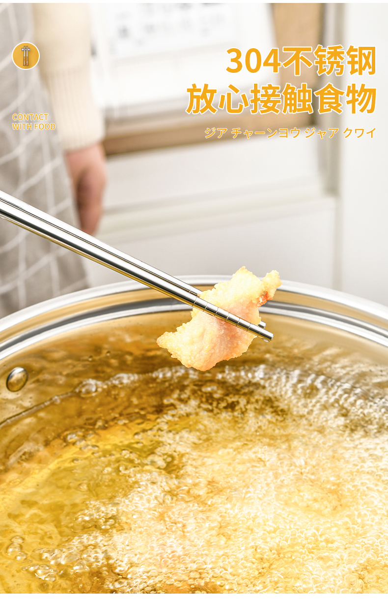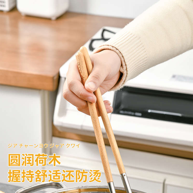 厨房用油炸筷 304不锈钢荷木木加长款火锅油炸筷子家用捞面厨房油条筷子