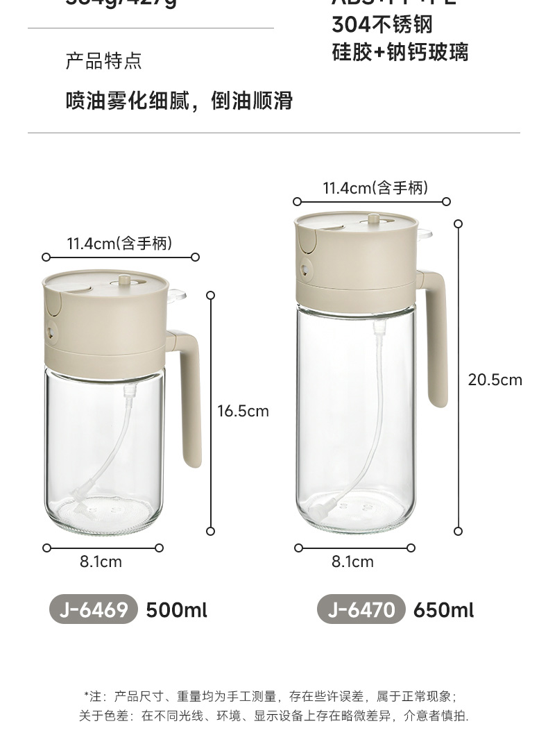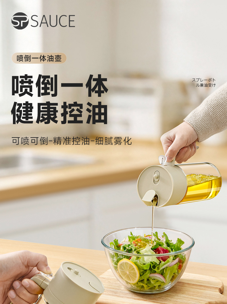 喷倒一体油壶500ml 喷倒两用玻璃油壶食品级家用厨房雾化喷油罐大容量喷油壶