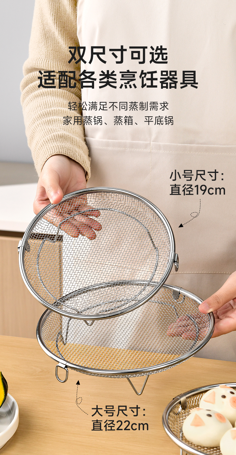 双耳蒸盘手柄 304不锈钢蒸屉热馒头不湿神器蒸格篦子热馍馍溜蒸盘蒸架多功能加高设计