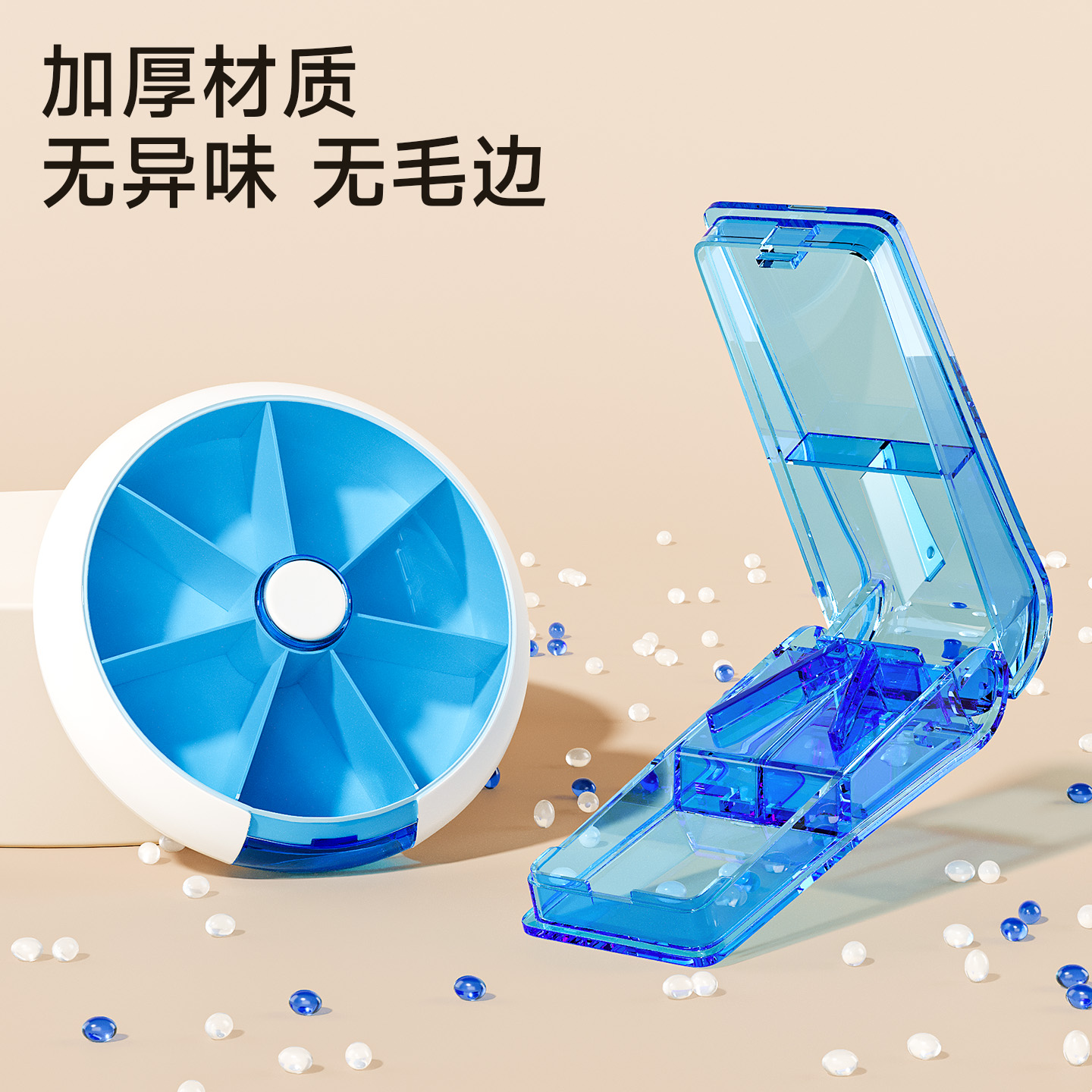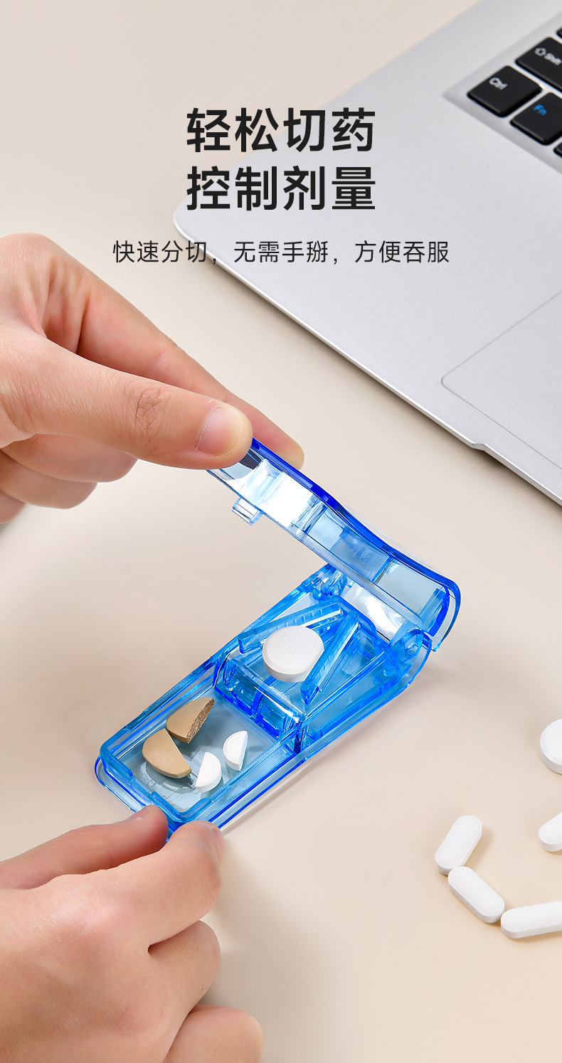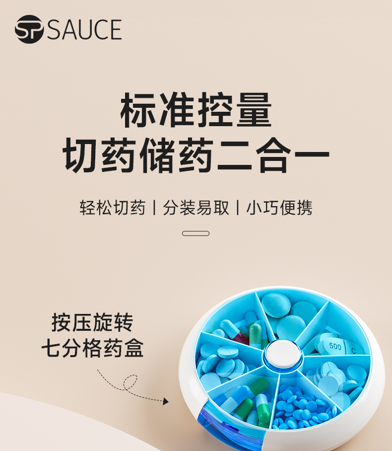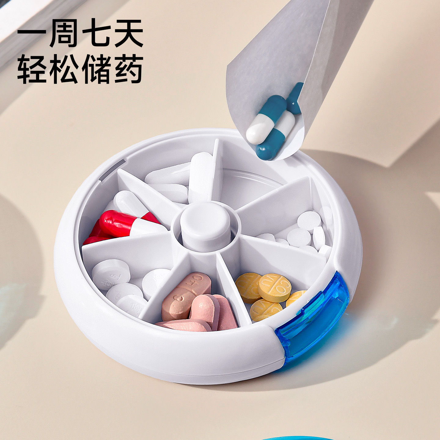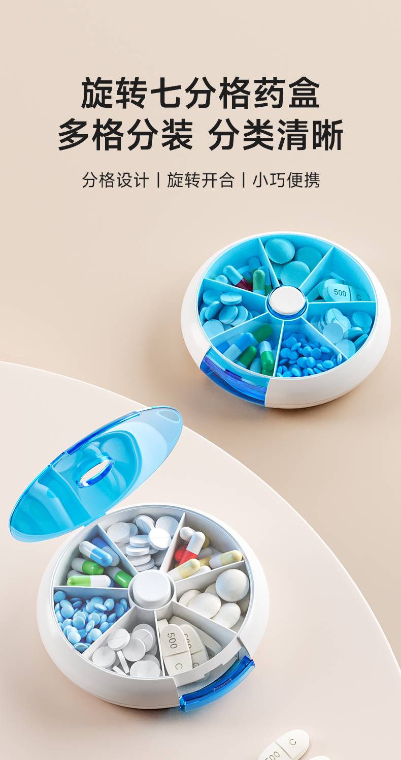 旋转七分格药盒 旋转小药盒便携式一周分装随身旅行分药盒子切药器装药片品