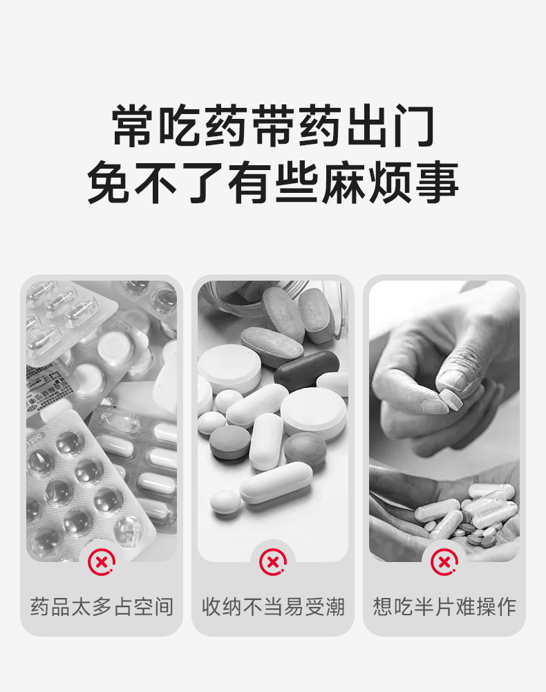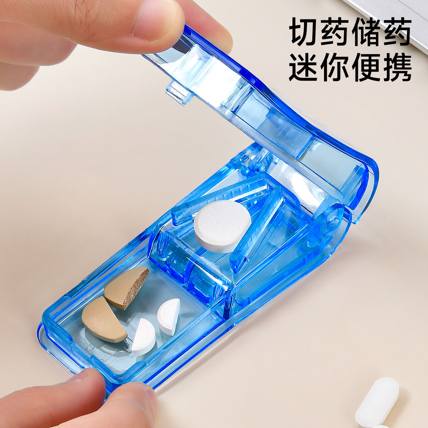 透明切药器 切药器可固定药片分割器透明切药盒便携迷你塑料分药盒