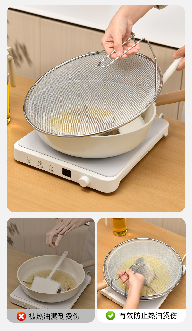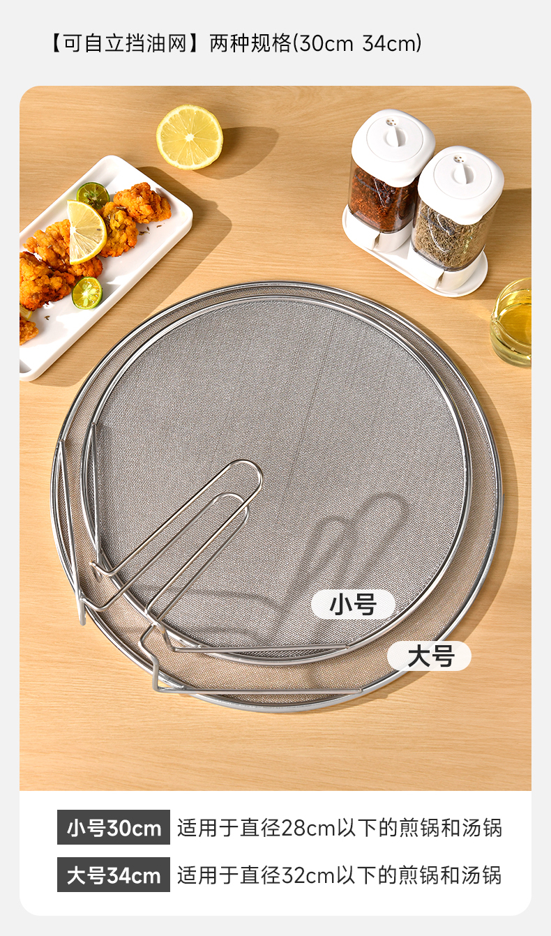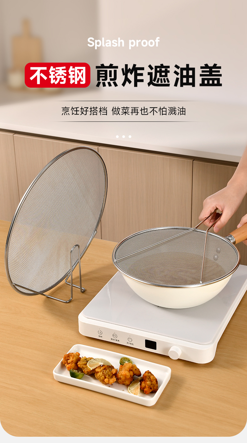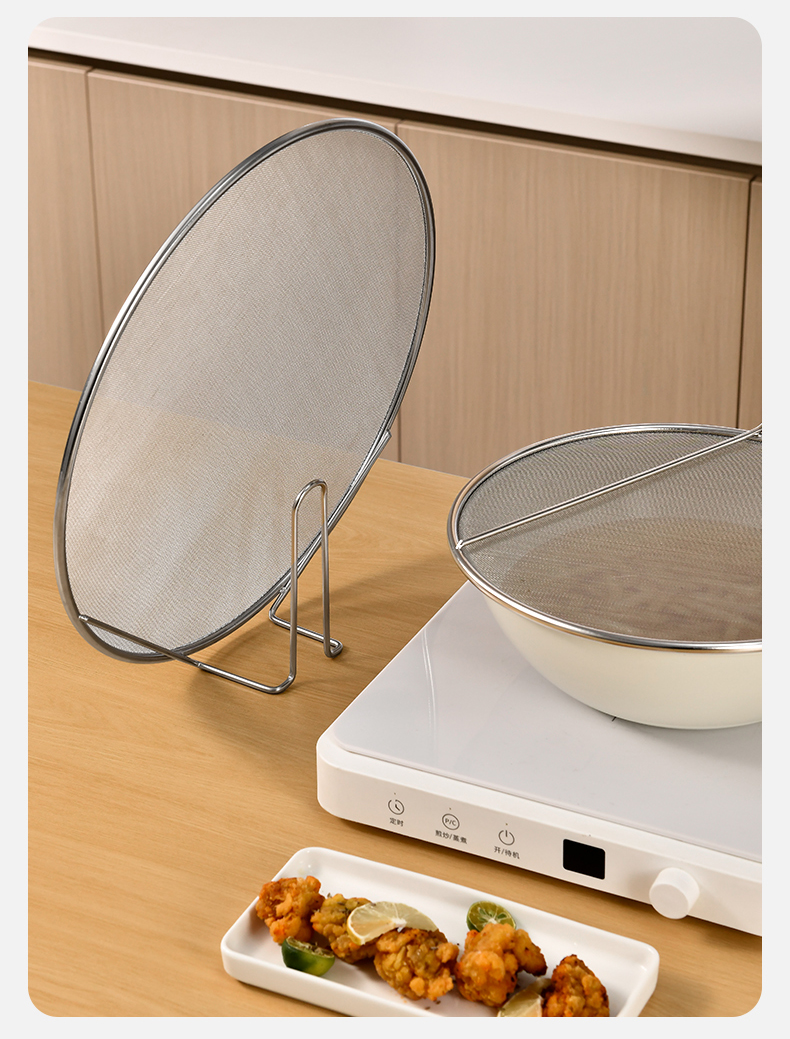 不锈钢挡油网(34CM) 不锈钢防油溅锅盖圆形厨房家用带手柄防油爆网漏防溅网油隔沥水罩