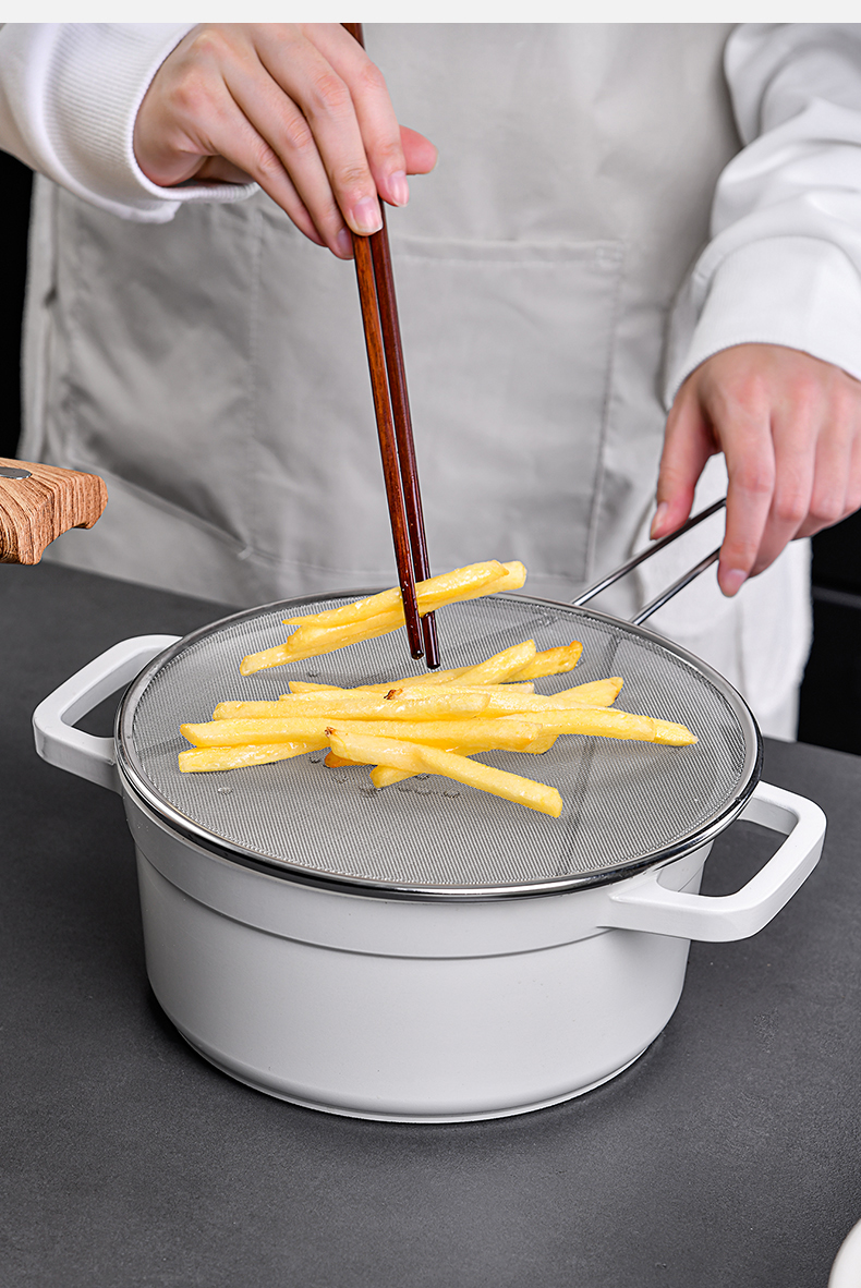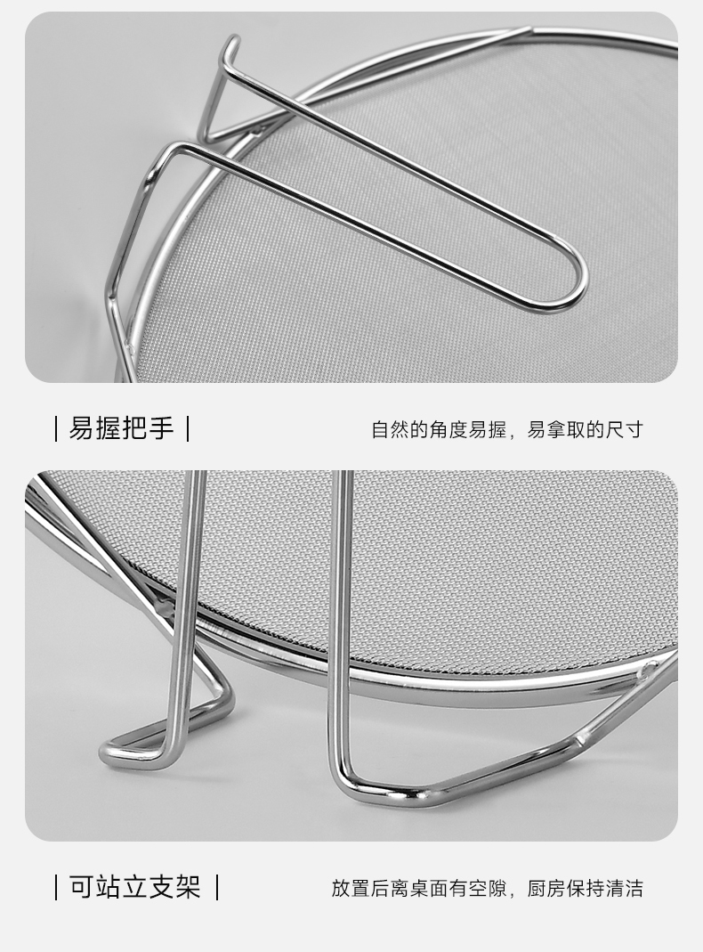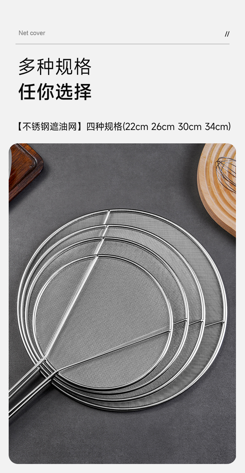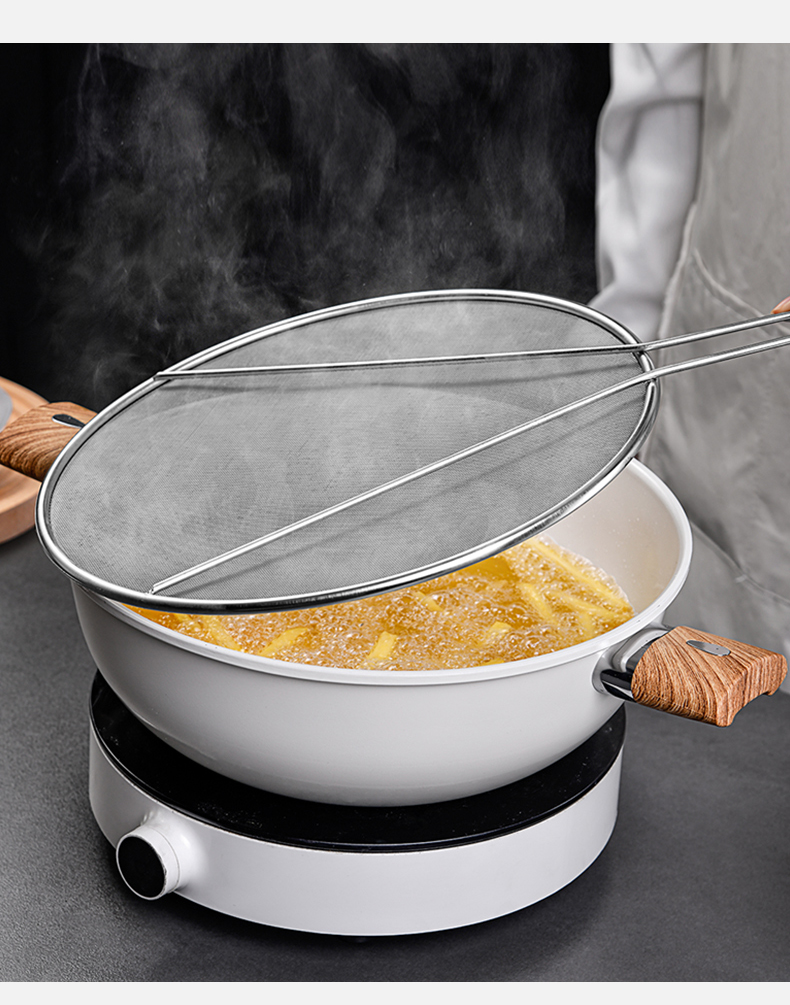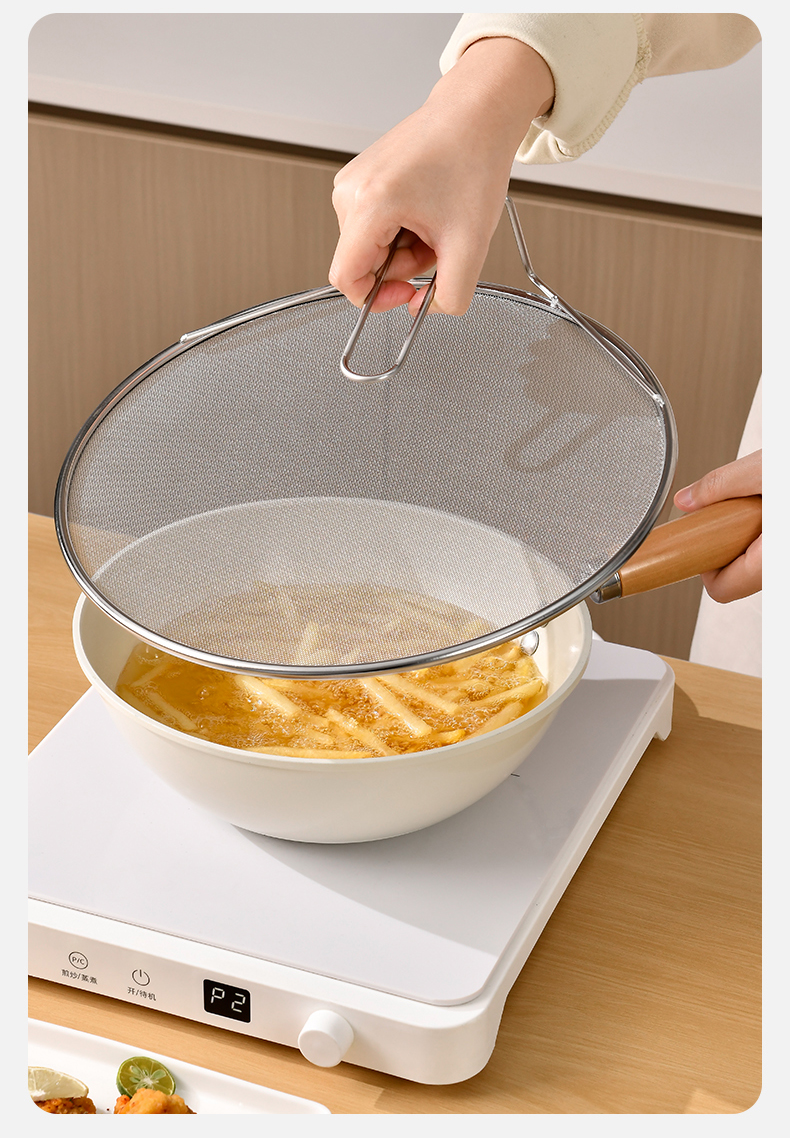 不锈钢挡油网(34CM) 不锈钢防油溅锅盖圆形厨房家用带手柄防油爆网漏防溅网油隔沥水罩