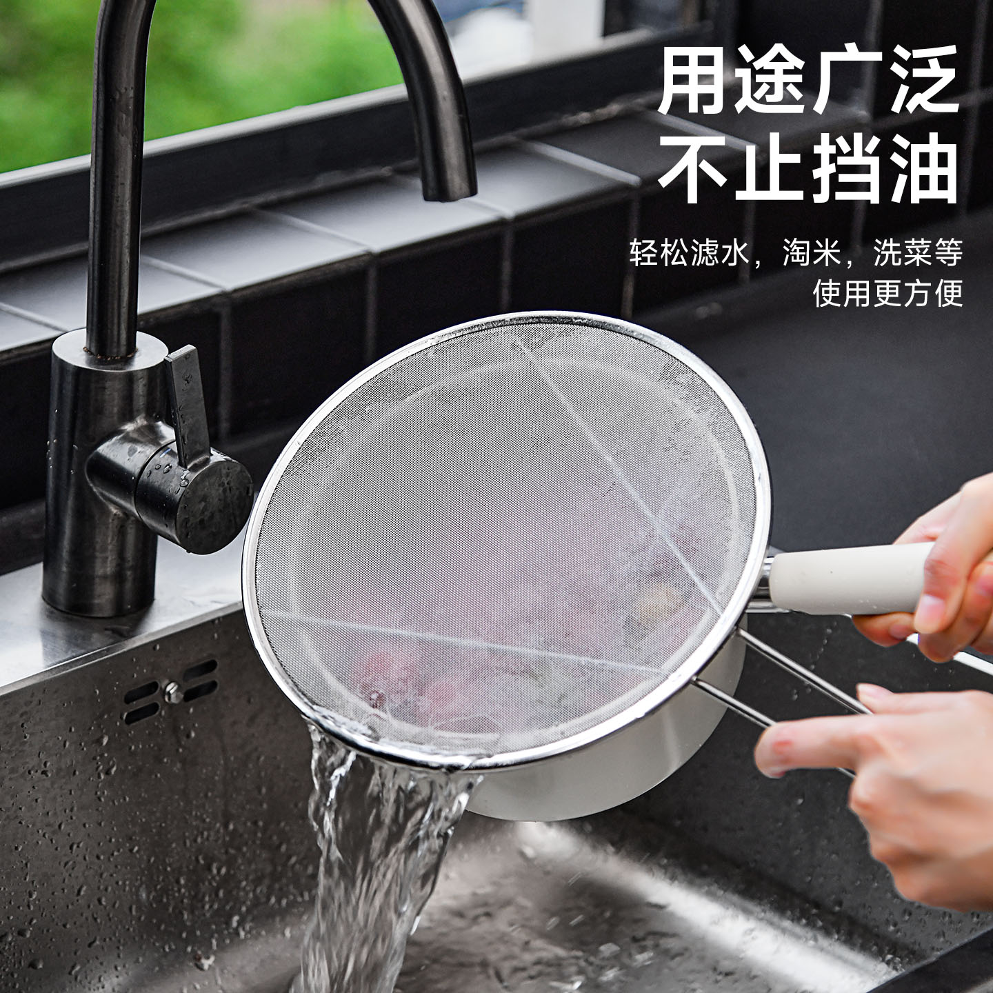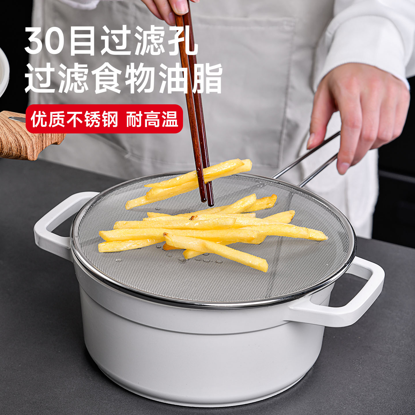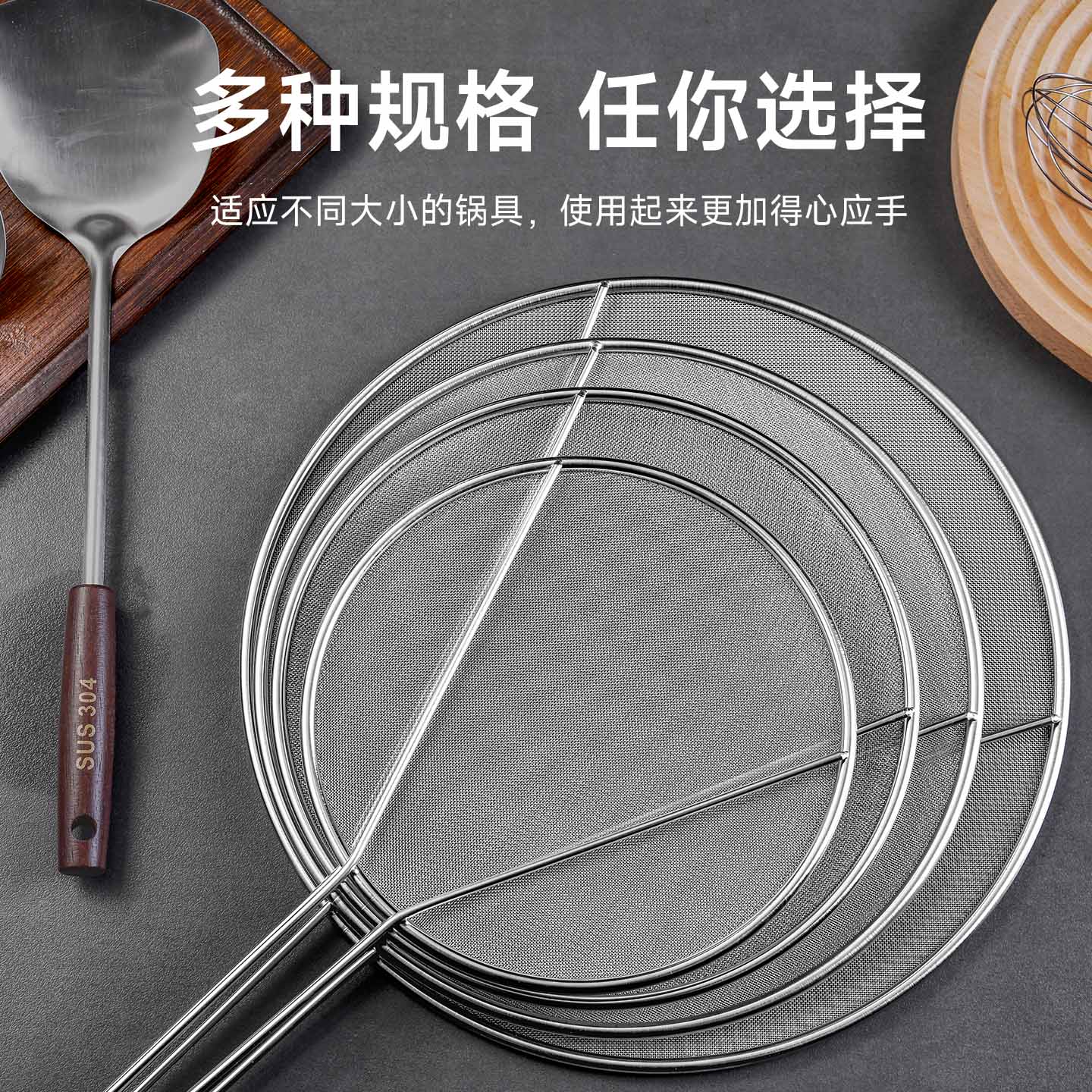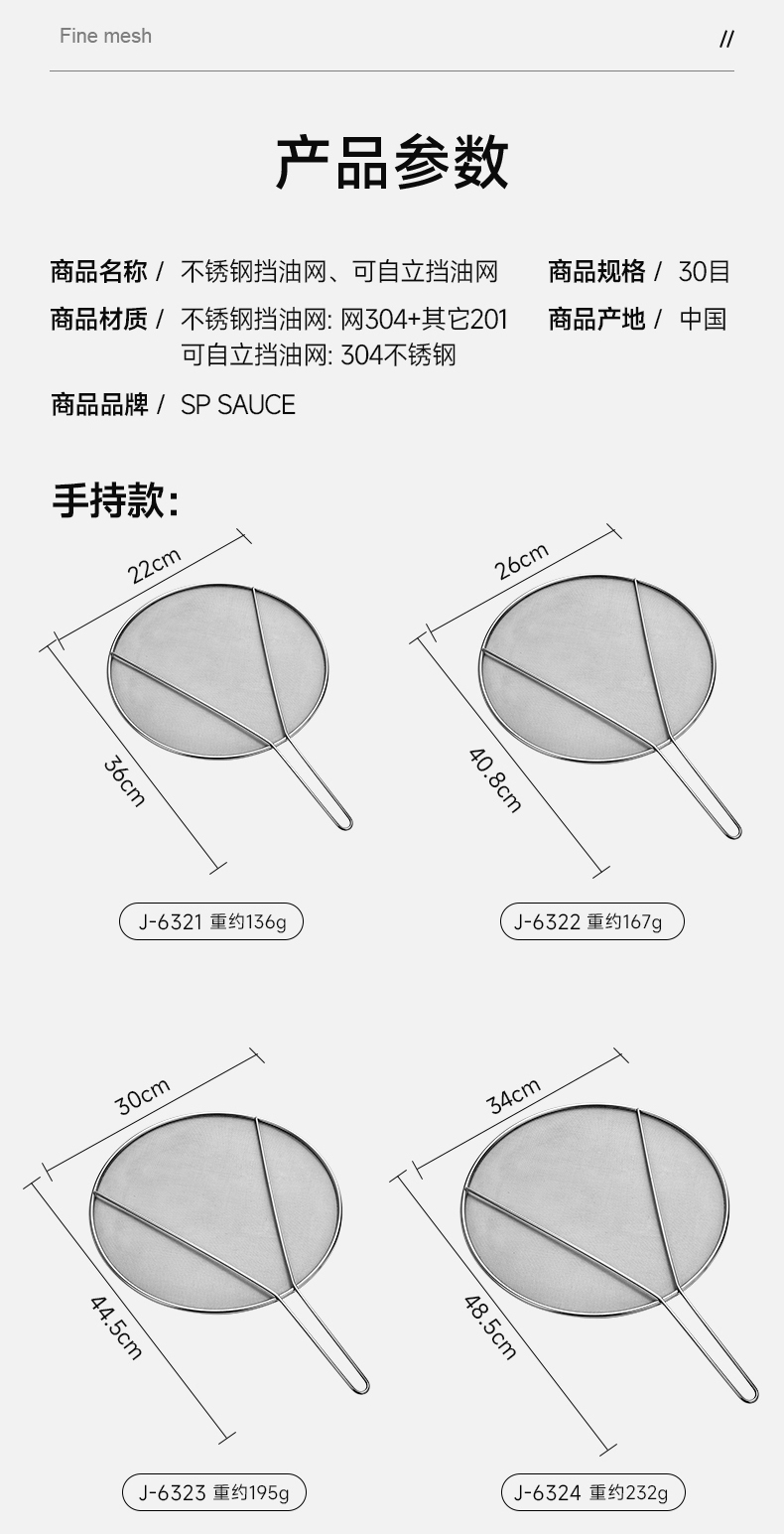 不锈钢挡油网(34CM) 不锈钢防油溅锅盖圆形厨房家用带手柄防油爆网漏防溅网油隔沥水罩