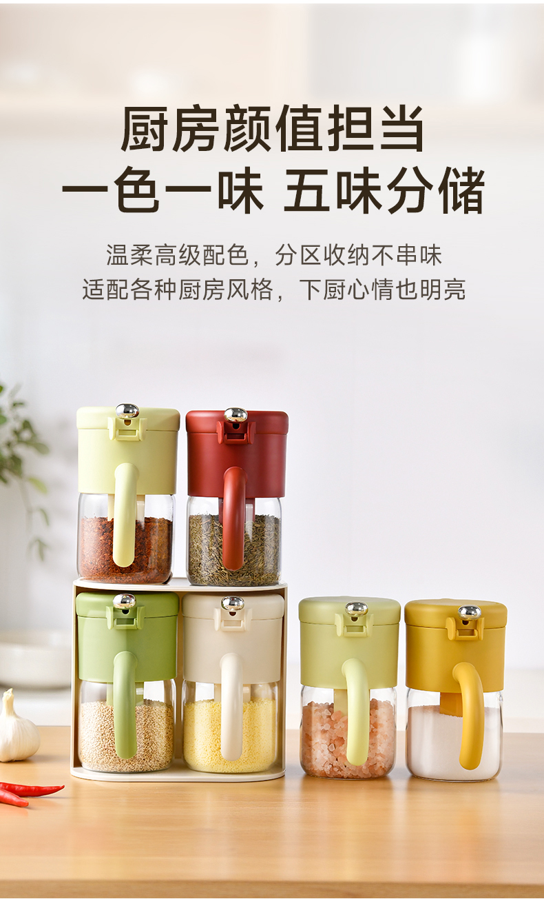 抗菌密封调料罐 调料罐厨房盐调味罐家用收纳盒专用调料瓶密封防潮调料盒抗菌