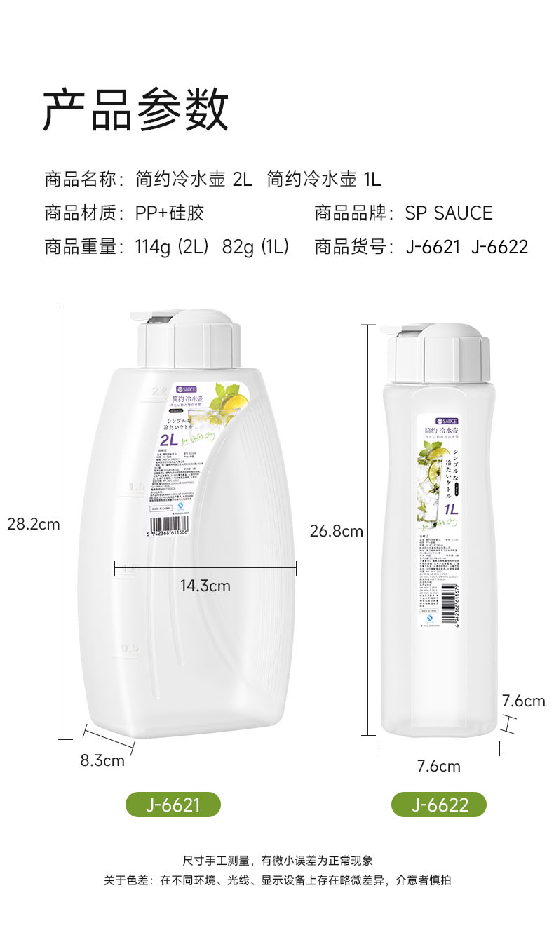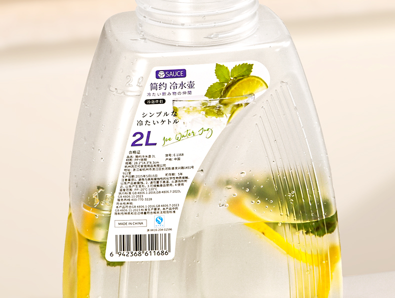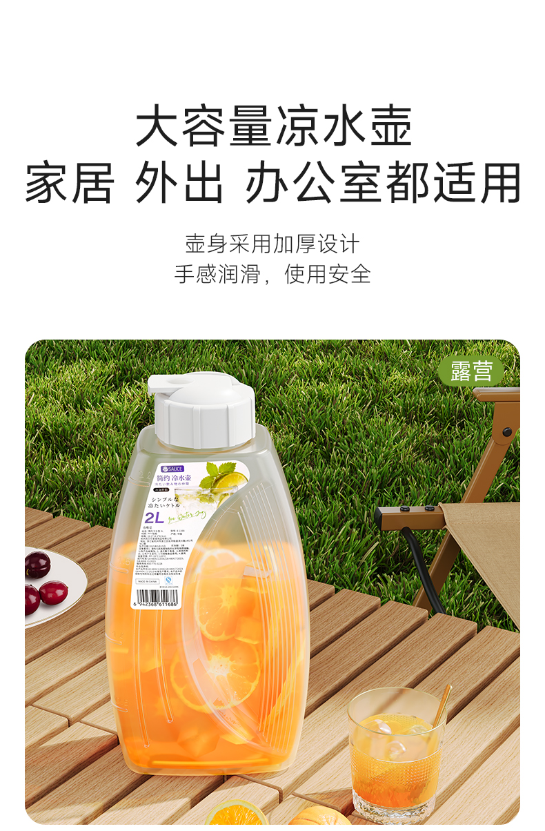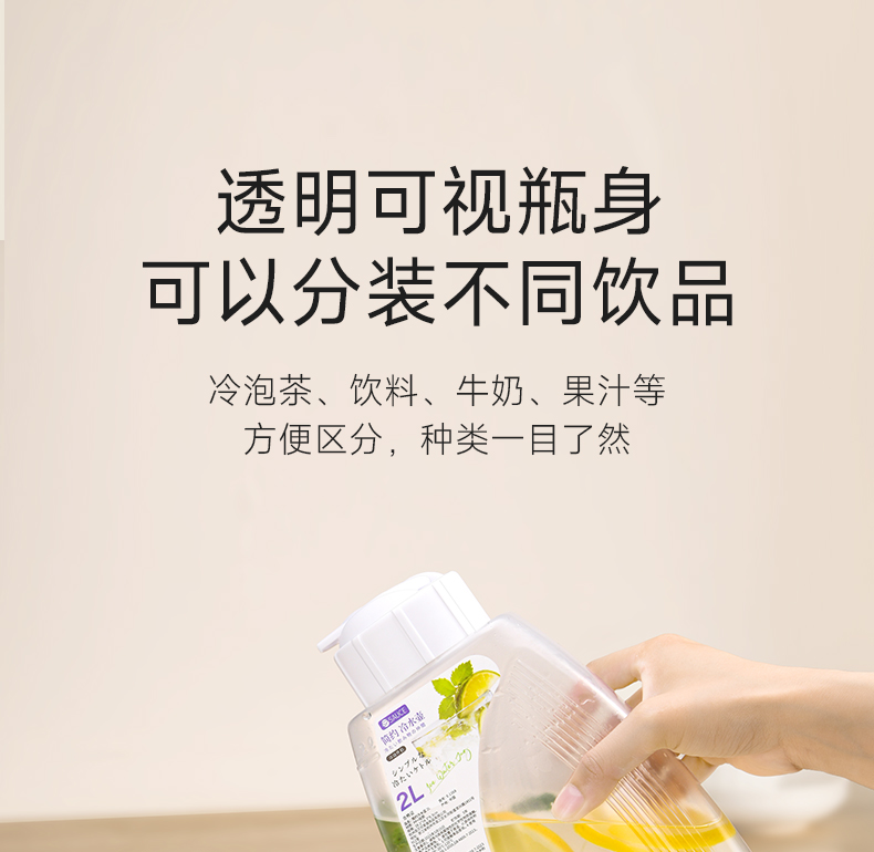 简约冷水壶 2L 冰箱冷水壶家用耐高温凉水壶大容量水果茶冷泡瓶饮料扎壶