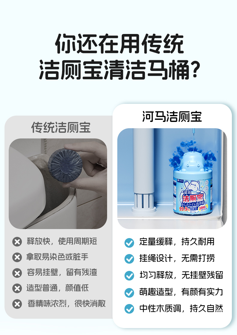 河马洁厕宝 马桶清洁剂洁厕灵宝蓝泡泡清香型厕所除臭