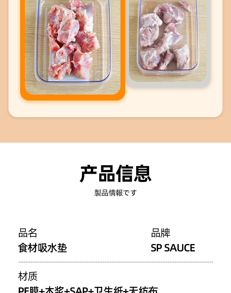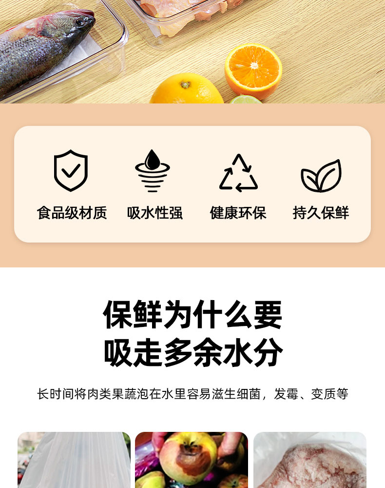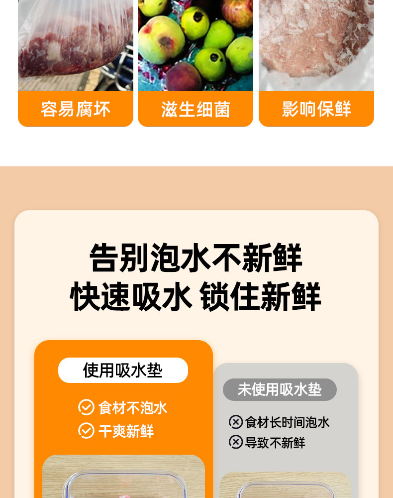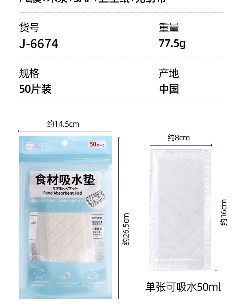 食材吸水垫(50片装) 食材吸水干燥垫鱼虾肉类干燥吸水片水果冷鲜冰镇袋
