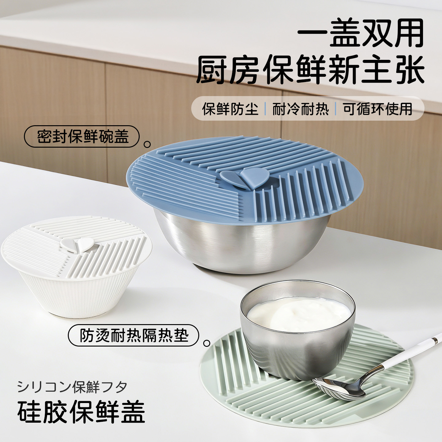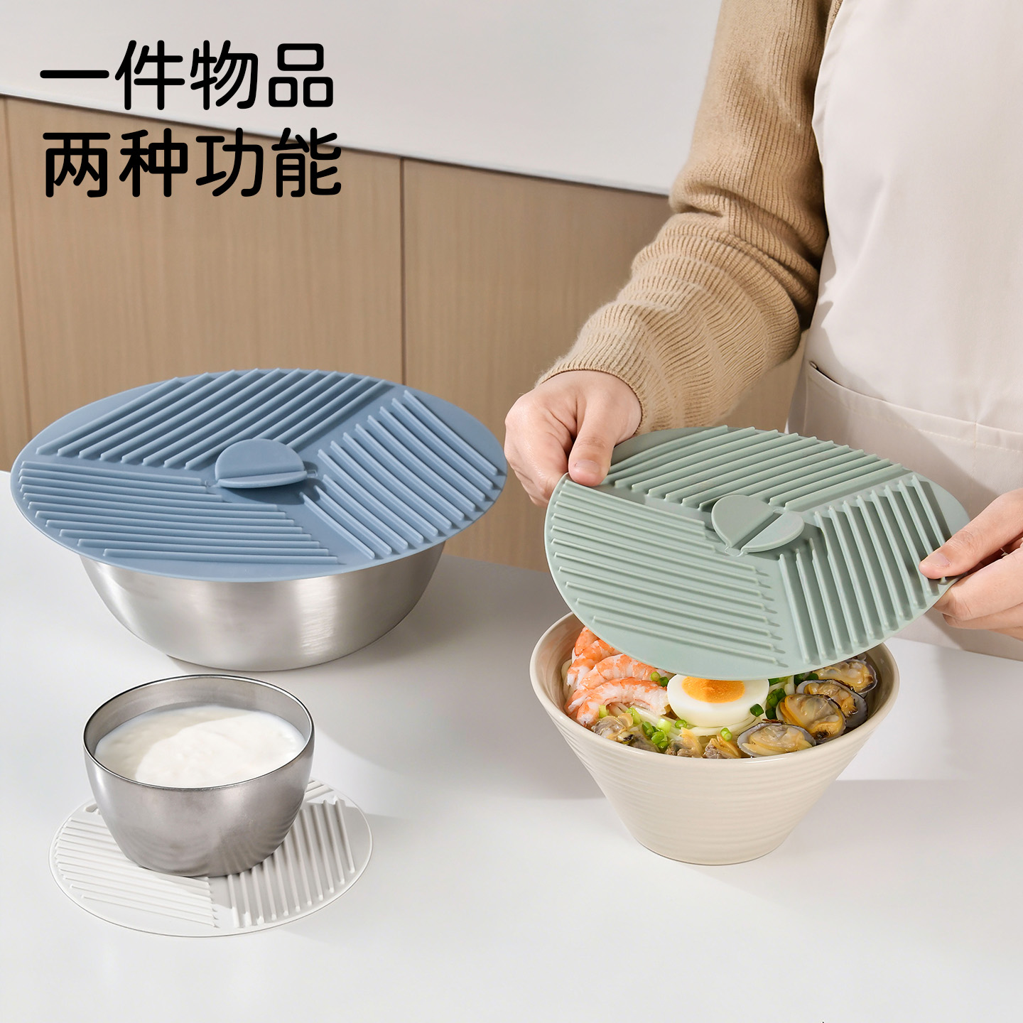 硅胶保鲜盖 中号 硅胶保鲜盖隔热垫二合一密封碗盖圆型微波炉专用防溅盖子