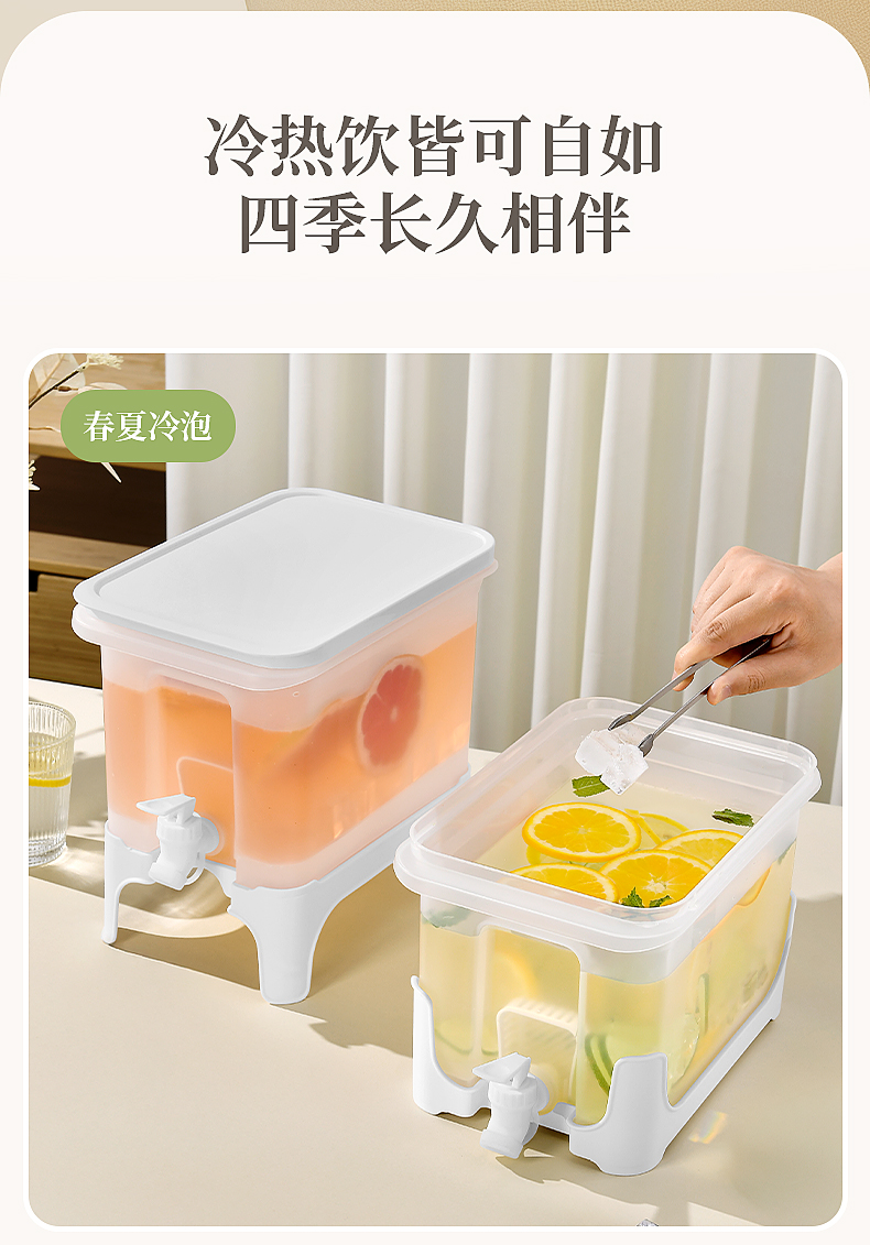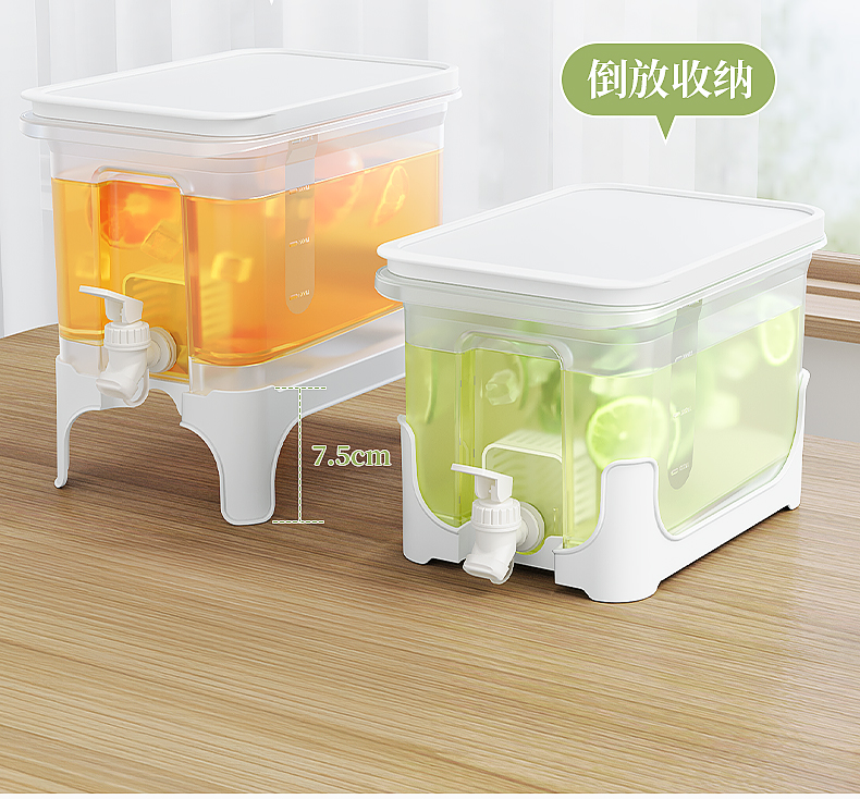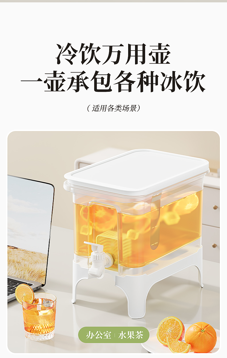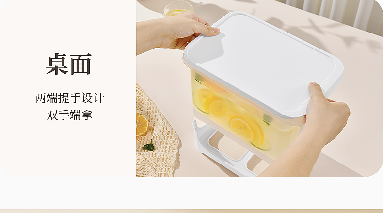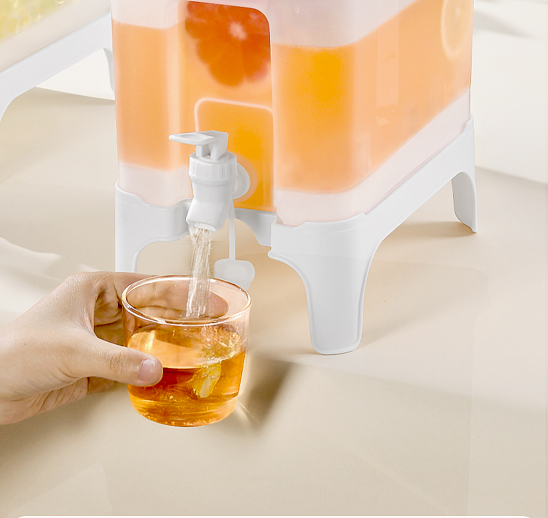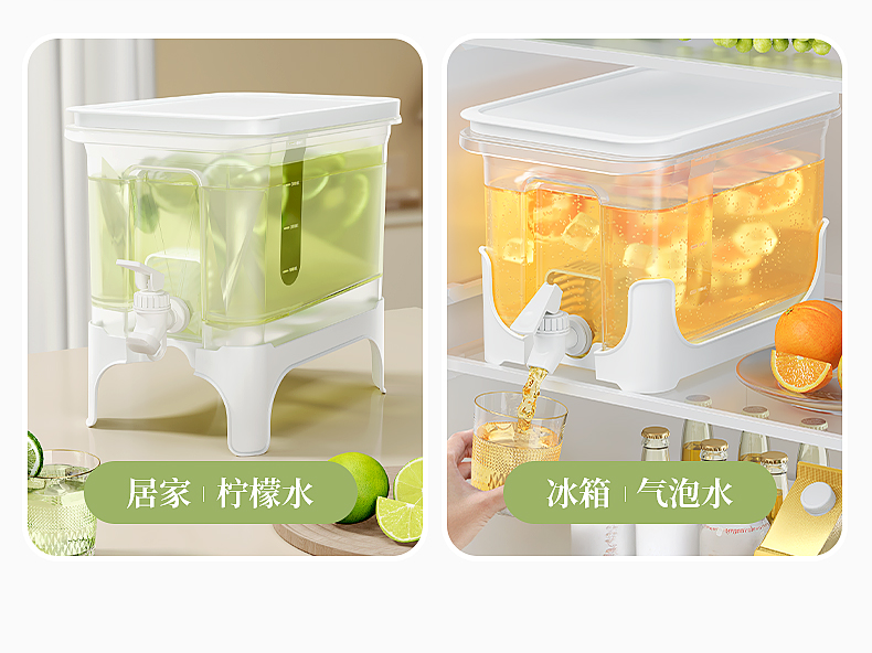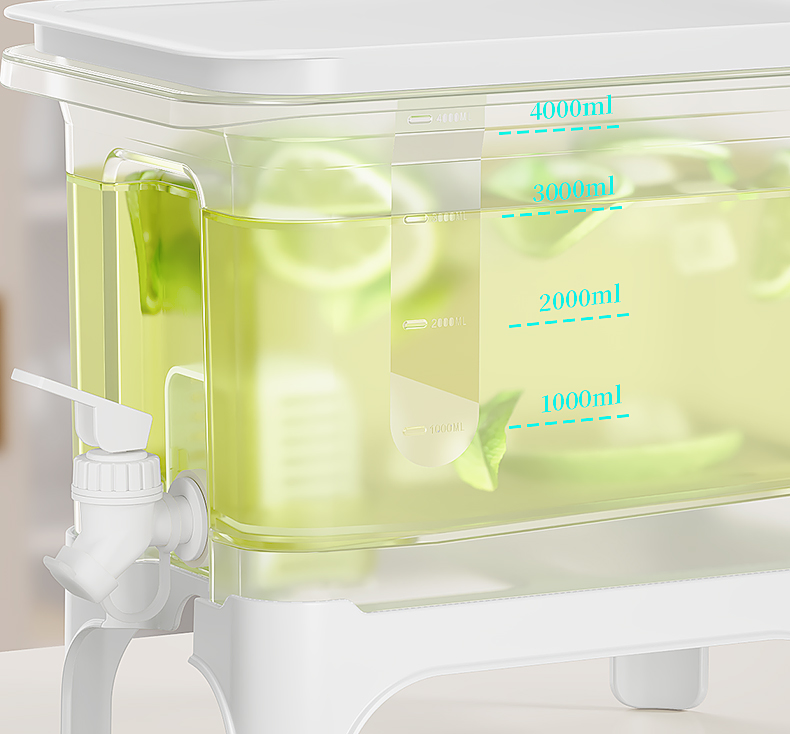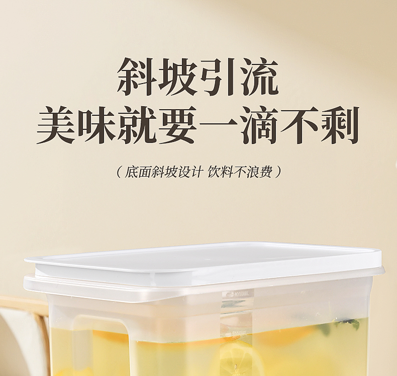 椰椰冰沙冷水壶 4L 大容量冰箱凉水壶带龙头耐热塑料密封果汁壶冷水壶斜坡设计