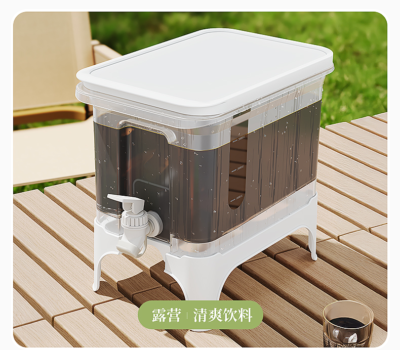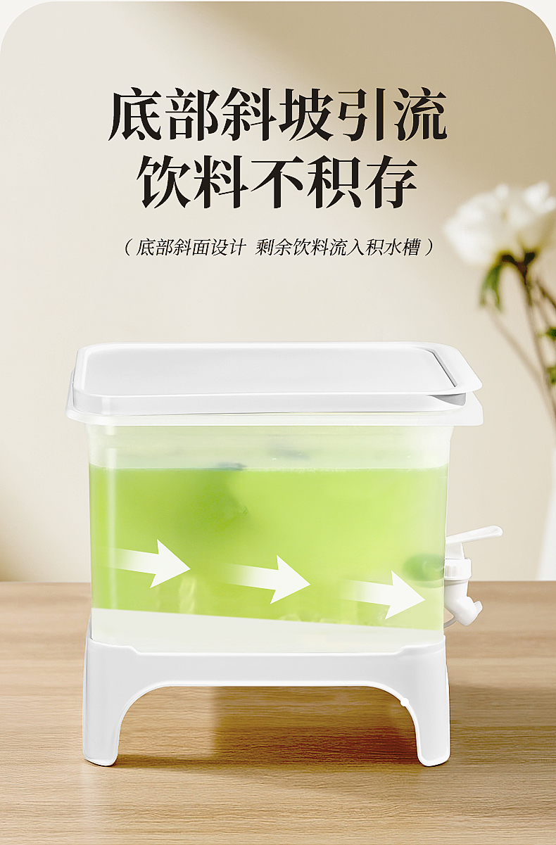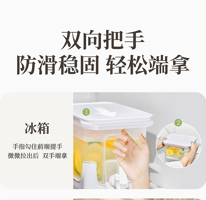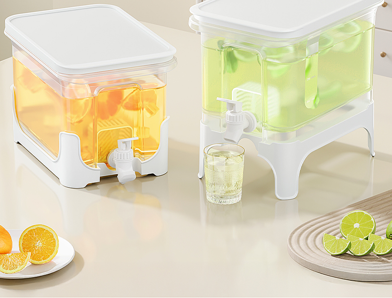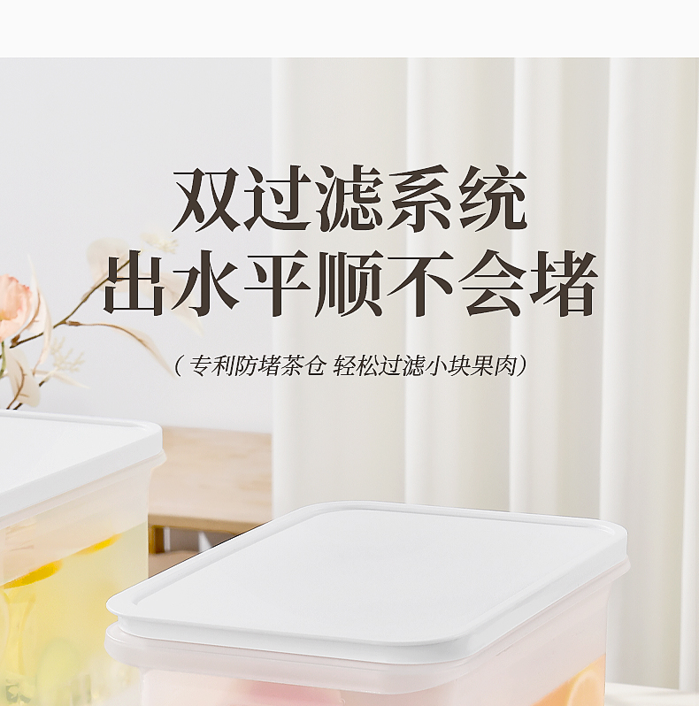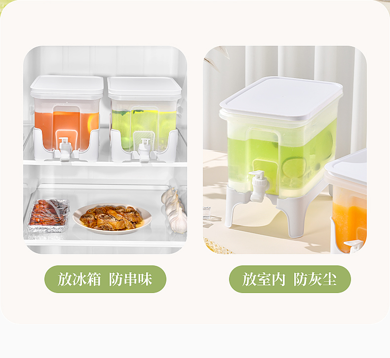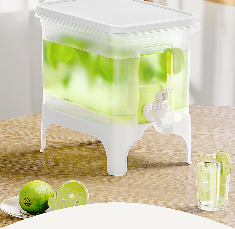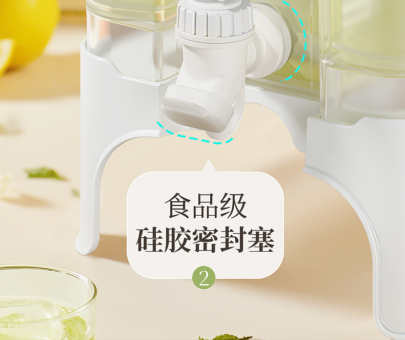 椰椰冰沙冷水壶 4L 大容量冰箱凉水壶带龙头耐热塑料密封果汁壶冷水壶斜坡设计