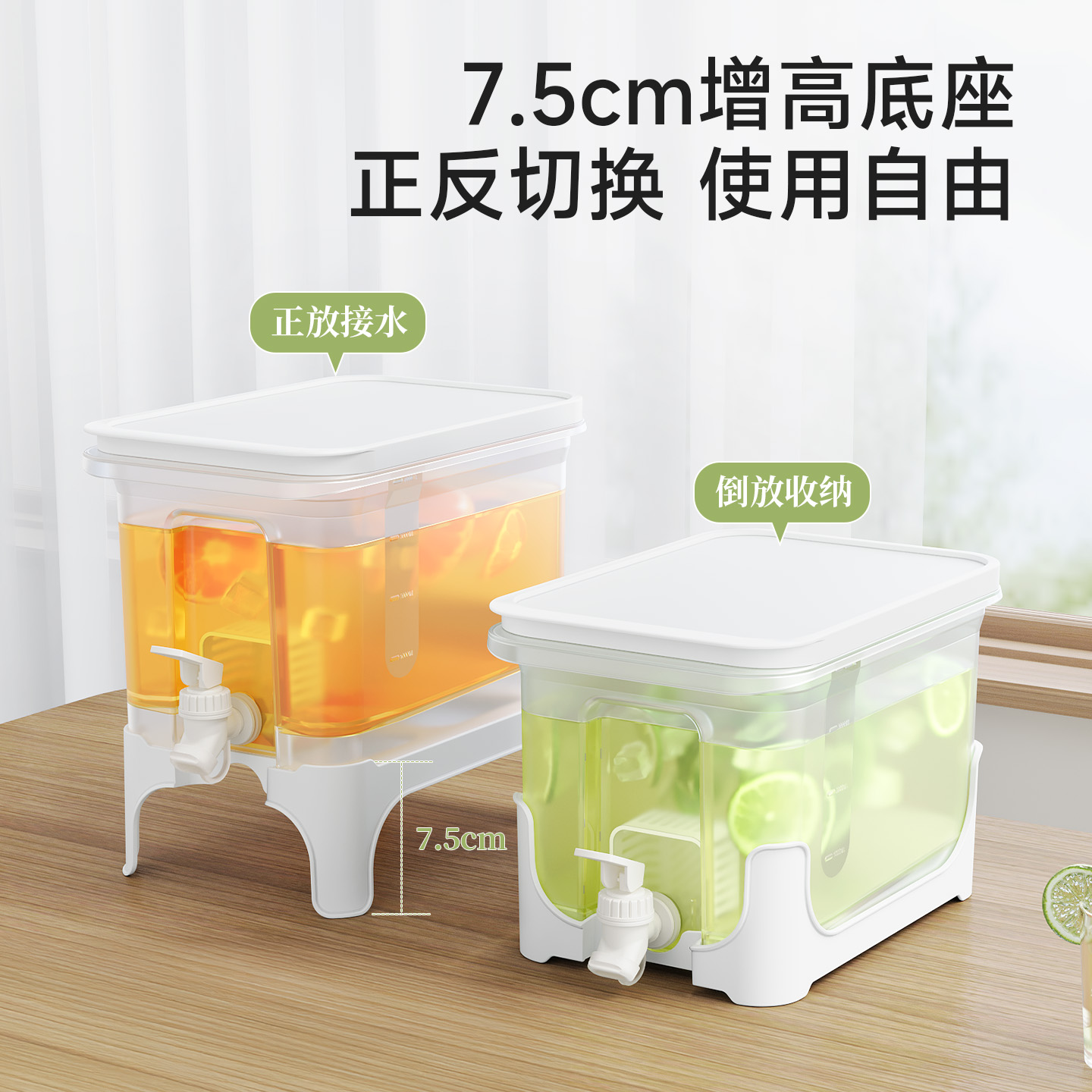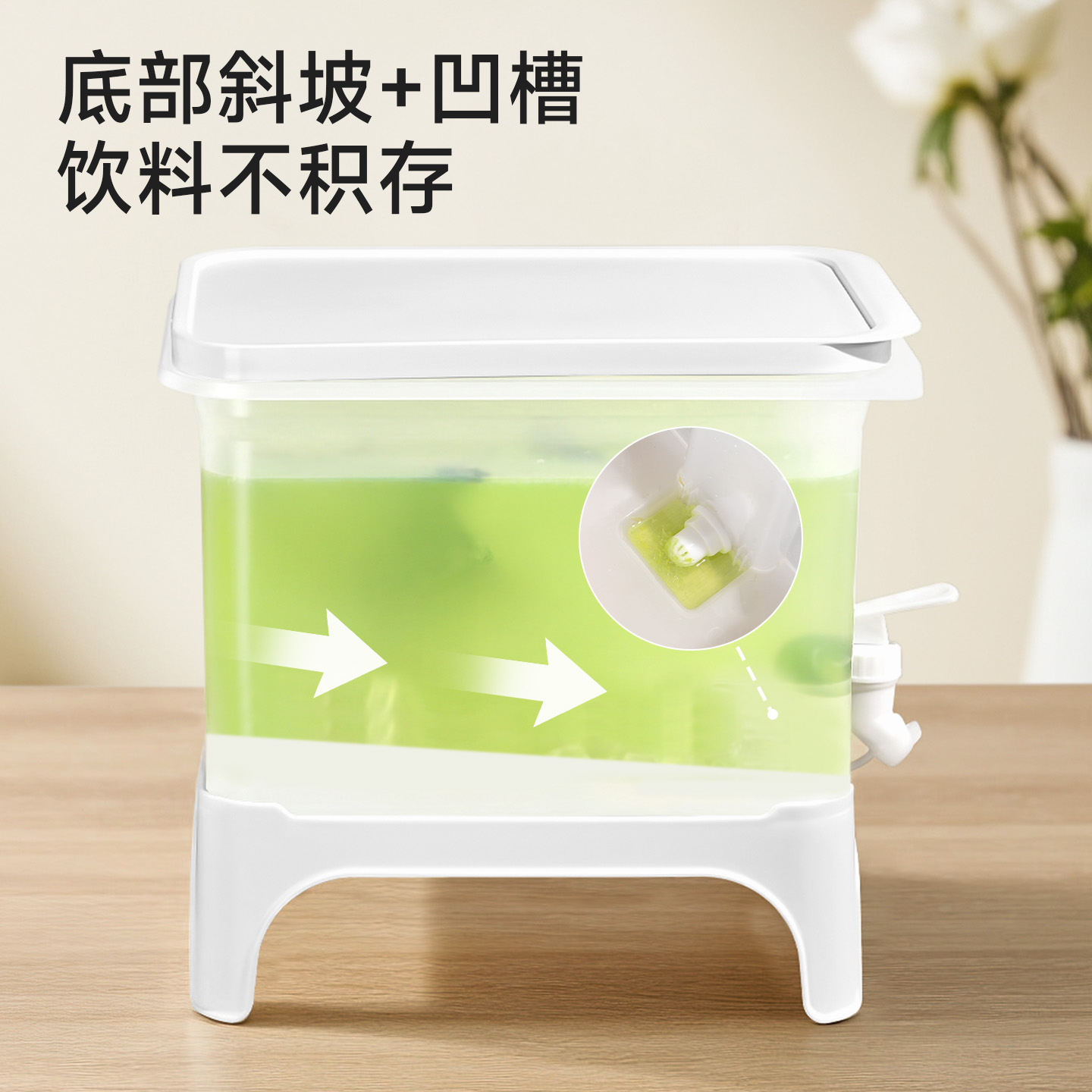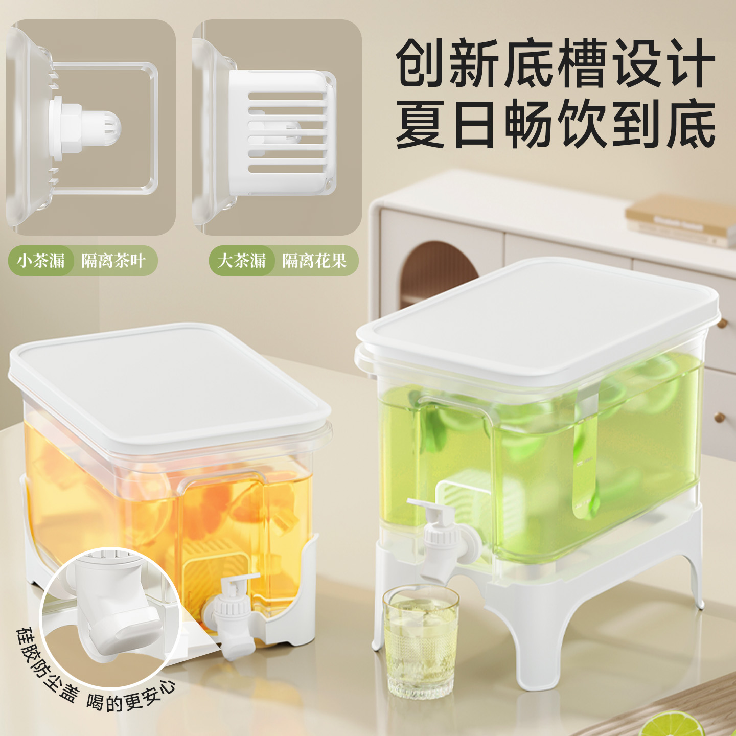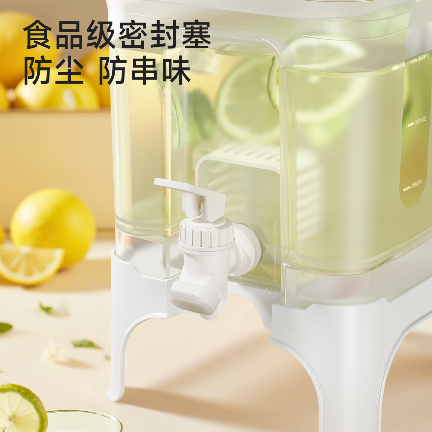 椰椰冰沙冷水壶 4L 大容量冰箱凉水壶带龙头耐热塑料密封果汁壶冷水壶斜坡设计