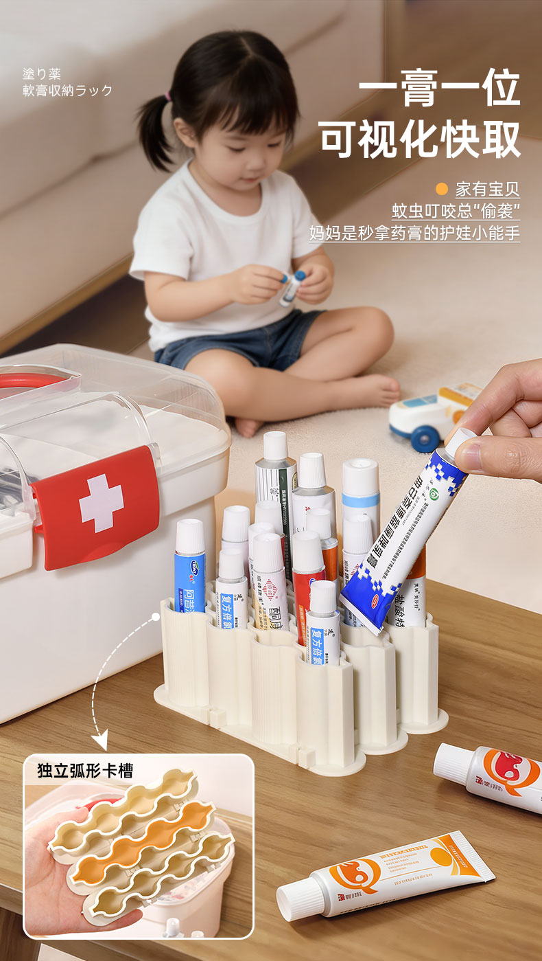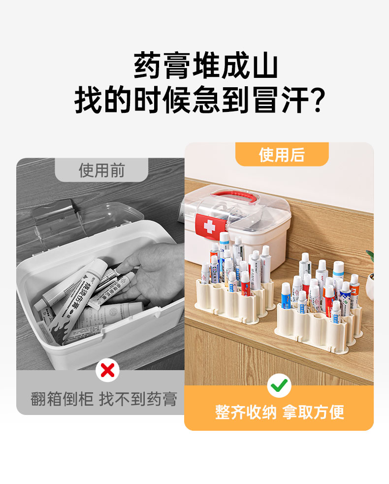 药膏收纳架 可拼接药膏收纳架分格管状药整理神器桌面放胶水条状药品软膏药物置物架