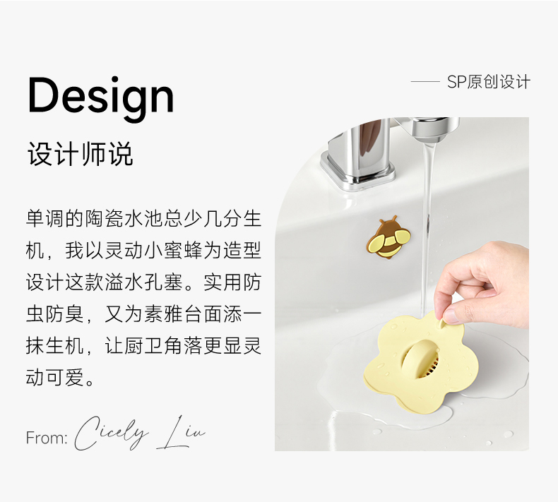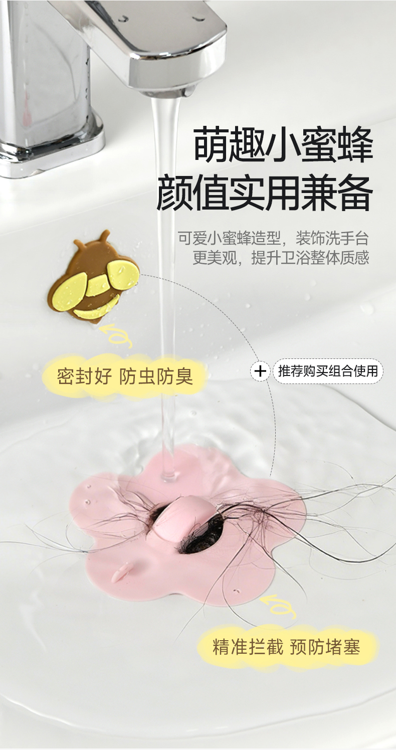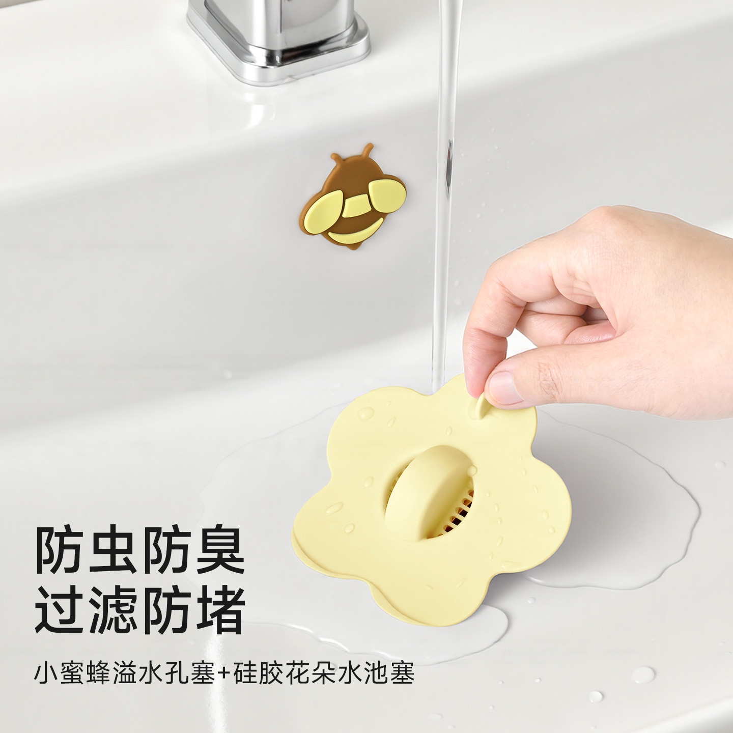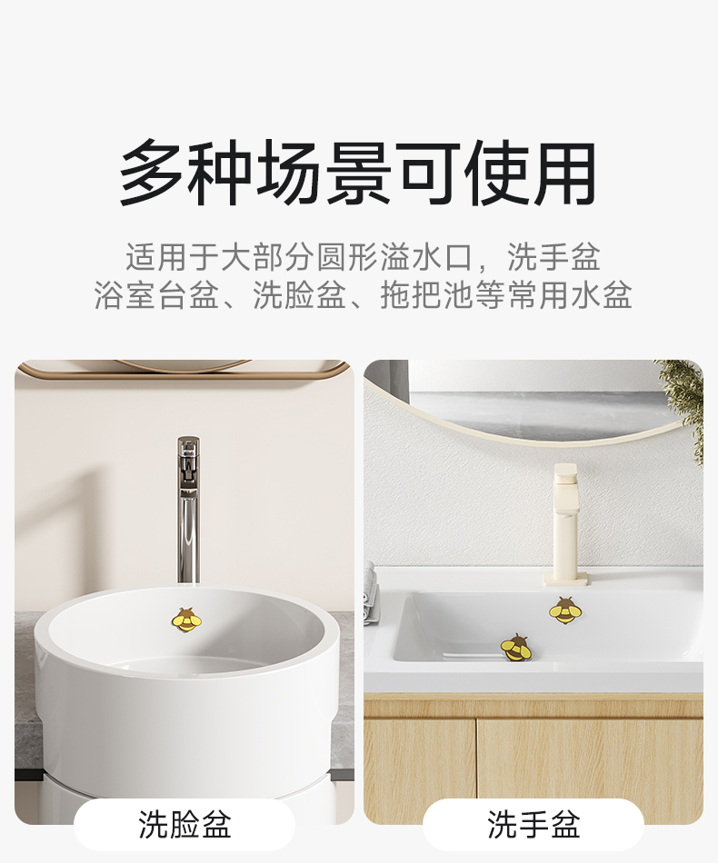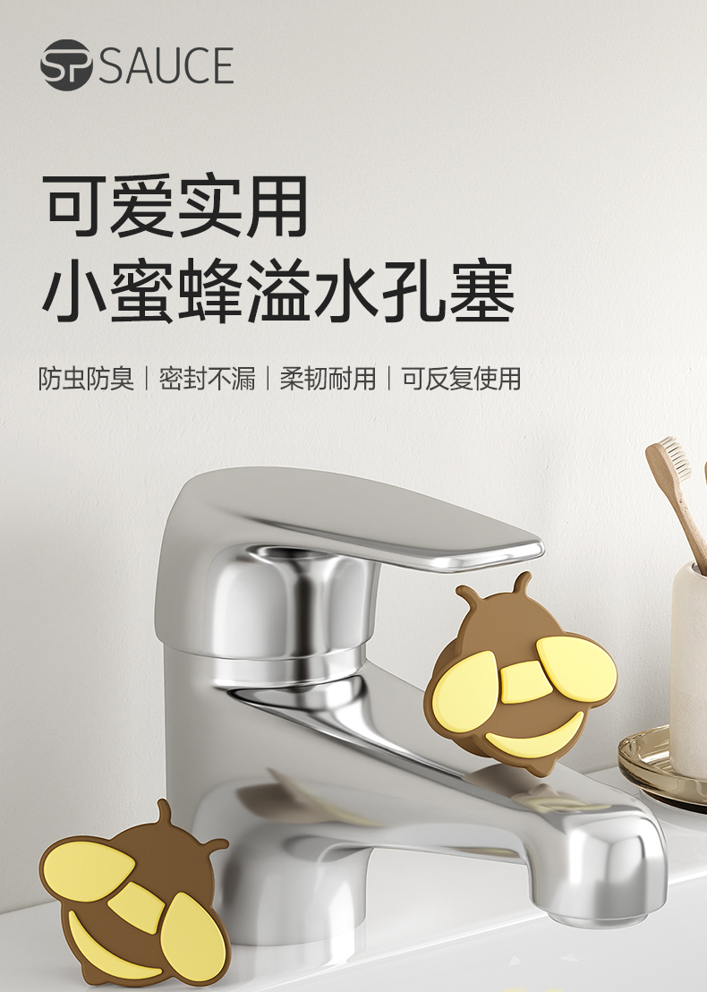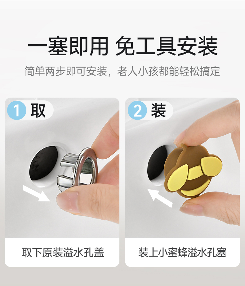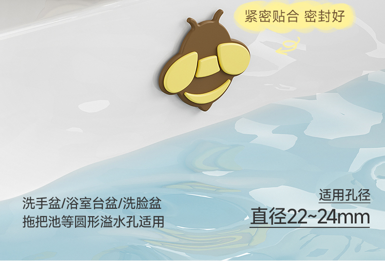 小蜜蜂溢水孔塞 洗脸盆圆形溢水口硅胶塞密封堵孔防飞虫臭异味盖子小蜜蜂溢水孔塞