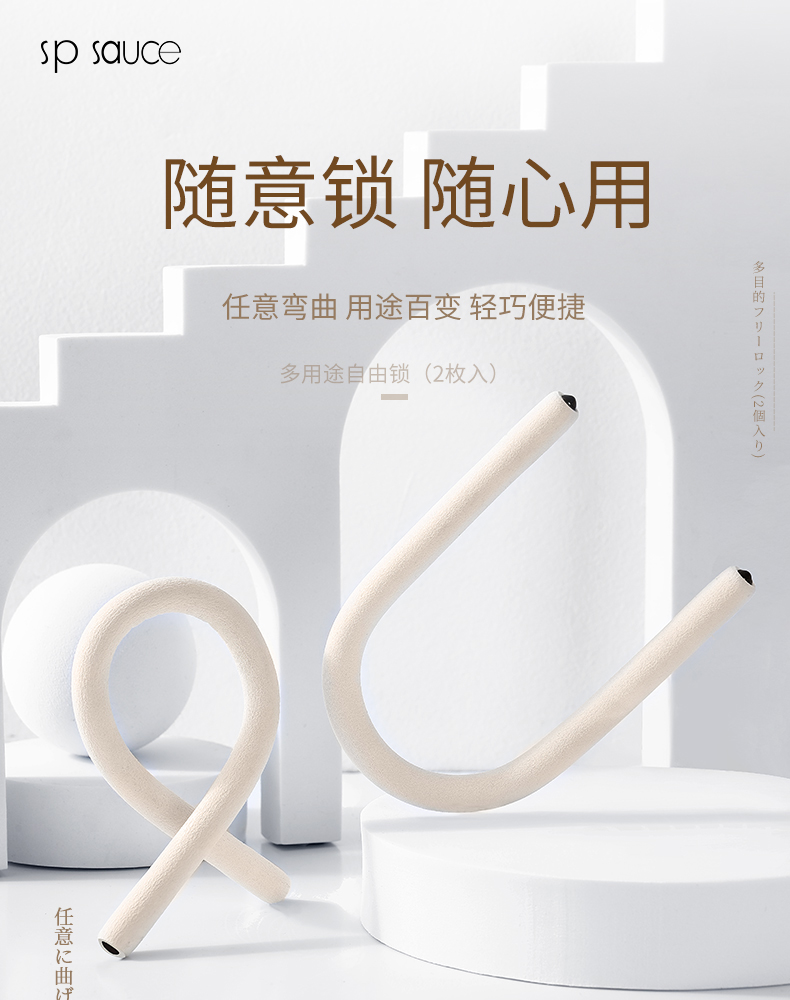 D 多用途自由锁(2枚入) 任意S型挂钩多功能弯曲免打孔橱柜随意锁钩子门后衣帽杂物收纳架