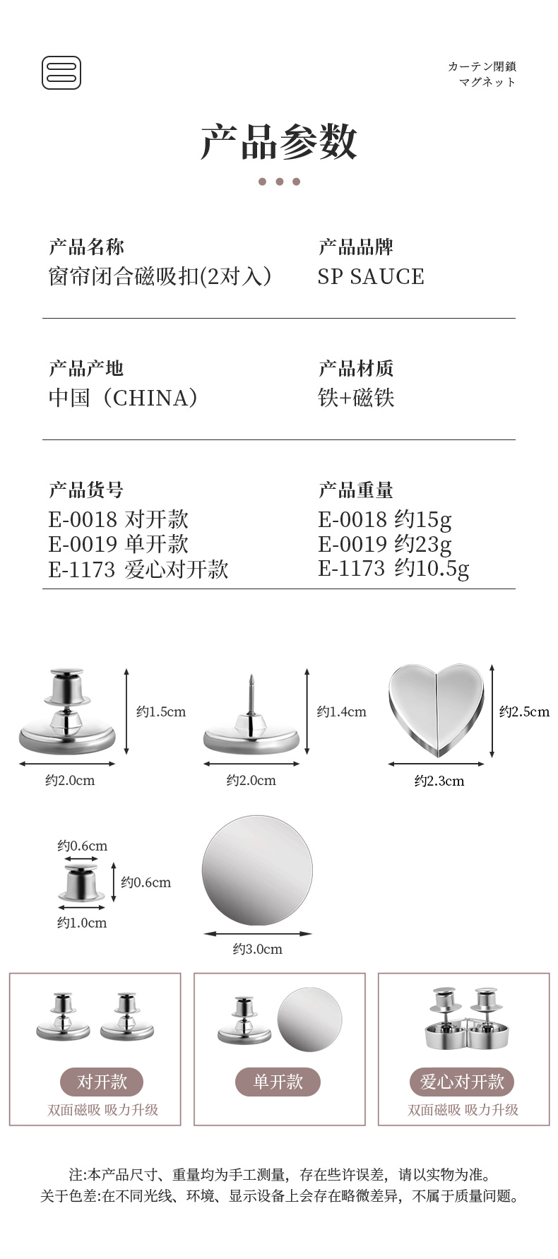 窗帘闭合磁吸扣(对开款)两对装 窗帘浴帘缝隙闭合合拢不透光神器强力磁吸扣免绑隐私扣环
