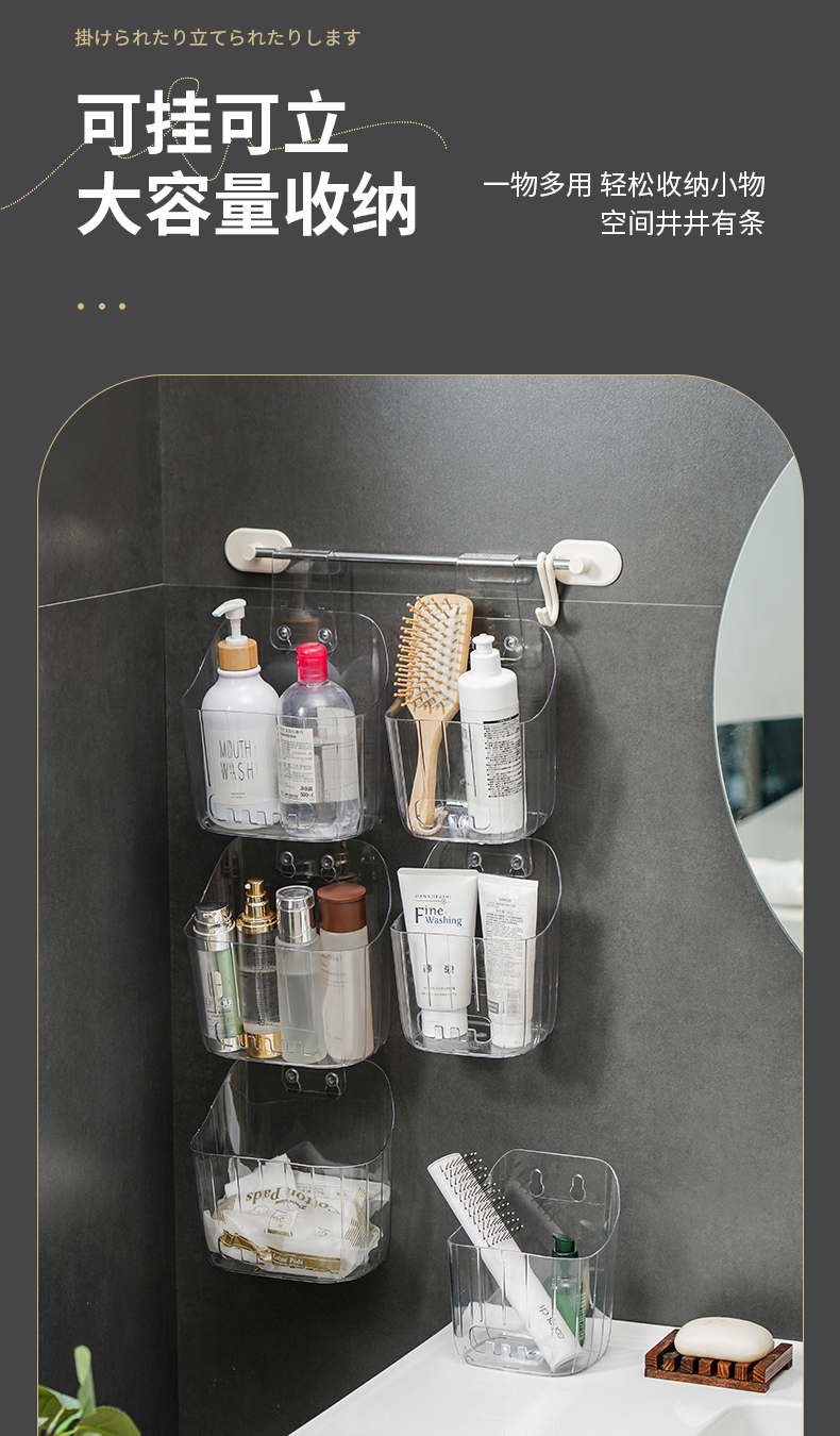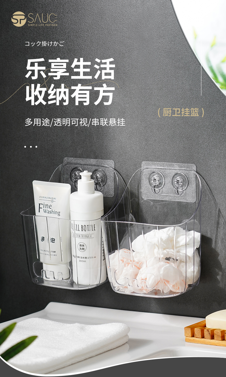D厨卫挂篮专属背胶 20只装 厨房浴室挂篮调料收纳洗漱筐家用篮子塑料杂物透明整理置物架