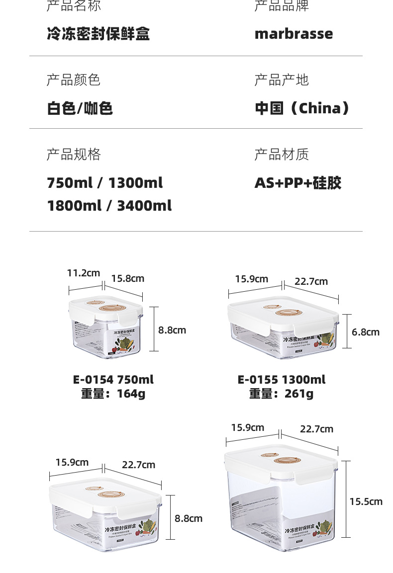 冷冻密封保鲜盒1800ml 冰箱专用收纳盒水果食物冷冻保鲜盒食品级冻肉蔬菜备菜盒
