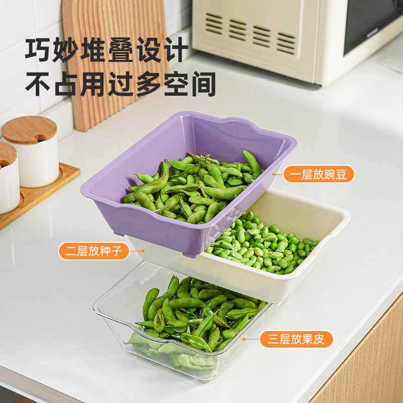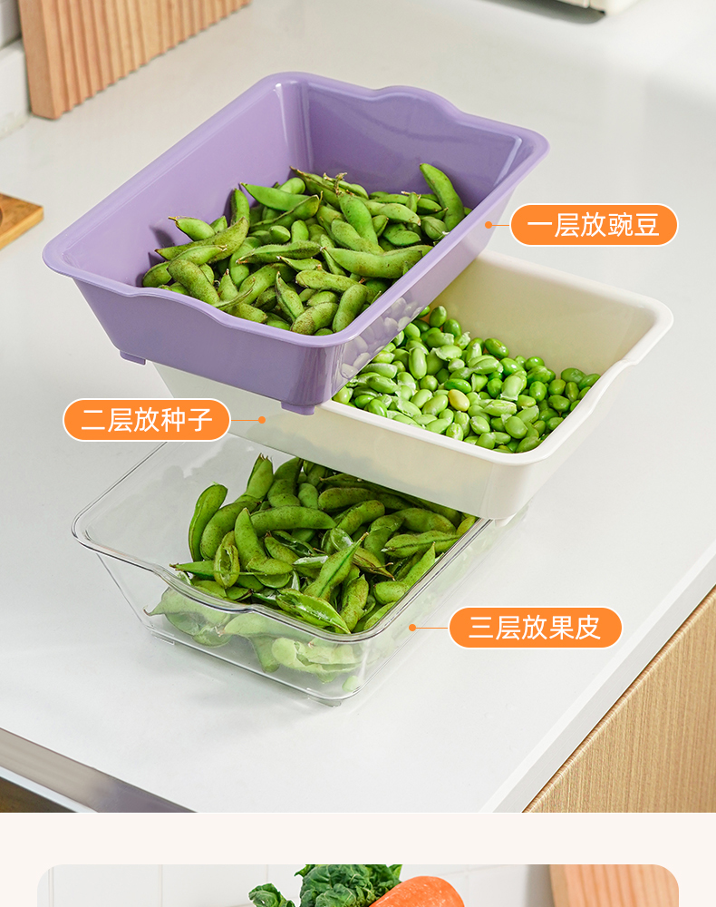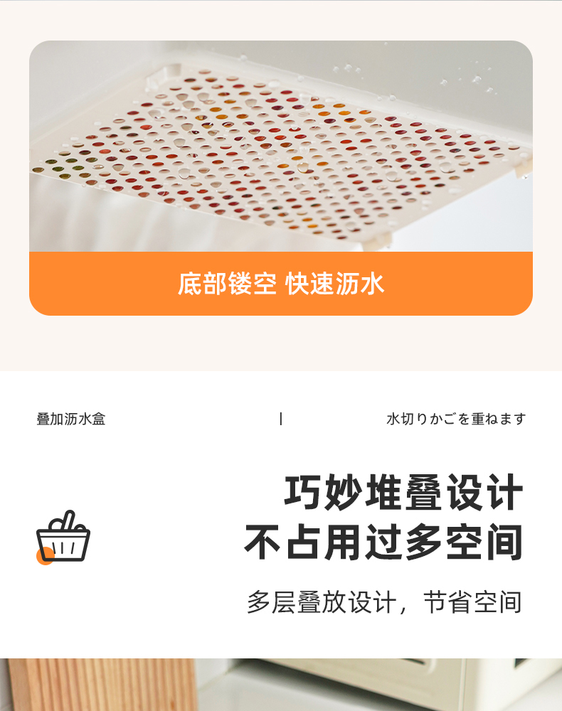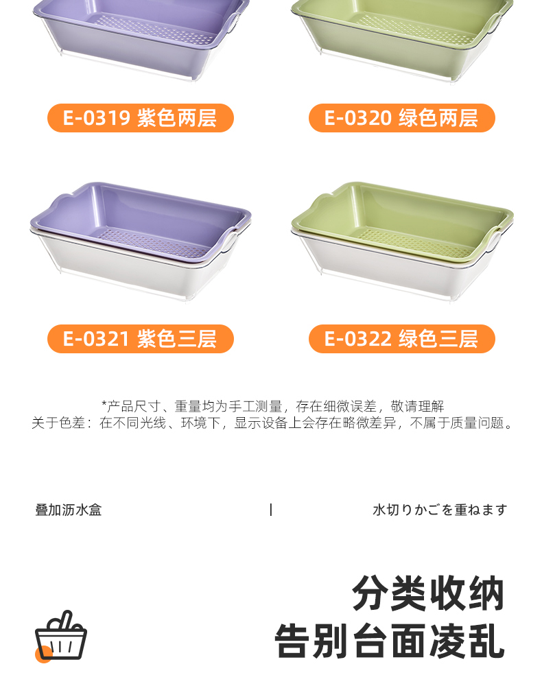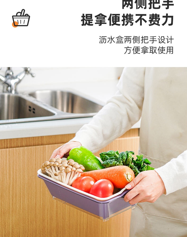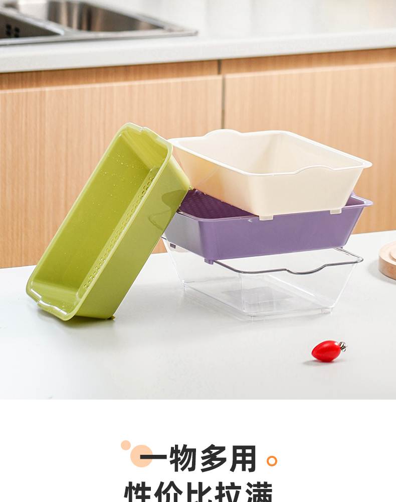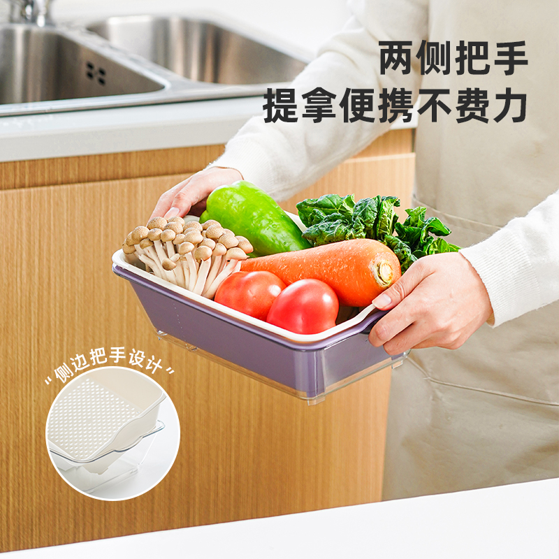 叠加沥水盒(两层) 洗菜盆沥水篮家用厨房双层洗水果蔬菜篮子漏网滤水篮淘菜盆