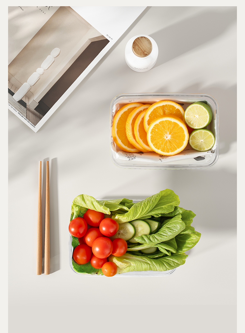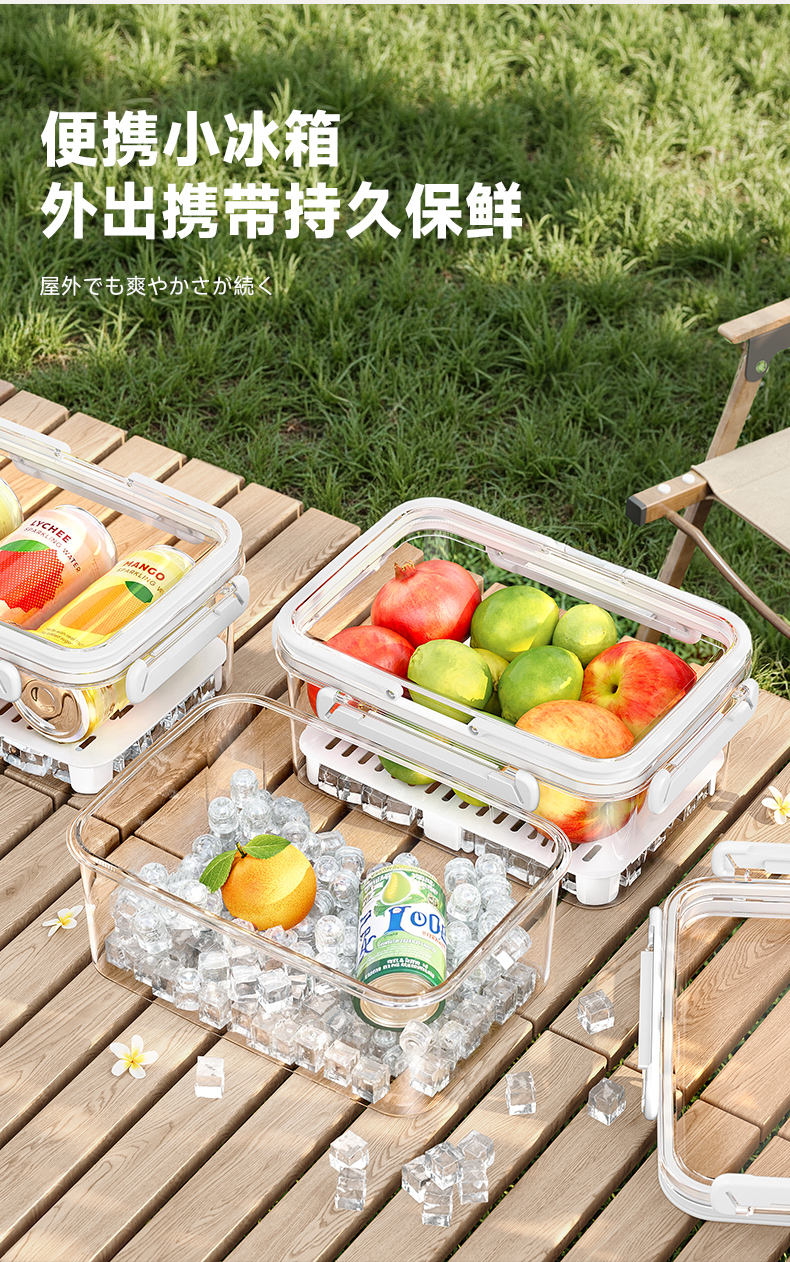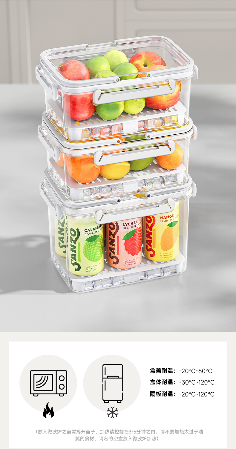 提手保鲜盒3400ml 手提双层保鲜盒杂粮蔬菜冰箱可用便 当盒户外野餐蓝零食水果茶具收纳盒